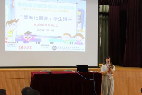 2023-10-13 在日常生活中與別人相處時,或許會因為彼此的不了解或想法不同而產生衝突。在發生衝突時,怎樣處理才會相對有效呢?本學年參加「賽馬會調解家庭同 • 理 • 傾計劃」,並邀請了家福會的社工駱姑娘到校向四至六年級講解如何認識自己的情緒及化解衝突小貼士。在講座期間,駱姑娘提供了不同的情境題,同學們都紛紛代入情景,出謀獻策,提供化解衝突的辦法呢! 學校活動