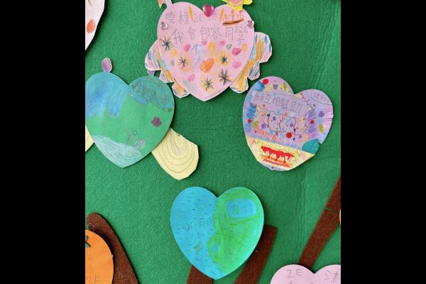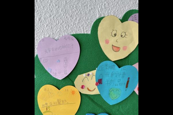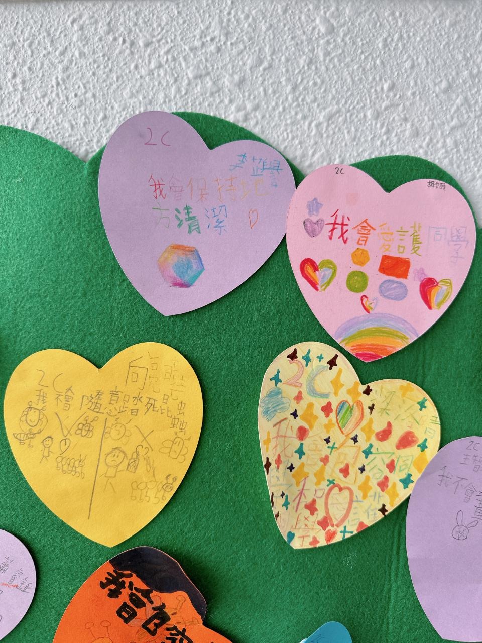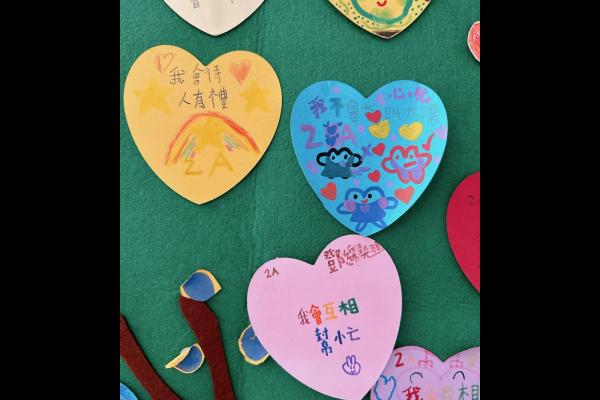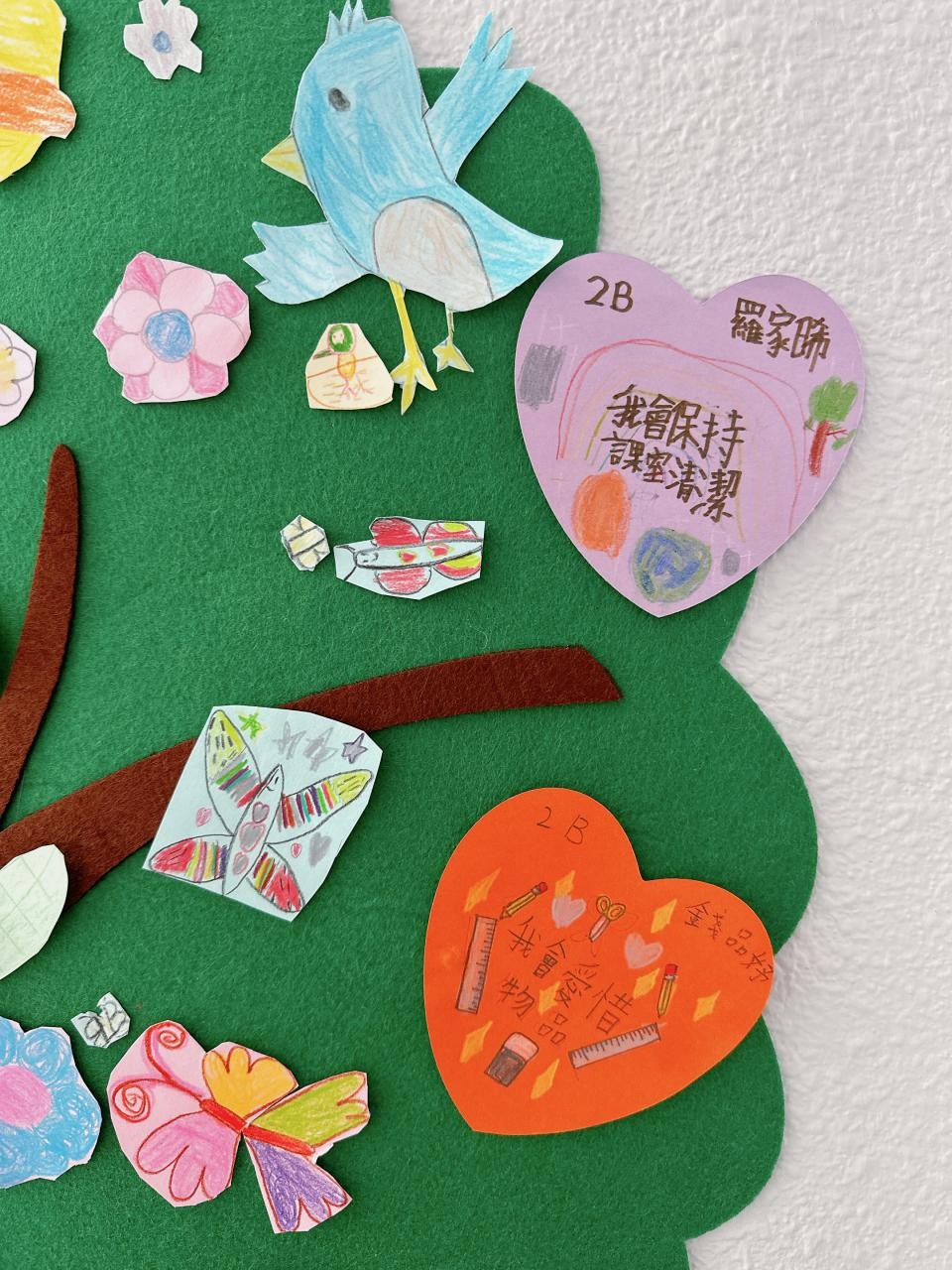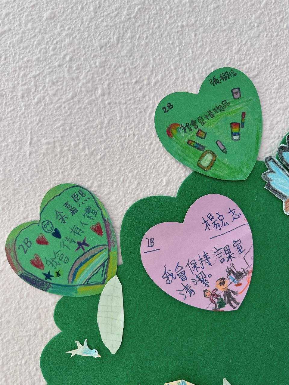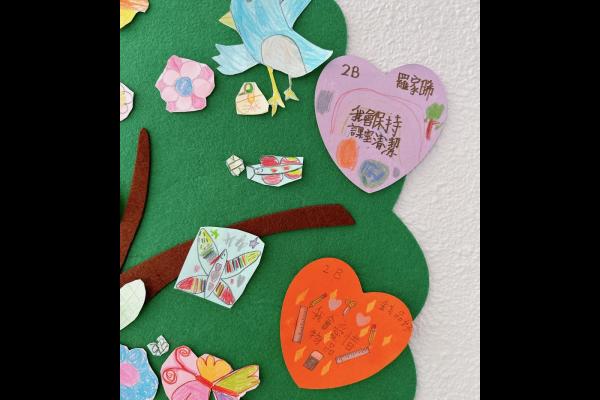 他們緊記著「要做一件令世界更美好的事」,於是便決定為自己班、學校付出一點點,一同製作「愛心樹」,記下自己將會如何令這個「家」變得更美好。