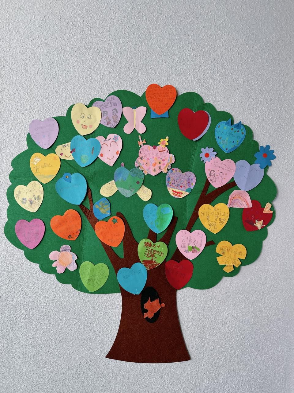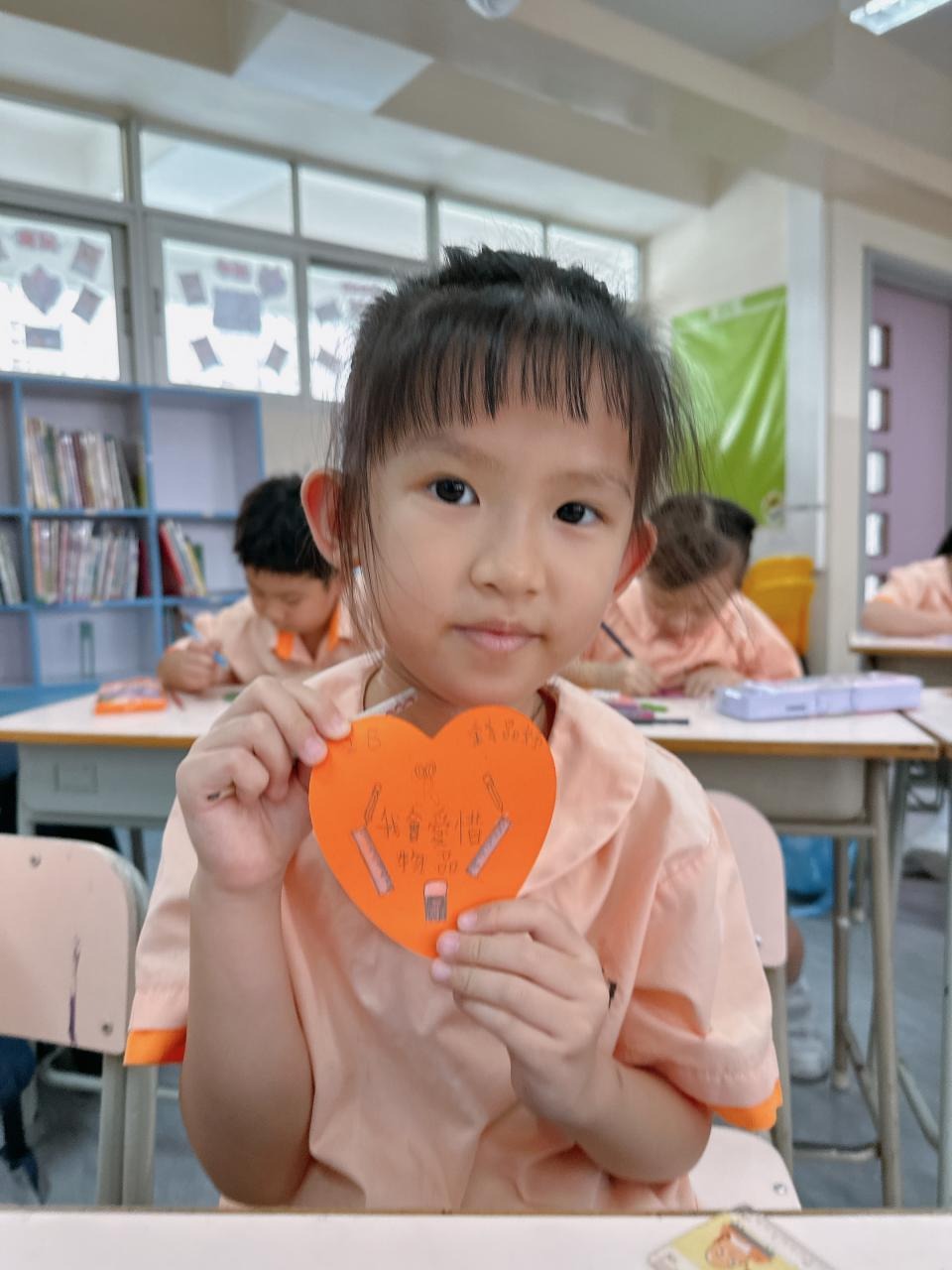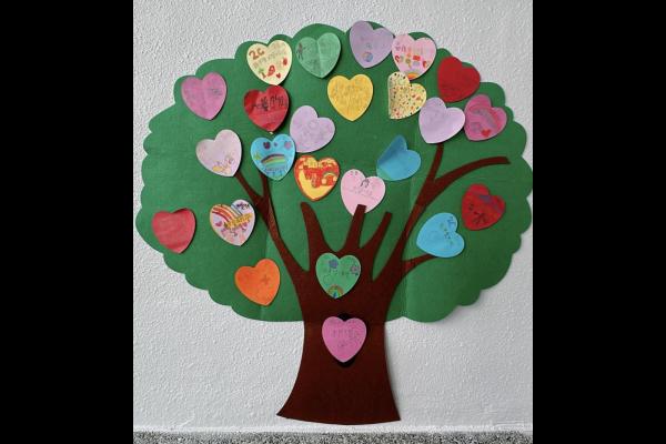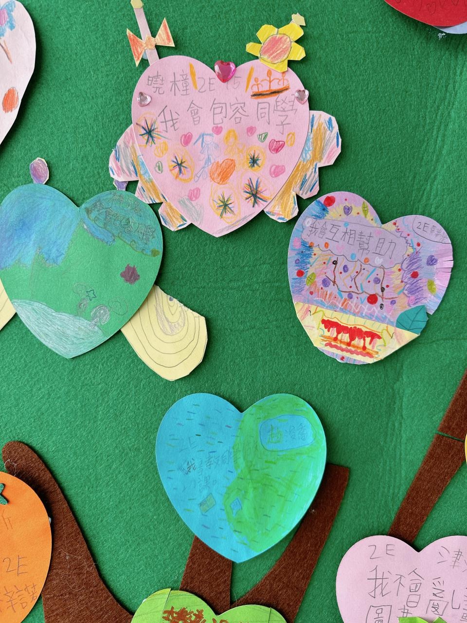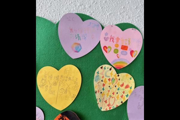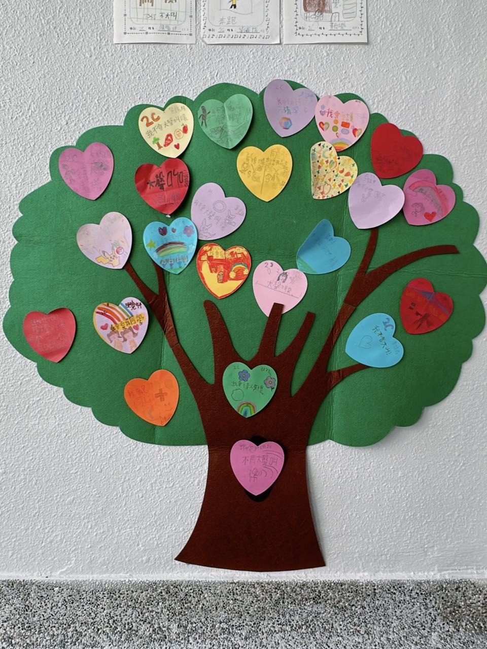 他們緊記著「要做一件令世界更美好的事」,於是便決定為自己班、學校付出一點點,一同製作「愛心樹」,記下自己將會如何令這個「家」變得更美好。