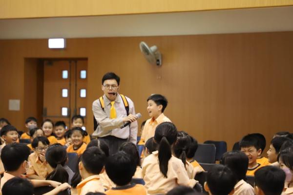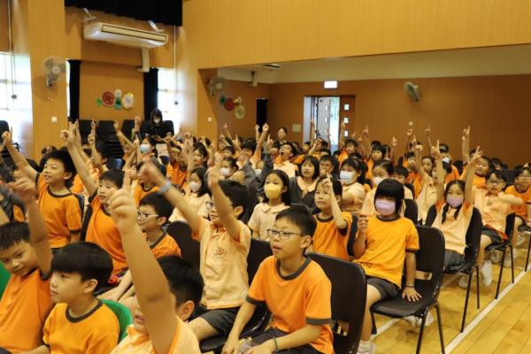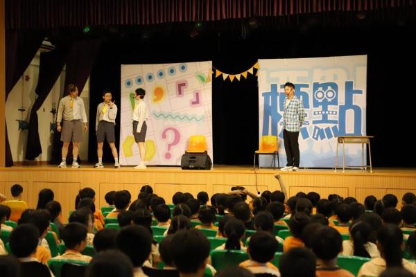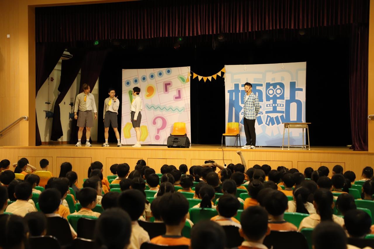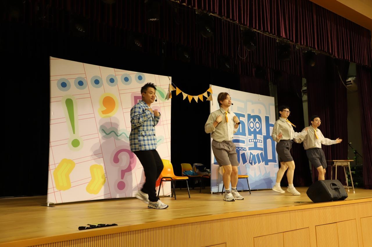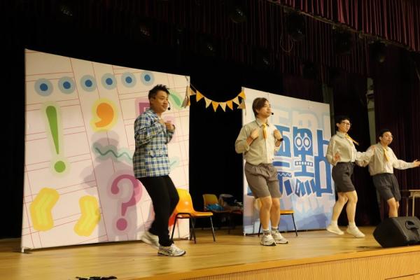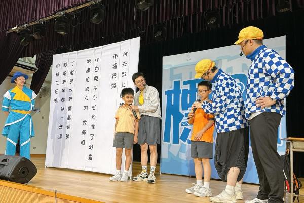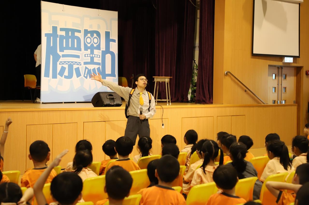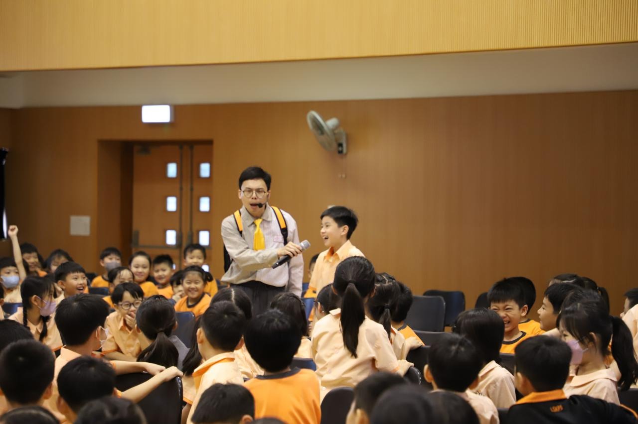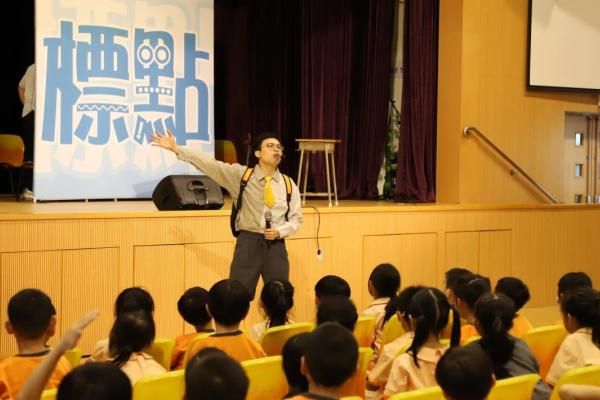 2025-05-16 一至三年級同學早前跟著「標點戰士」展開了一場超乎想像的語文冒險!夢飛行合家歡劇團以有趣的故事情節和生動的表演方式,向學生展示如何正確使用標點符號。 當中更設有即席互動環節,演員們邀請同學們化身「標點戰士」,一同拆解語文難題,在文章中適當的位置加上標點——原來學標點可以這麼好玩! 學校活動