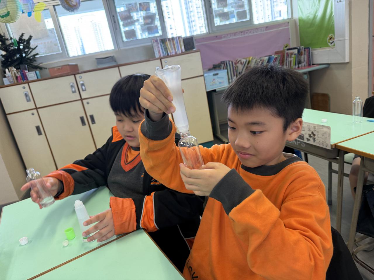 2025-03-28 「搖一搖,煩惱全消散!」四年級的同學們在班主任的帶領下,化身小小情緒魔法師,動手製作獨一無二的舒壓瓶!從選擇繽紛的亮片、彩色砂粒,到調配黏稠度剛好的液體,大家專注地一步步完成自己的「心情穩定劑」,學習在壓力來臨時,用親手做的舒壓瓶找回平靜。 學校活動