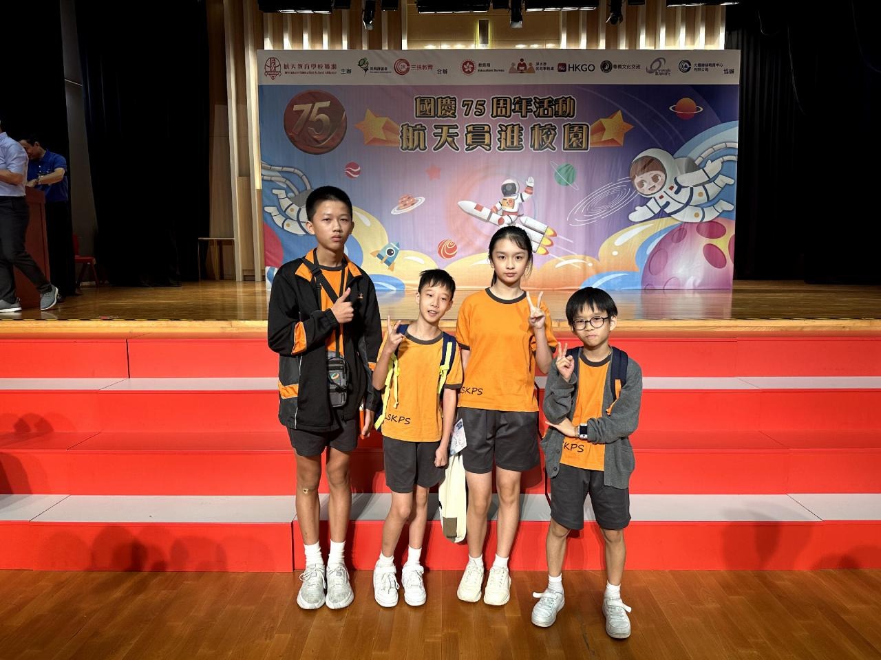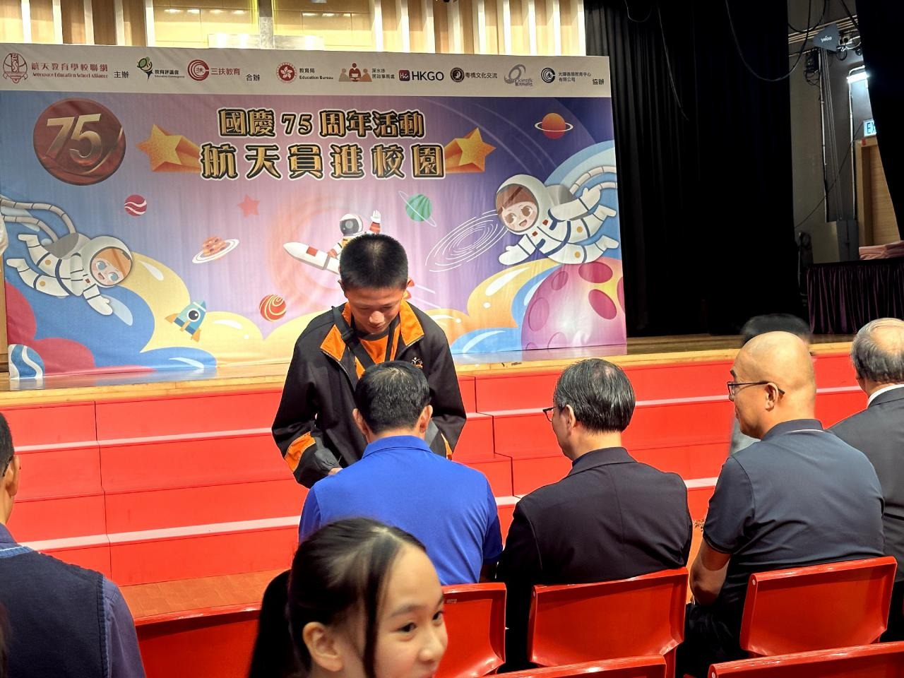 本校共4名學生參加了十月廿二日舉行的「國慶75周年- 航天園進校園」活動,同學們除了能親身向航天員陳全提問有關航天科技的知識,更能與他合照,確是一次很難能可貴的學習經歷。
