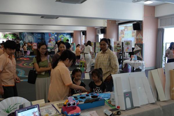 活動中,我校學生擔任小導遊及服務生,以自信的姿態向來賓介紹校園設施及分享學習點滴,充分展現學生的領導才能與活力。家長與孩子們透過「親子體驗課」、「校園遊蹤」、「互動展覽」、「小一模擬課」等活動,親身感受學校獨特的學習氛圍。禮堂的入學講座更是座無虛席,校長分享的辦學理念與課程特色更獲熱烈迴響。