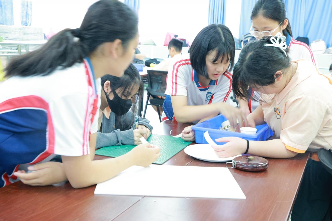 2025年5月28日至30日,本校16名師生前往廣州暨南大學附屬小學進行為期三天的交流活動,內容涵蓋STEAM教育、非遺文化、科技探索及在地文化體驗。學生們在《眾兵尋杯》STEM課堂中發揮創意,合作設計道具完成挑戰;親手體驗掐絲琺瑯的非遺工藝,感受傳統技藝的精湛;並參觀琶洲人工智能實驗室,透過專家講解及腦機接口技術實測,瞭解AI前沿發展。此外,師生們還參與了車陂村龍舟招景活動,沉浸式體驗廣府端午習俗,並通過結對家庭入住,與當地學生同住共學,深化友誼與文化交流。此次活動融合學術創新與傳統文化,有效拓展學生的跨領域視野。