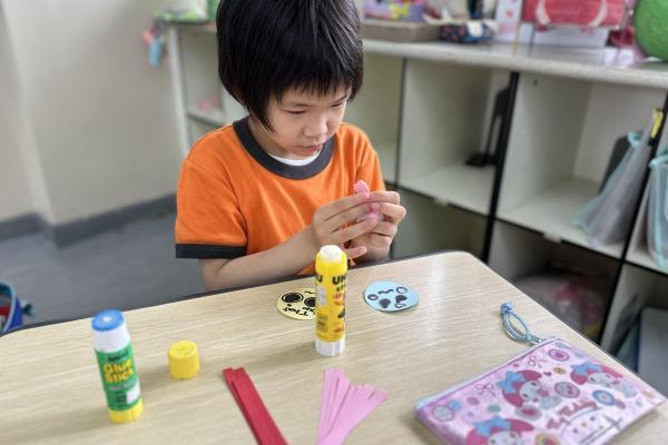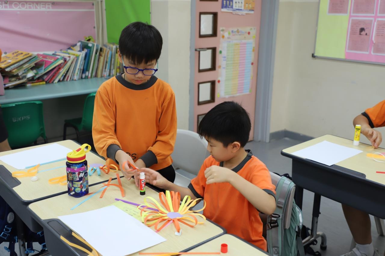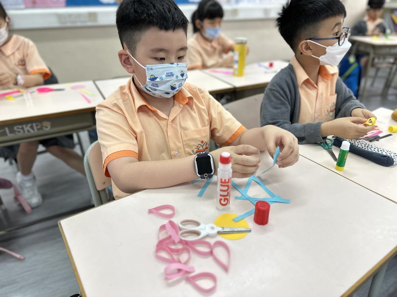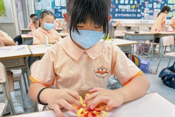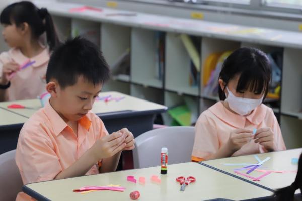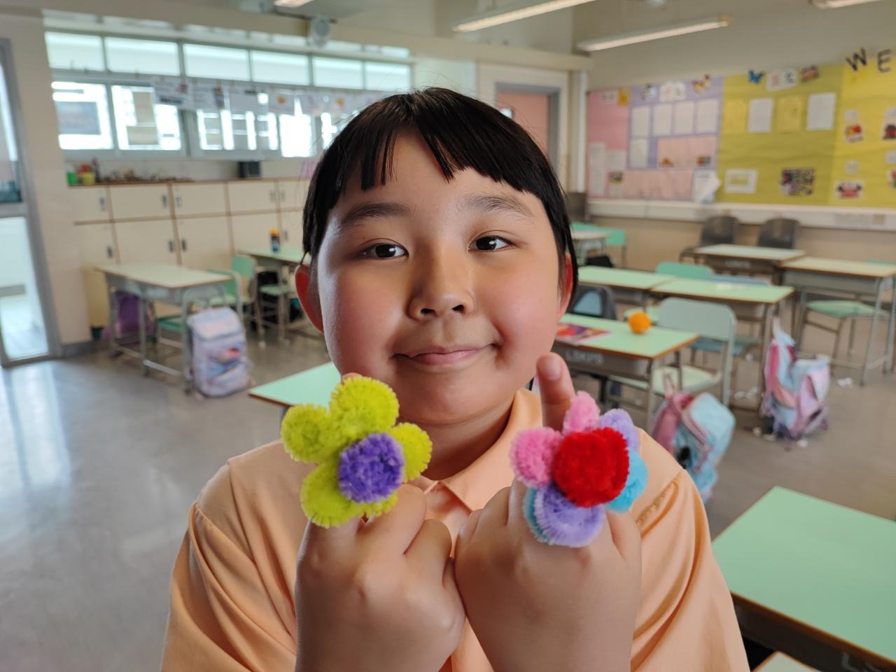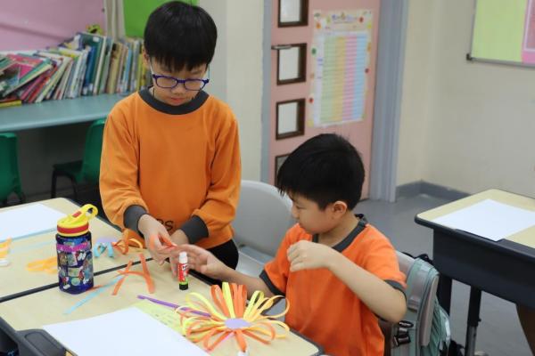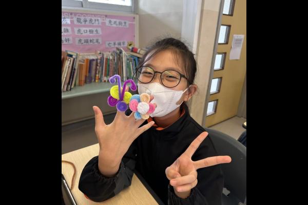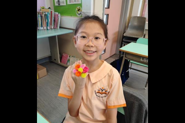在班主任的指導下,同學們一起製作手工花及絨毛花戒指。看看我們多認真,多仔細!