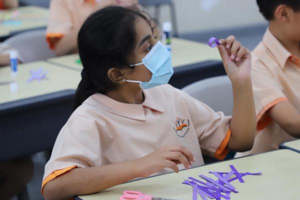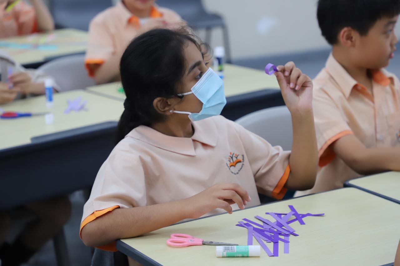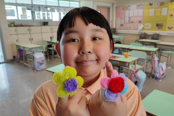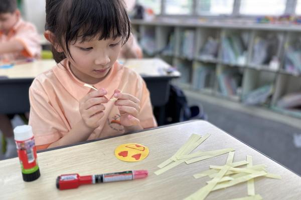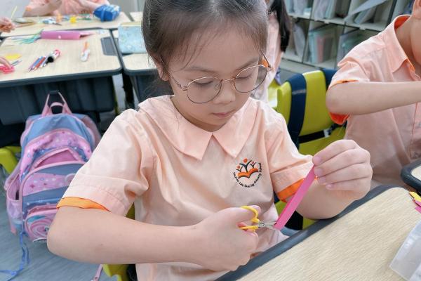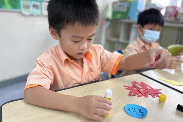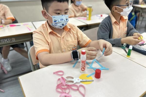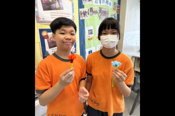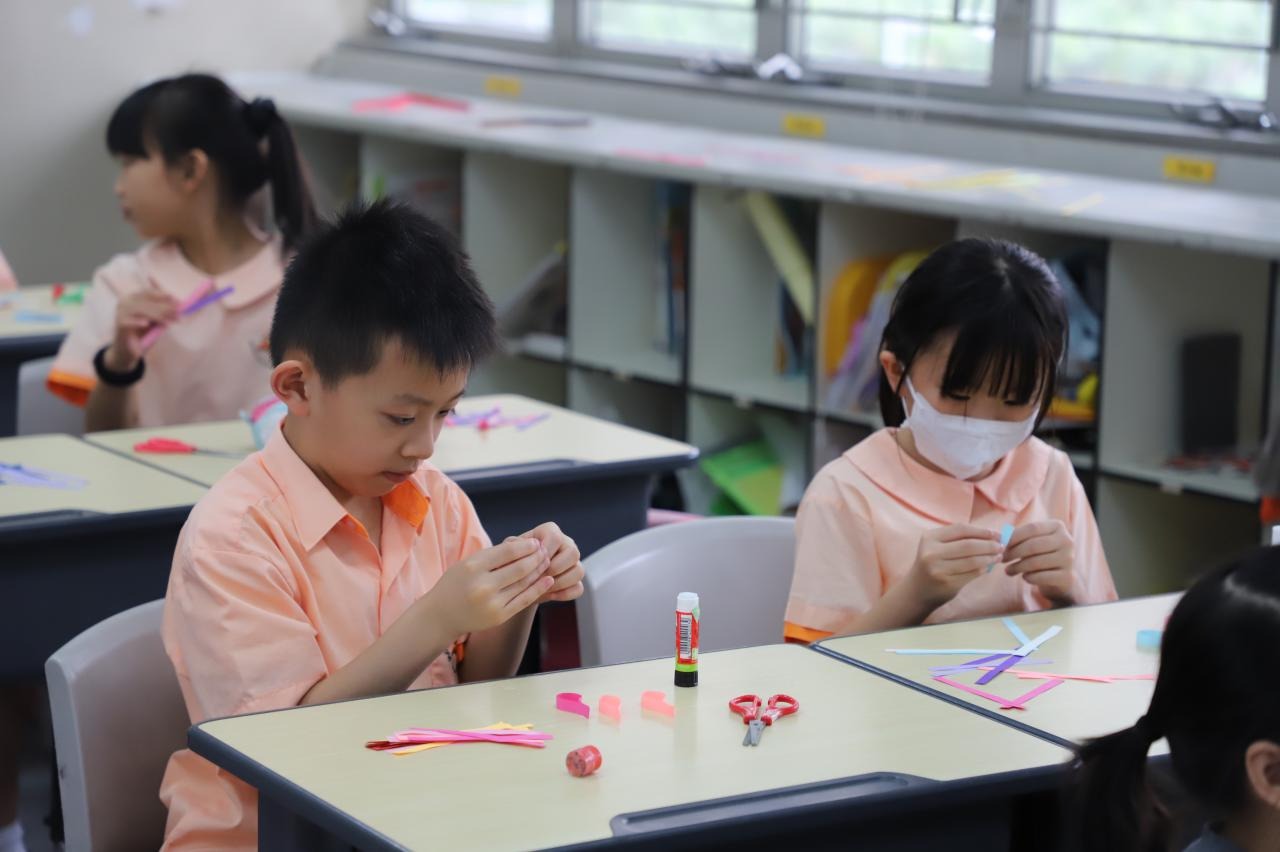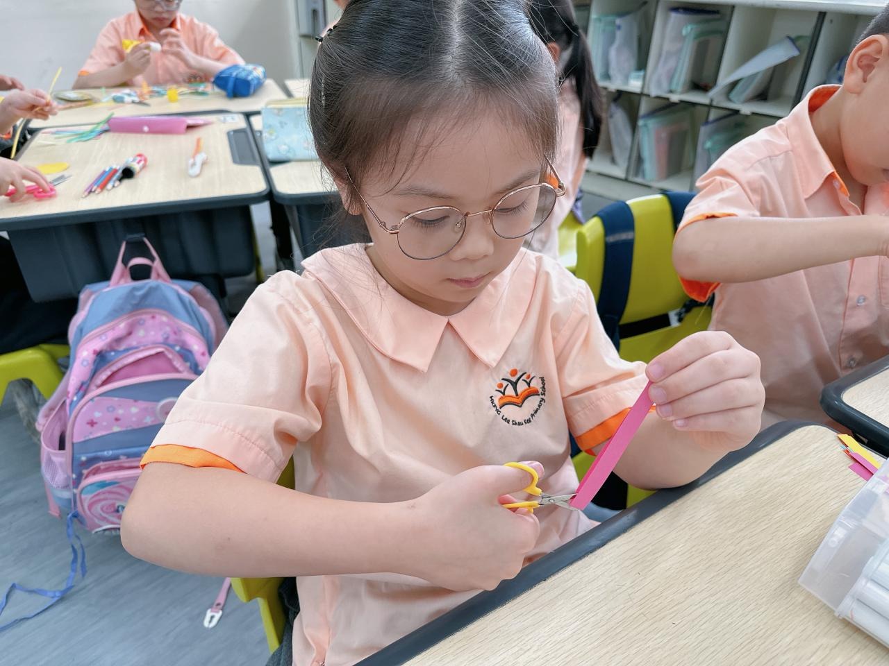 在班主任的指導下,同學們一起製作手工花及絨毛花戒指。看看我們多認真,多仔細!