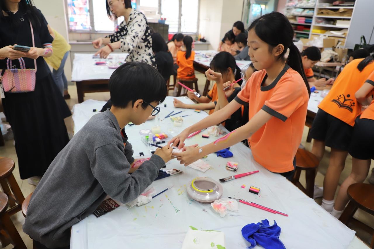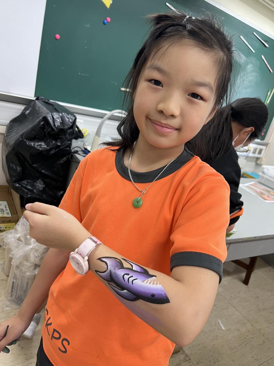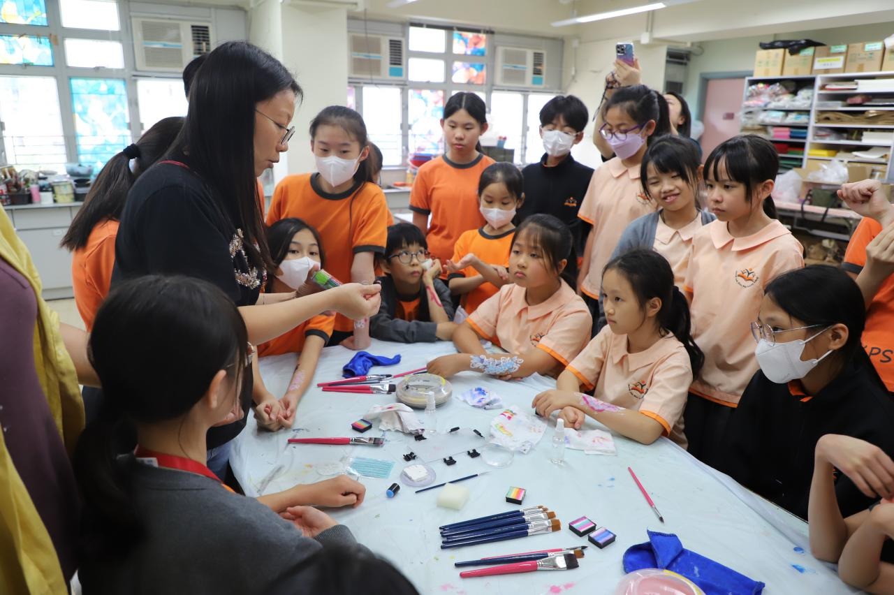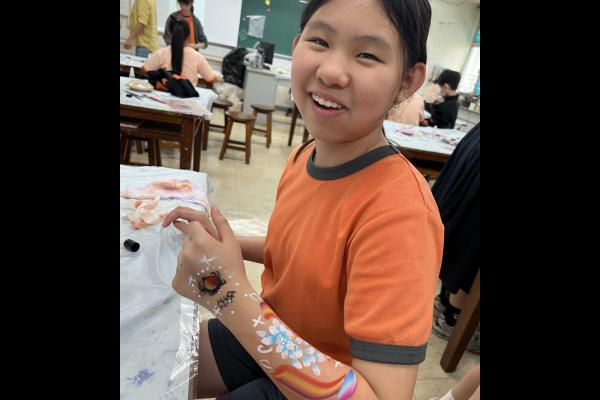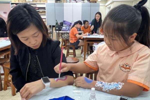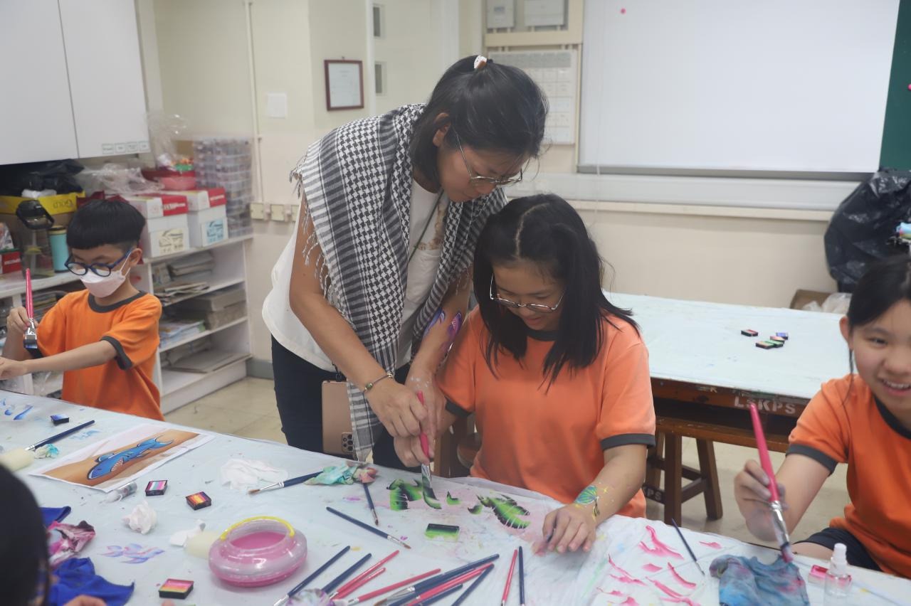 2024-05-20 本校專才班學生在5月20日及5月27日參加了「臉部彩繪工作坊」,導師介紹了彩繪的工具和講解彩繪的技巧,之後同學們在自己的手上進行彩繪練習,畫了一朵朵美麗的花朵、蜘蛛及鯊魚等等的花紋,他們生對這活動深感興趣,十分投入課堂活動,體驗了彩繪的樂趣。 學校活動