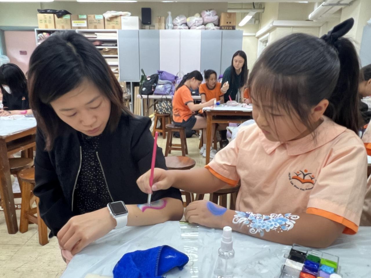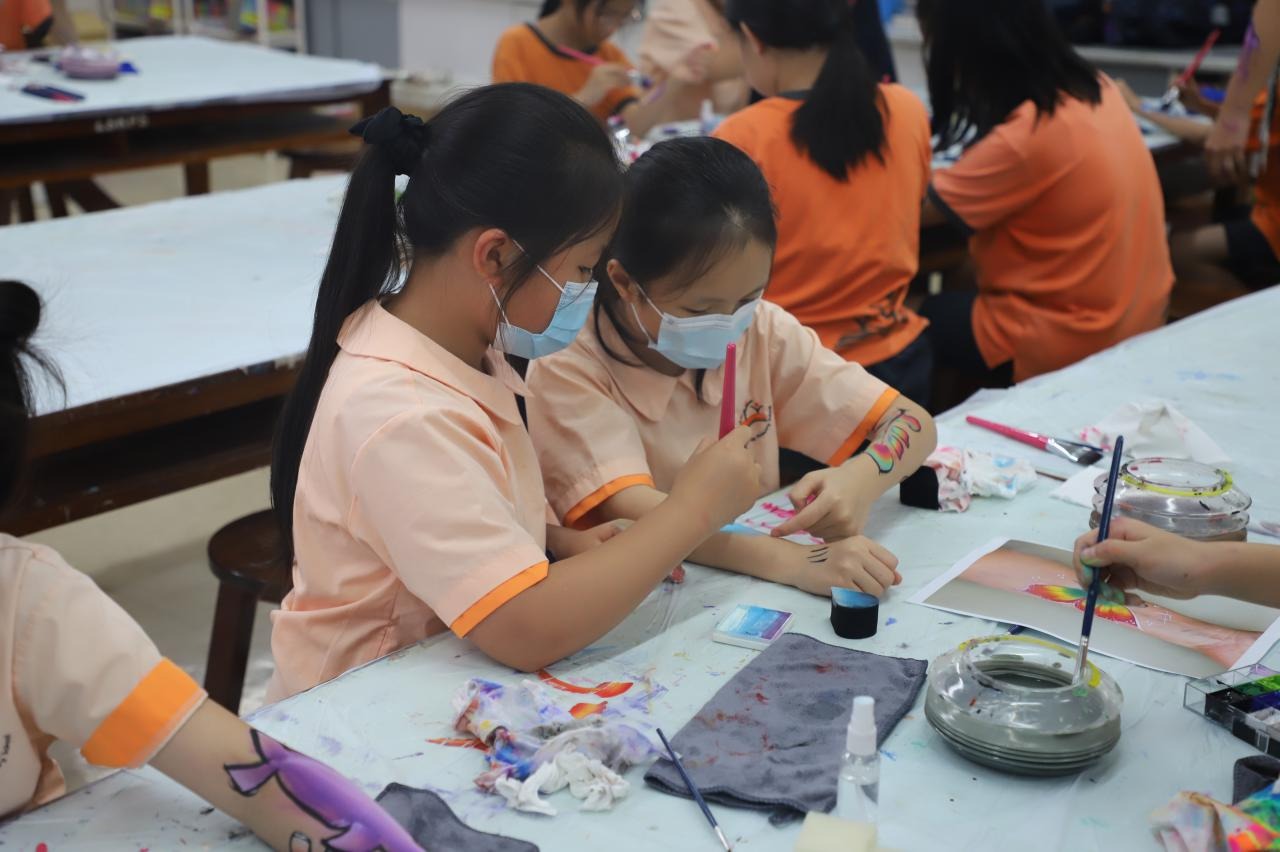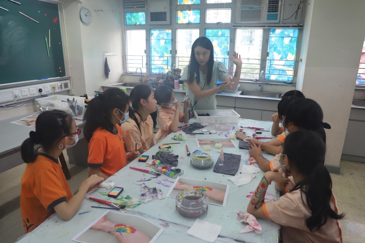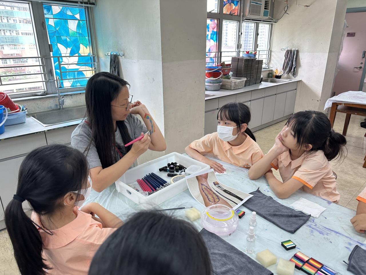 2024-05-20 本校專才班學生在5月20日及5月27日參加了「臉部彩繪工作坊」,導師介紹了彩繪的工具和講解彩繪的技巧,之後同學們在自己的手上進行彩繪練習,畫了一朵朵美麗的花朵、蜘蛛及鯊魚等等的花紋,他們生對這活動深感興趣,十分投入課堂活動,體驗了彩繪的樂趣。 學校活動