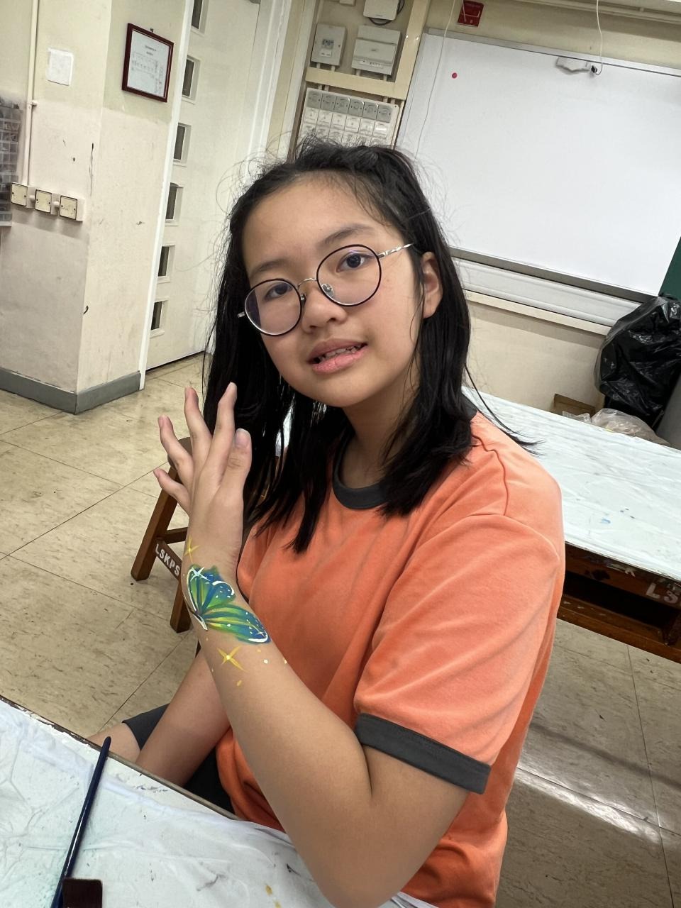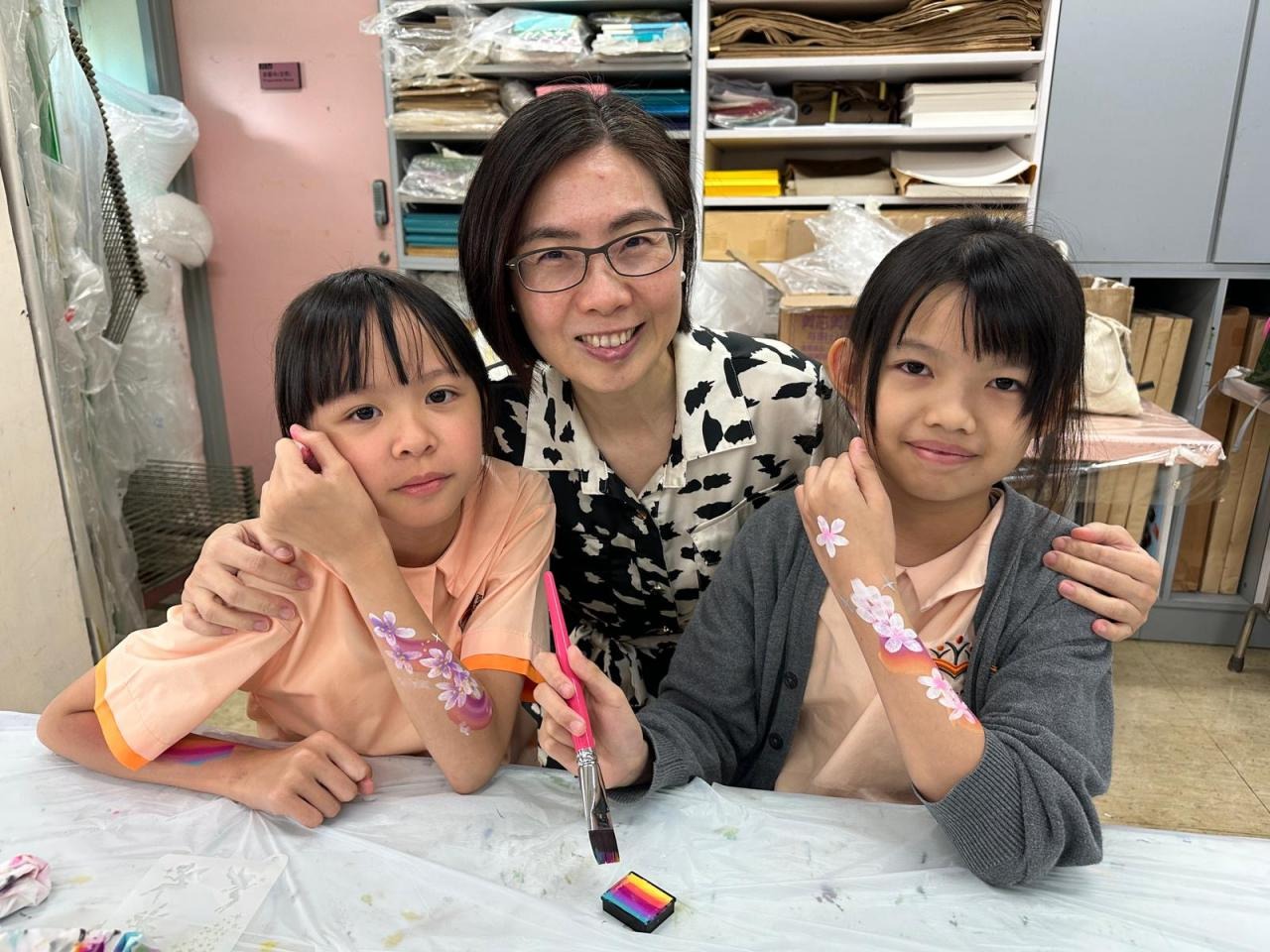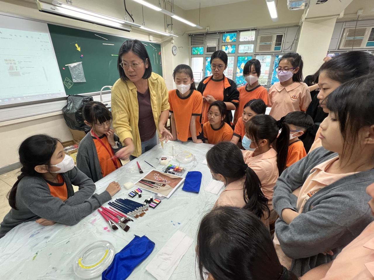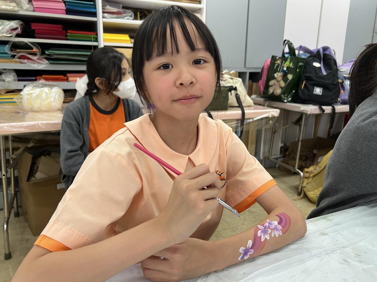 2024-05-20 本校專才班學生在5月20日及5月27日參加了「臉部彩繪工作坊」,導師介紹了彩繪的工具和講解彩繪的技巧,之後同學們在自己的手上進行彩繪練習,畫了一朵朵美麗的花朵、蜘蛛及鯊魚等等的花紋,他們生對這活動深感興趣,十分投入課堂活動,體驗了彩繪的樂趣。 學校活動