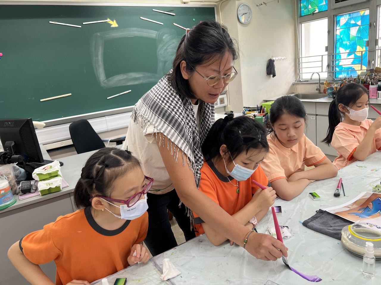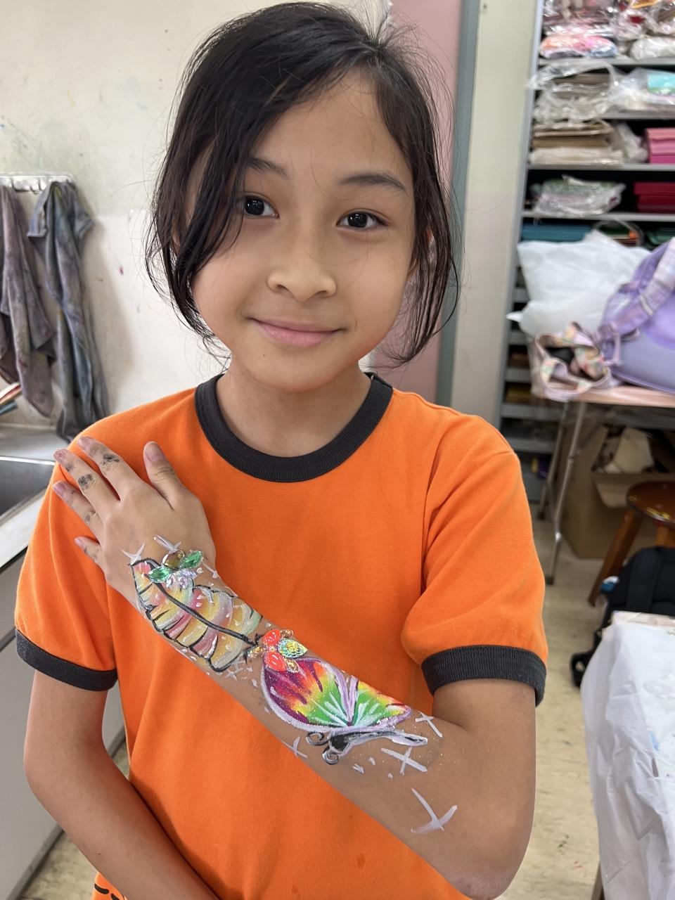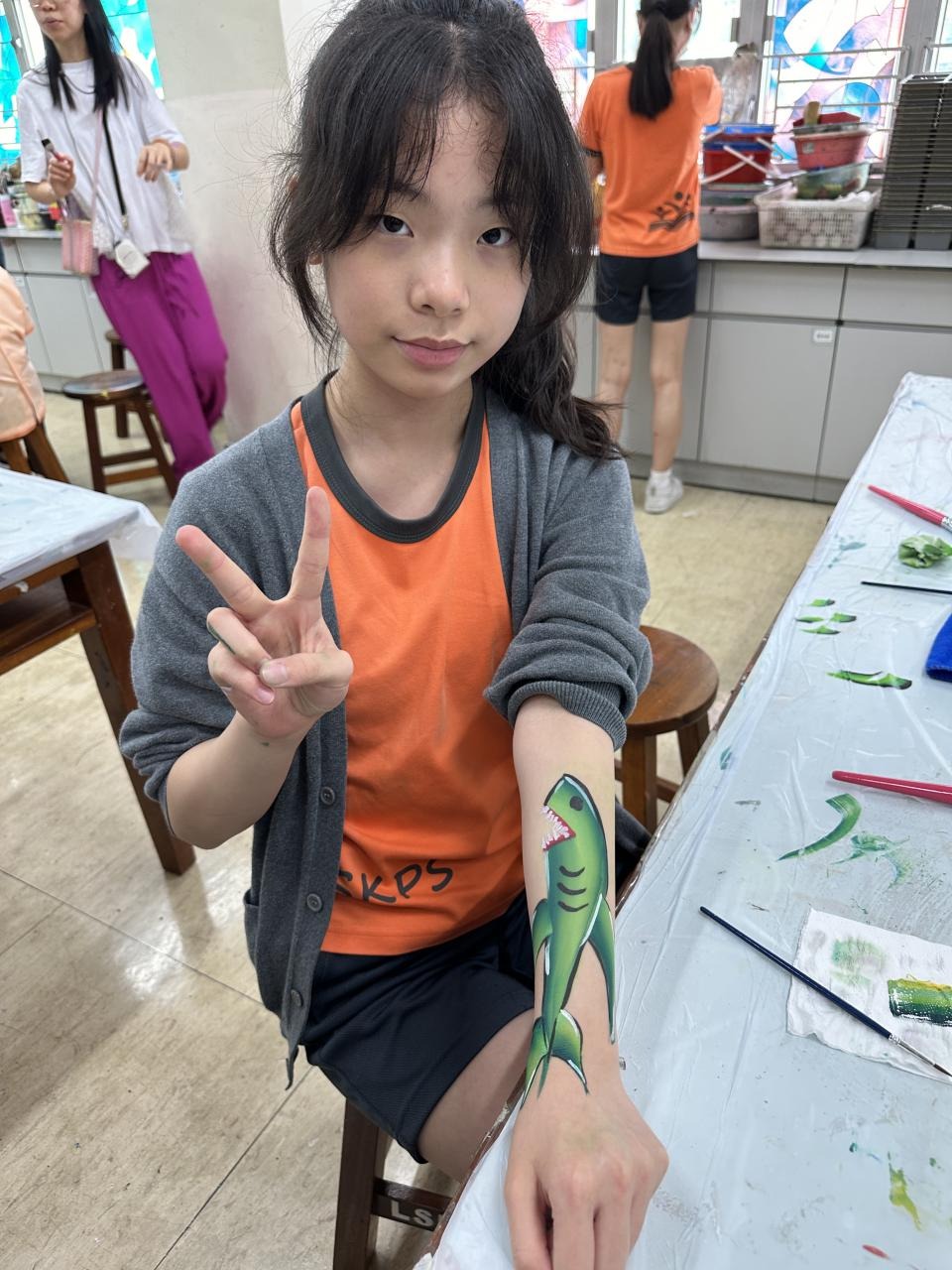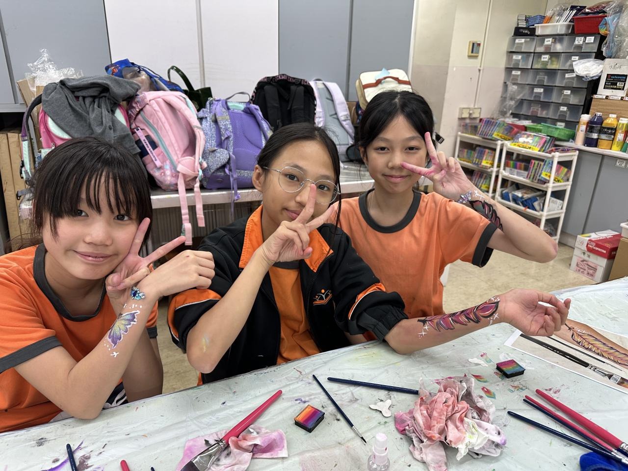 2024-05-20 本校專才班學生在5月20日及5月27日參加了「臉部彩繪工作坊」,導師介紹了彩繪的工具和講解彩繪的技巧,之後同學們在自己的手上進行彩繪練習,畫了一朵朵美麗的花朵、蜘蛛及鯊魚等等的花紋,他們生對這活動深感興趣,十分投入課堂活動,體驗了彩繪的樂趣。 學校活動