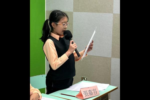 12月8日下午,5A張嘉容、 5A金正宇、 5B敖俊鋒、6A陳力勤以及6C魏詩伶同學代表我校出席成都市天涯石小學逸景分校主辦的朗誦比賽線上活動,並在該活動中擔任評委。