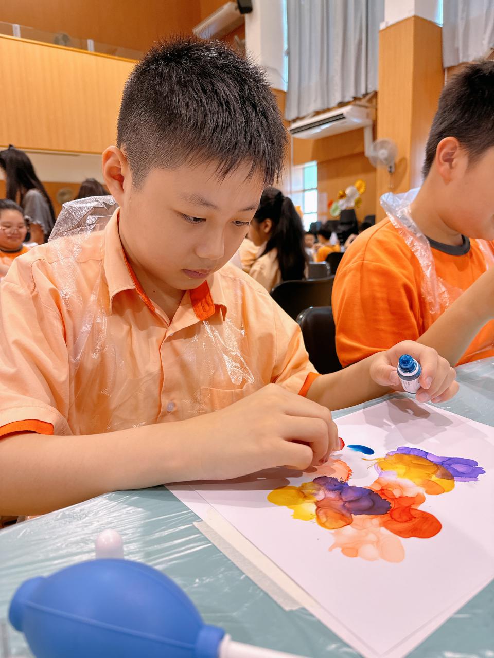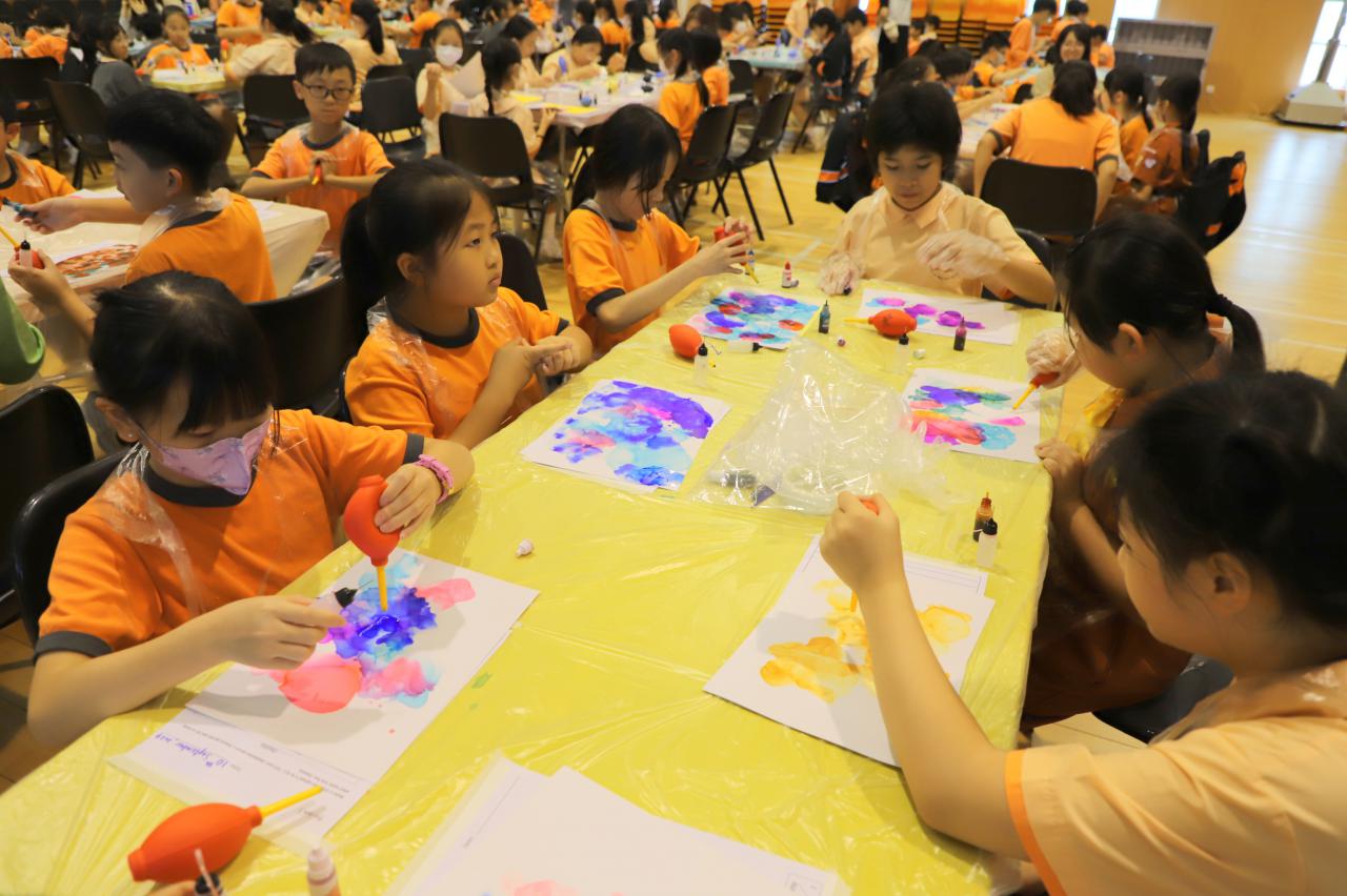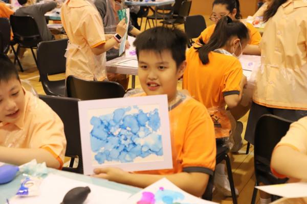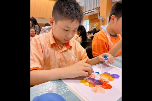 2024-11-15 早前我們邀請了加戲工作室到校為五年級學生及一眾老師舉辦藝術治療工作坊——酒精墨水畫體驗。 先聽從導師詳細的講解,並謹記整個作畫過程中並無分對與錯。 不論是學生或老師在滴落、噴灑或混合墨水和酒精的過程中,都能夠暫且忘卻工作、學業或生活上的壓力和煩惱,並透過觀察墨水在畫紙上的流動和相互作用,從中獲得一份平靜感和色彩上的視覺享受。 學校活動