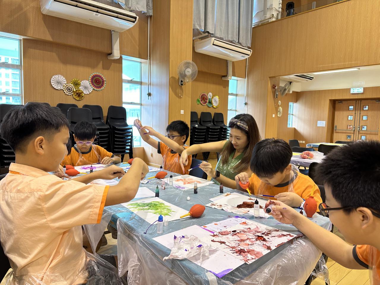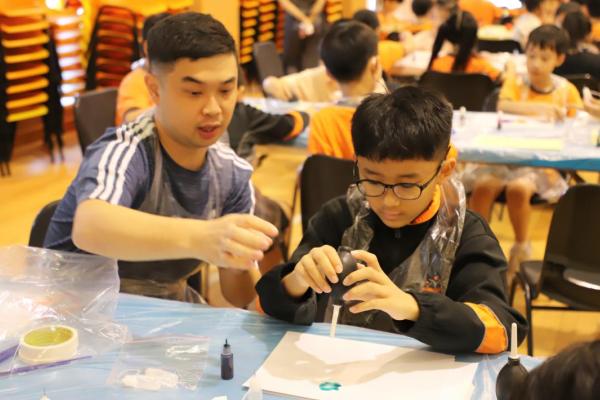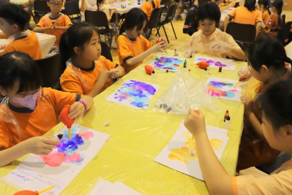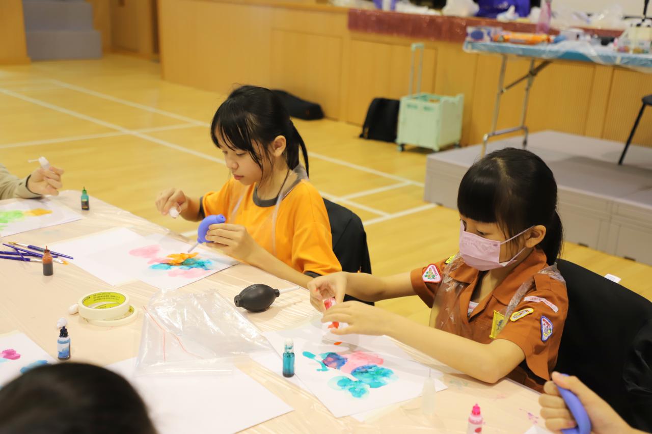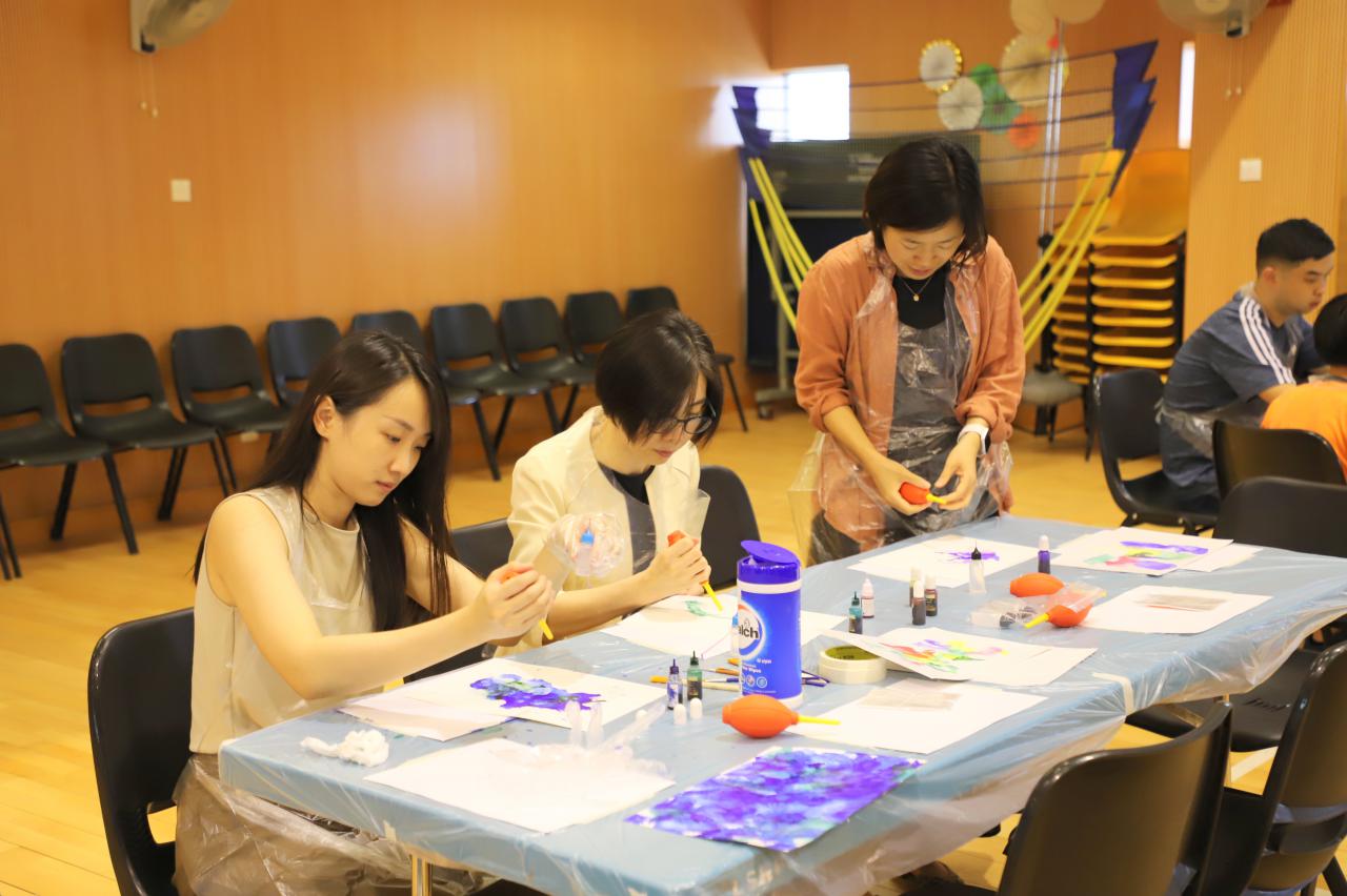 2024-11-15 早前我們邀請了加戲工作室到校為五年級學生及一眾老師舉辦藝術治療工作坊——酒精墨水畫體驗。 先聽從導師詳細的講解,並謹記整個作畫過程中並無分對與錯。 不論是學生或老師在滴落、噴灑或混合墨水和酒精的過程中,都能夠暫且忘卻工作、學業或生活上的壓力和煩惱,並透過觀察墨水在畫紙上的流動和相互作用,從中獲得一份平靜感和色彩上的視覺享受。 學校活動