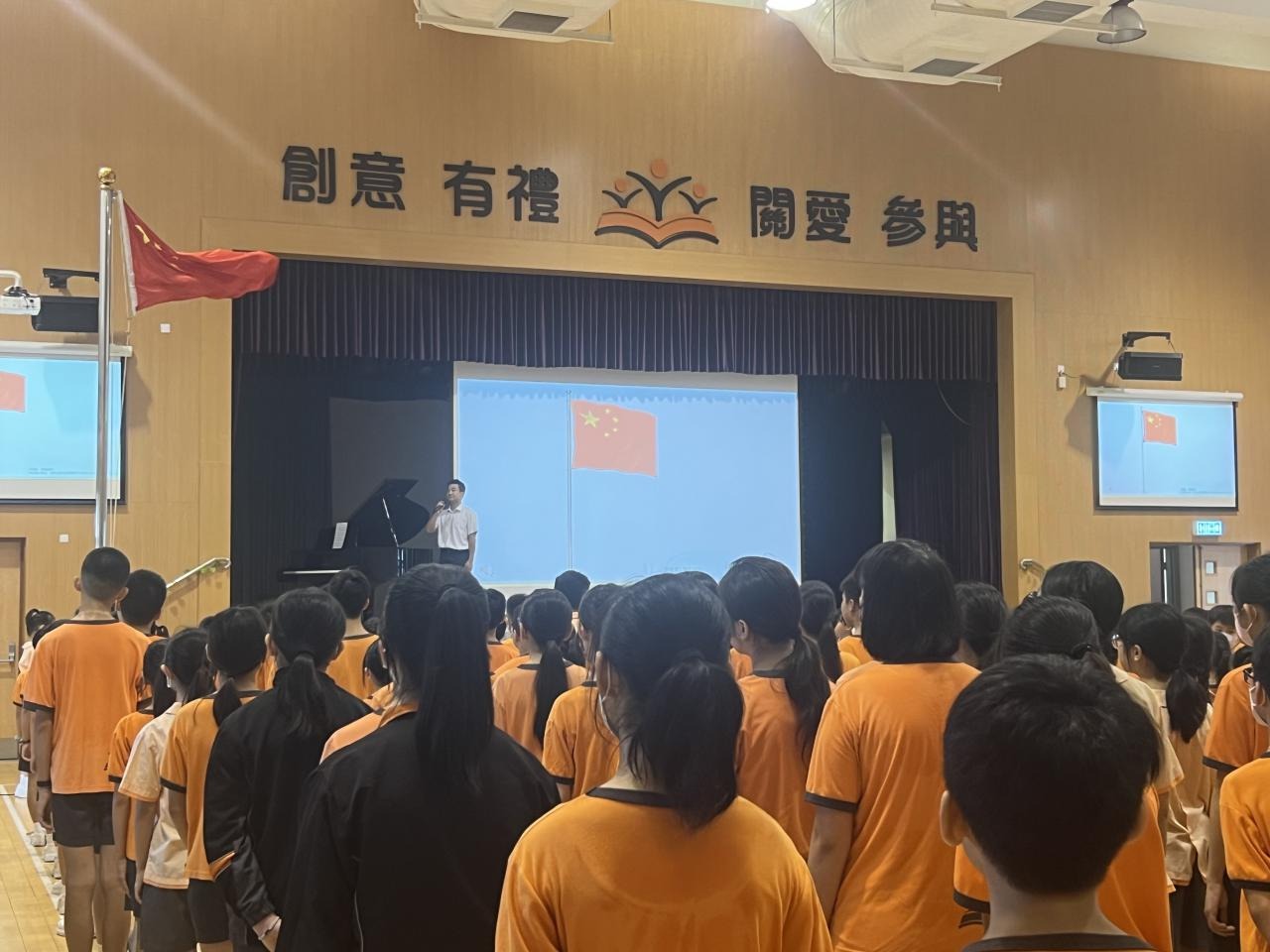 儀式在早晨8點正準時進行。師生們在響亮的國歌聲中看著國旗徐徐升起,氣氛莊嚴肅穆。 緊接著,學生代表結合了今年國慶主題「愛國愛港愛社區」的內容進行了國旗下分享,為同學了解國家發展動向、香港發展機遇提供了很多資訊,厚植了家國情懷。