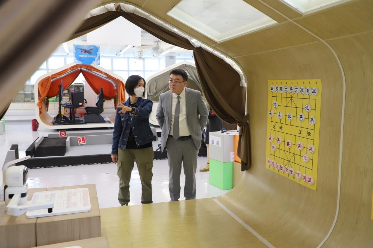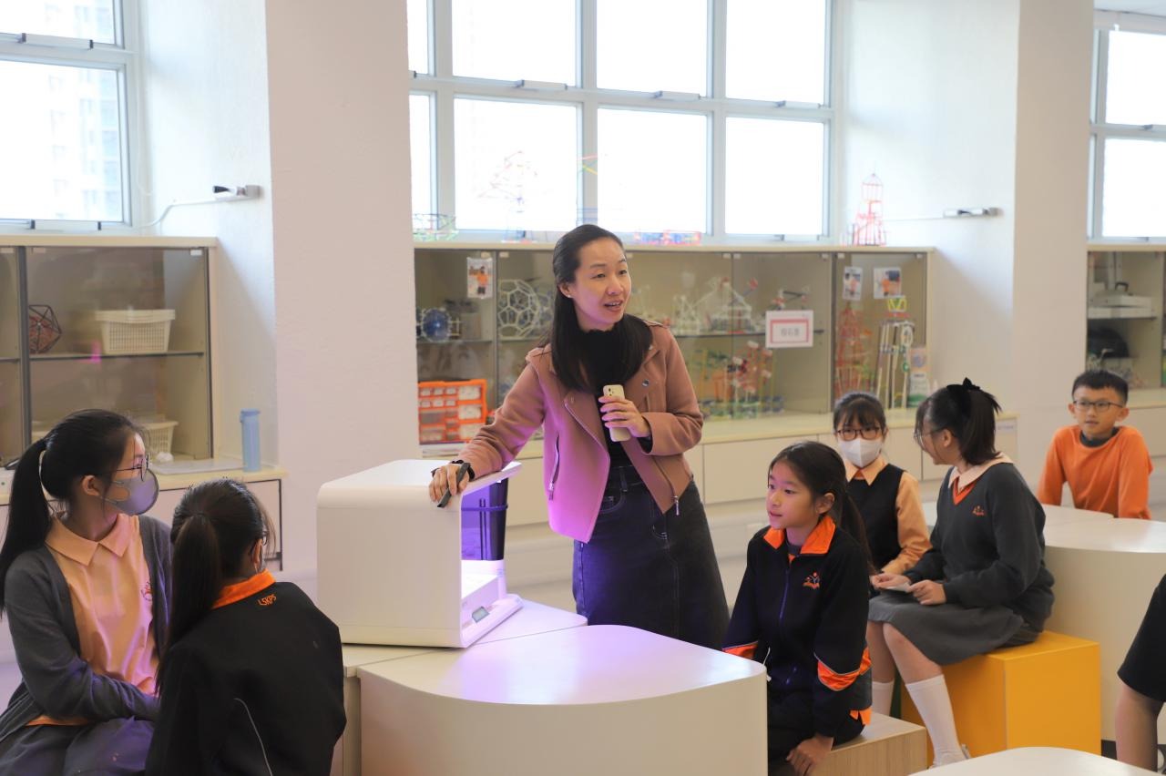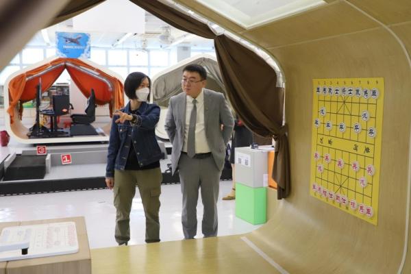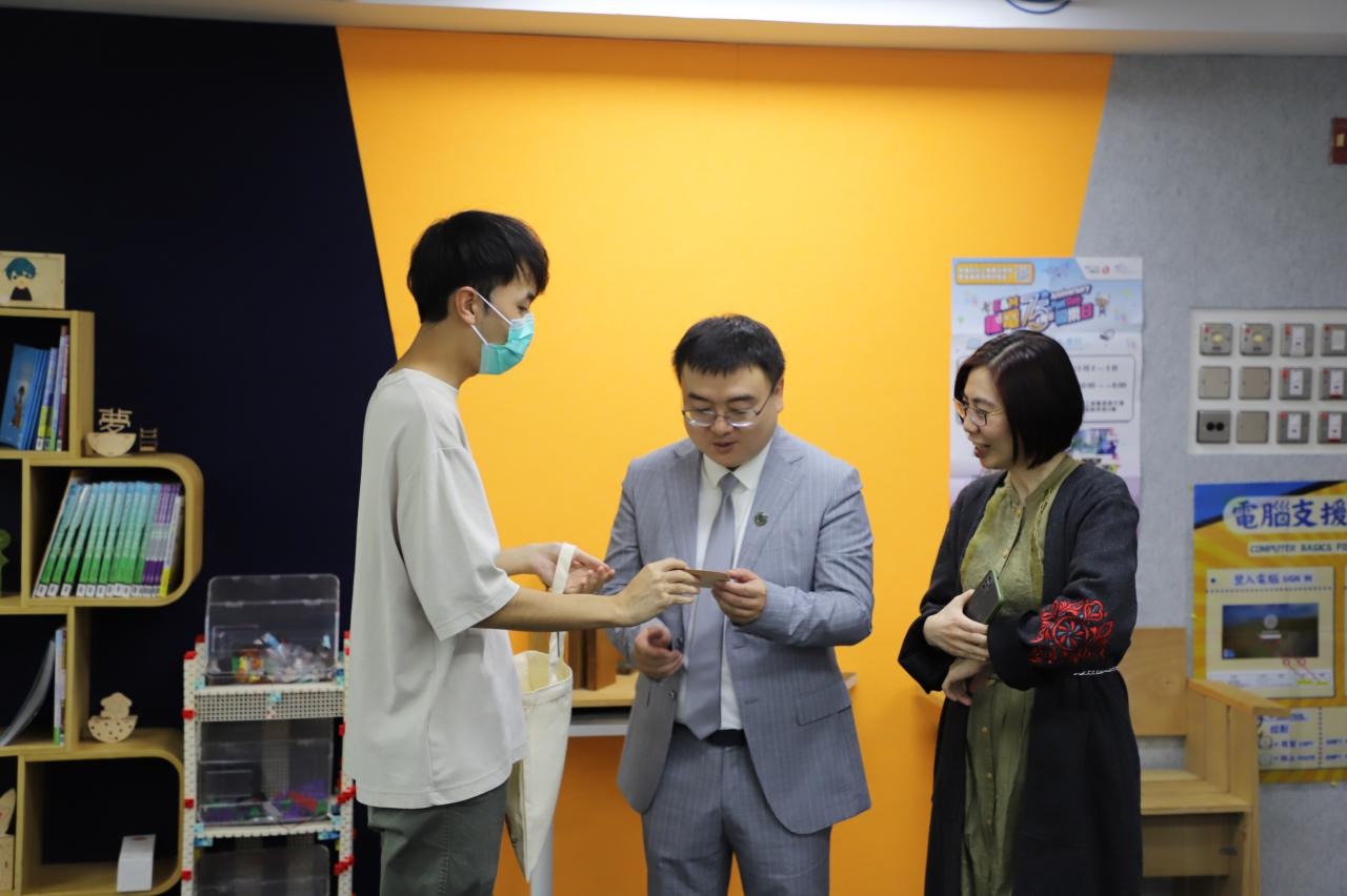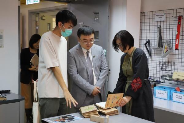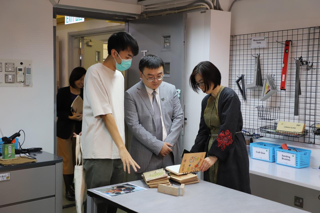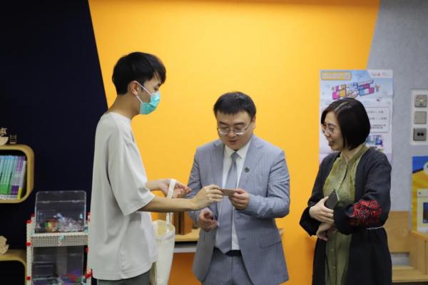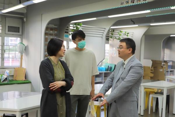 深入交流結束後,蔡教授參觀我們的創客專區,蔡教授盛讚我校給學生們創造的STEM設備和課程。我們給蔡教授贈送了用我校雷射切割機製作的實用禮品,為這次遊覽畫上了完美的句號。臨走前,蔡教授還帶走了我們專才「旭報」同學設計的「旭報」報紙,他笑道:「這次的行程真的是滿載而歸呀!」