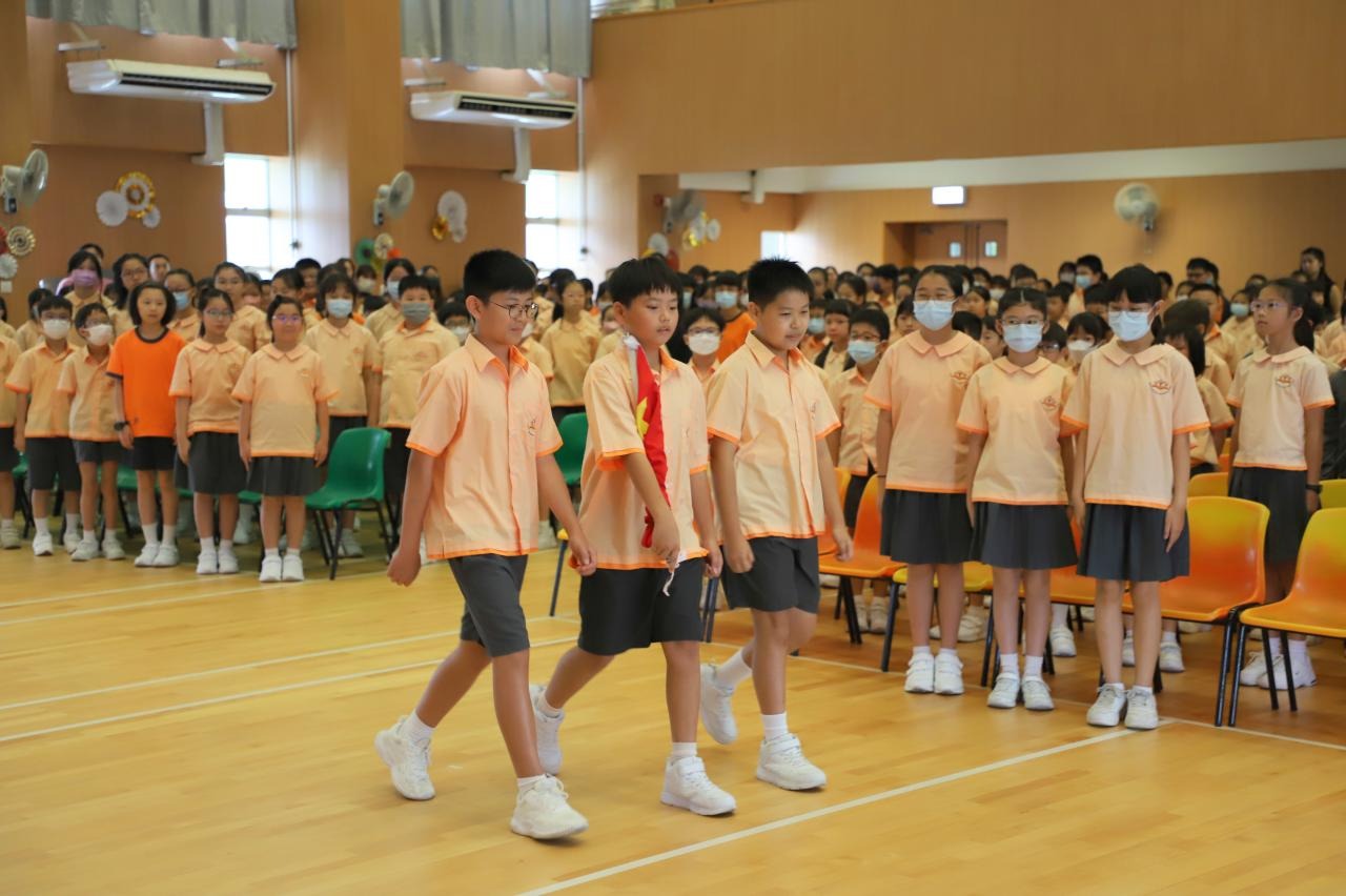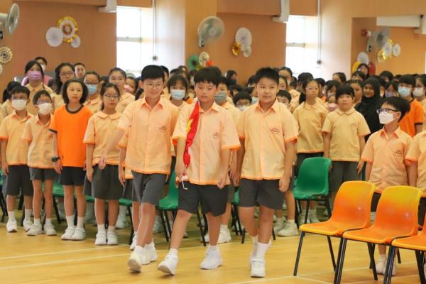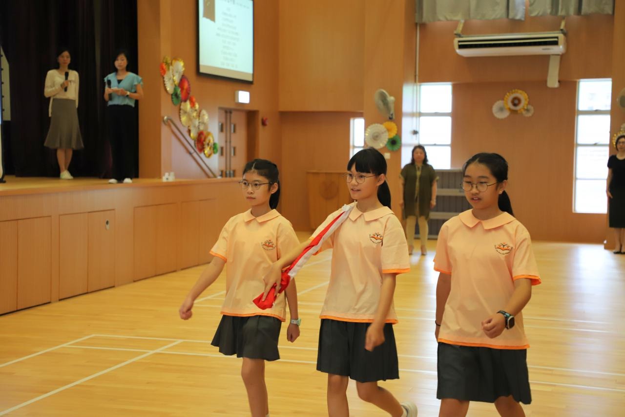 腎肝新學年開學日因9月1日掛起颱風而延至9月4日,而新學年的開學禮亦因此而順延至9月5日才舉行。在開學禮中,本校升旗隊隊員首次在典禮中登場。開學禮以升旗儀式打開序幕,三位持旗手英姿颯颯地步入禮堂,全場師生向其行注目禮。當隊員展開國旗,全場師生熟練地唱起國歌,國旗在國歌奏唱中冉冉升起。