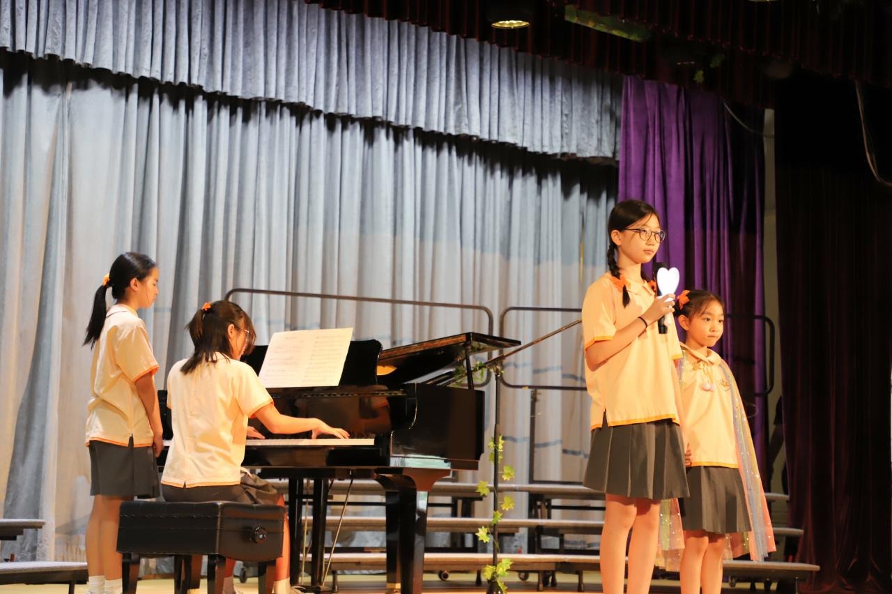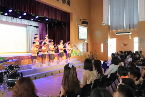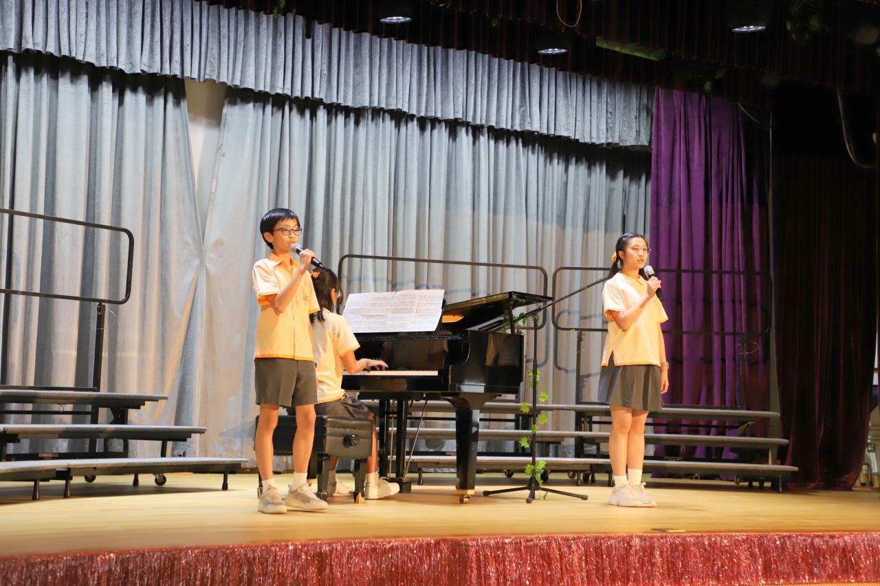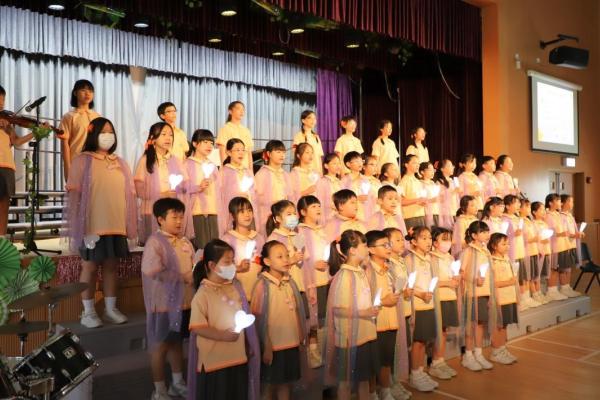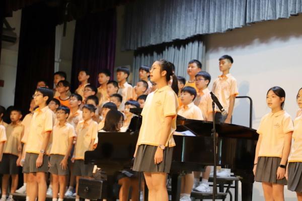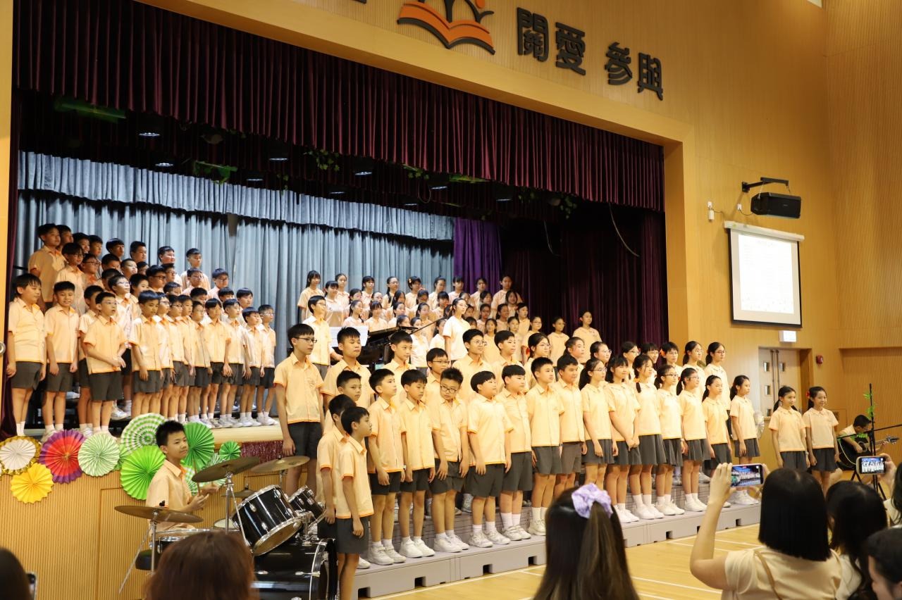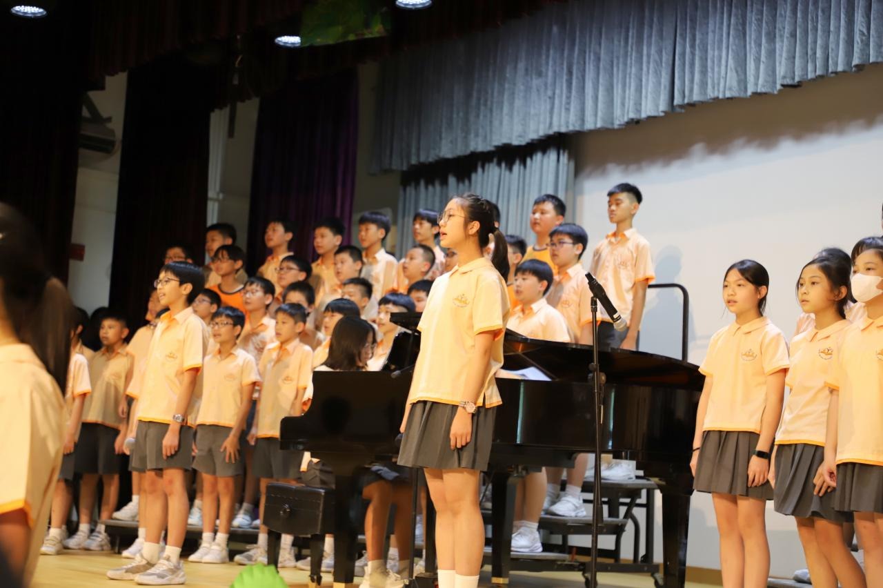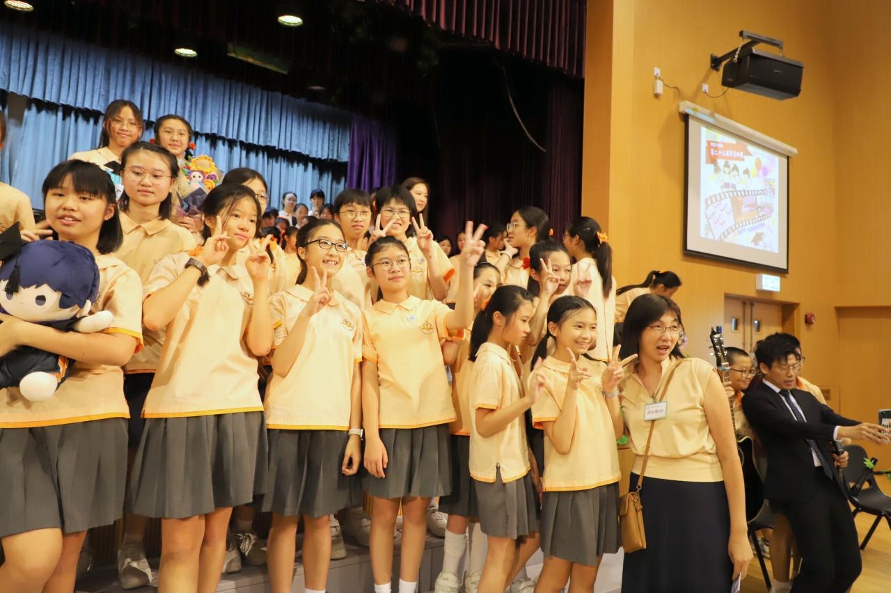 五班畢業生於精彩的表演中展現了他們的自信及活力;師長及嘉賓們接過畢業生親自創作的獨一無二的畢業帽及具本校創客科特色的紀念品後,都驚喜不已;典禮最後一項表演是全體畢業生大合唱,畢業生用美妙的歌聲、動人的歌詞表達對家人、對師長的感謝。最後,大會更邀請了主禮團各位嘉賓、各位老師與全體畢業生大合照留念,這張難得的合照為應屆畢業生留下了極具意義的回憶。