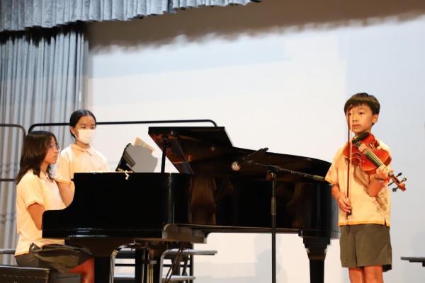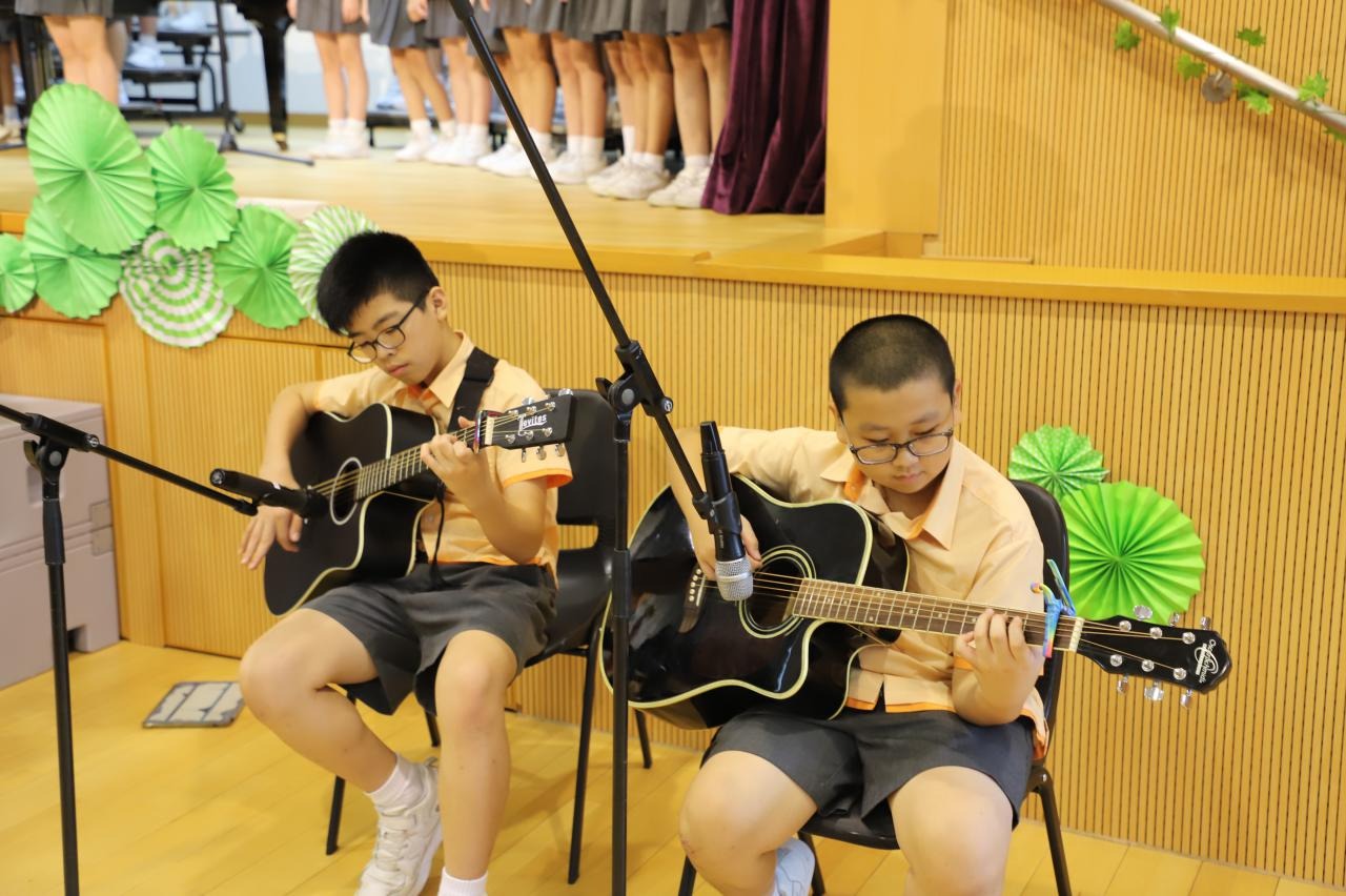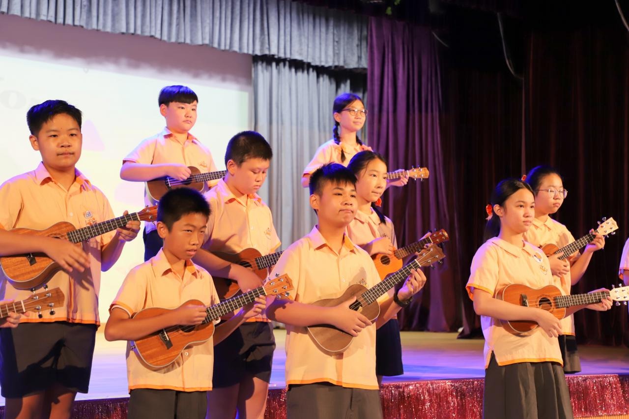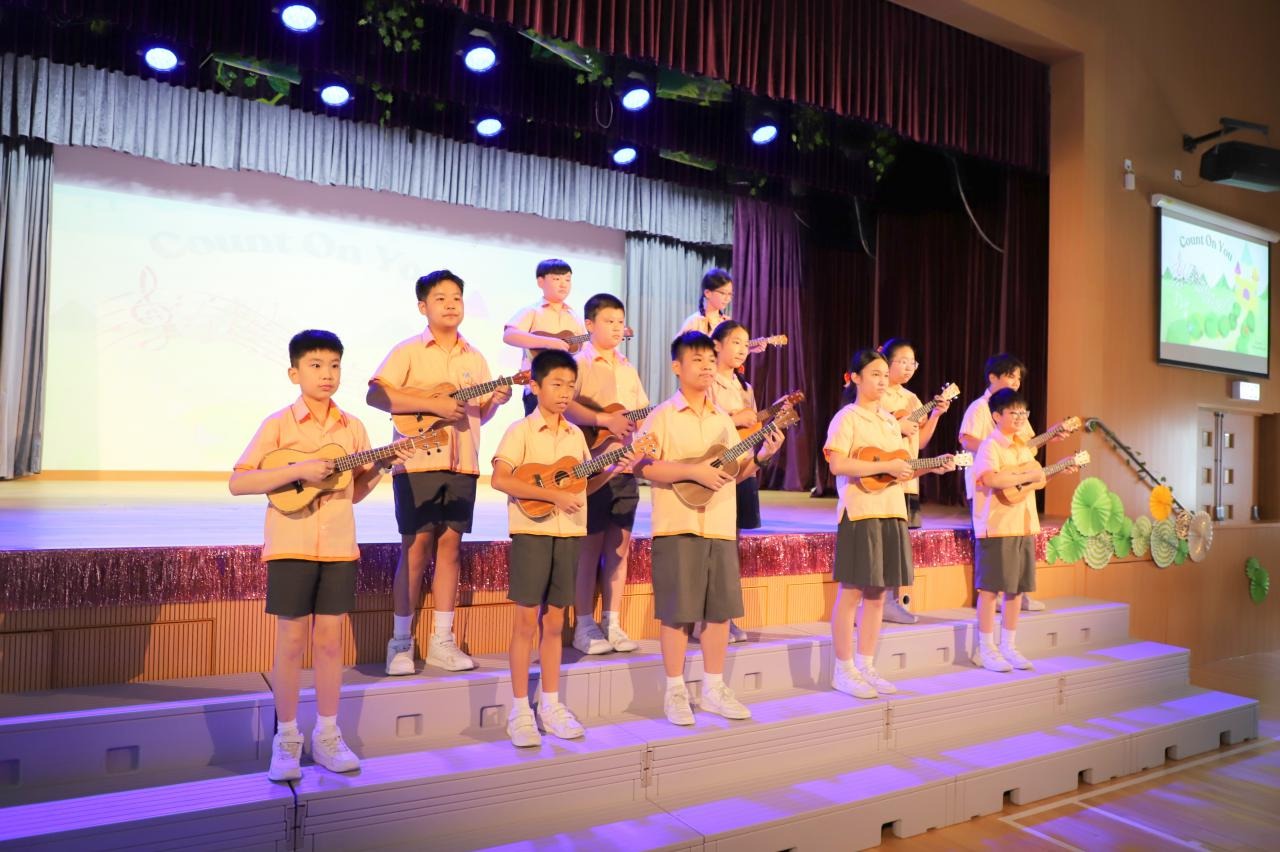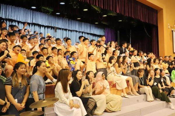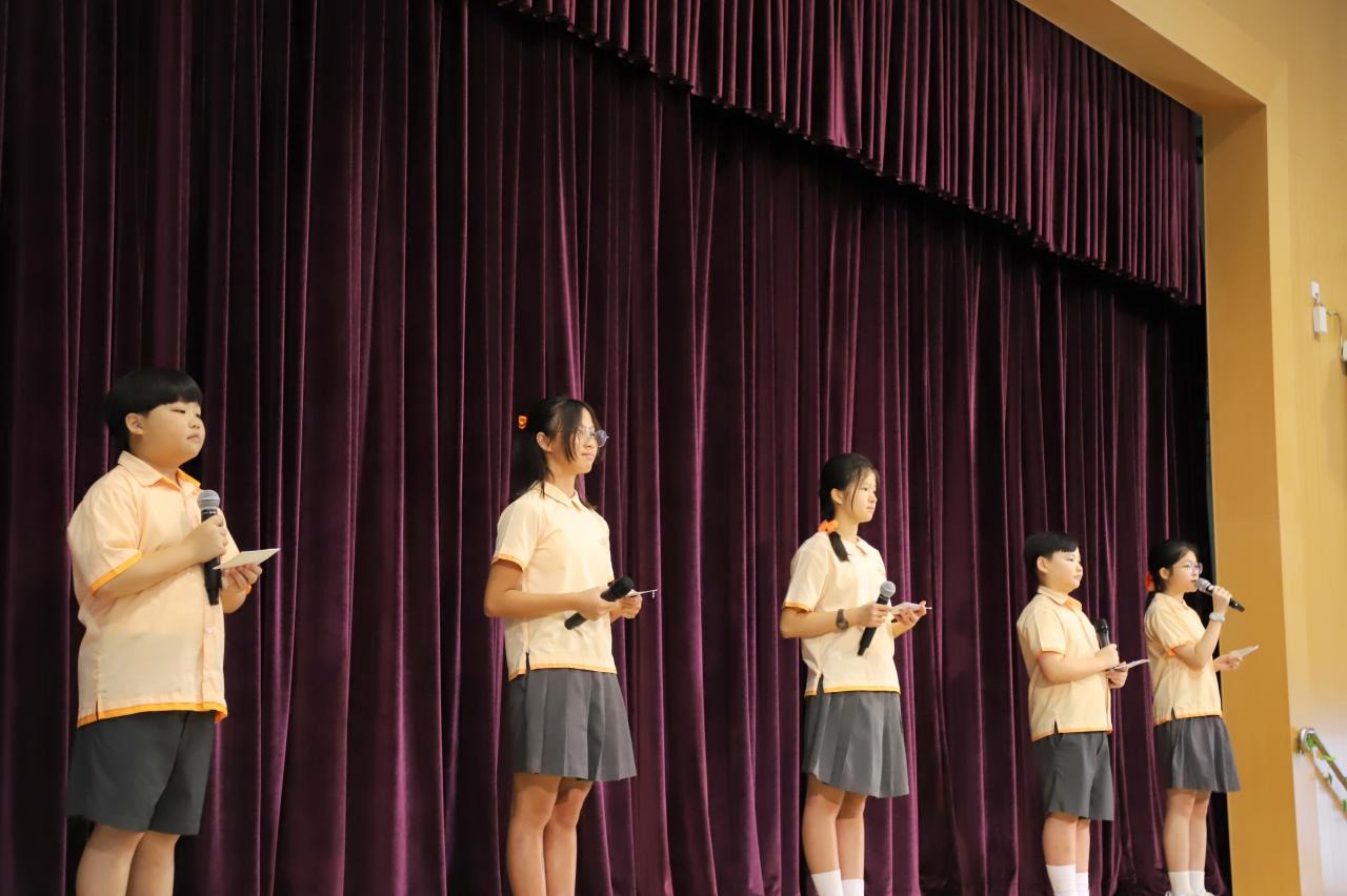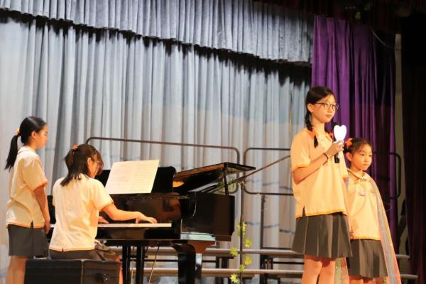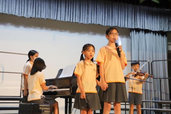 五班畢業生於精彩的表演中展現了他們的自信及活力;師長及嘉賓們接過畢業生親自創作的獨一無二的畢業帽及具本校創客科特色的紀念品後,都驚喜不已;典禮最後一項表演是全體畢業生大合唱,畢業生用美妙的歌聲、動人的歌詞表達對家人、對師長的感謝。最後,大會更邀請了主禮團各位嘉賓、各位老師與全體畢業生大合照留念,這張難得的合照為應屆畢業生留下了極具意義的回憶。