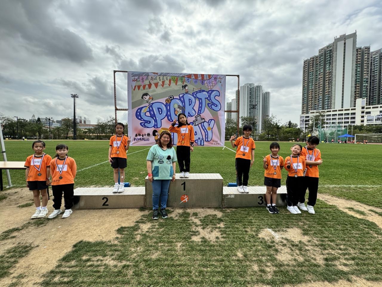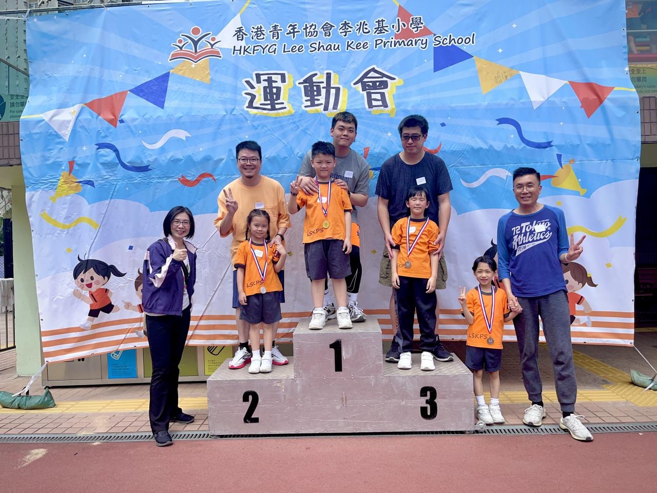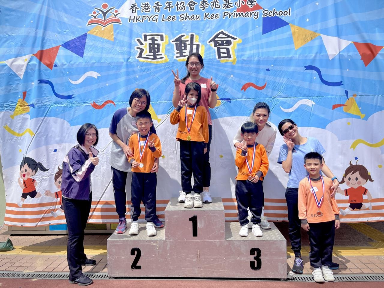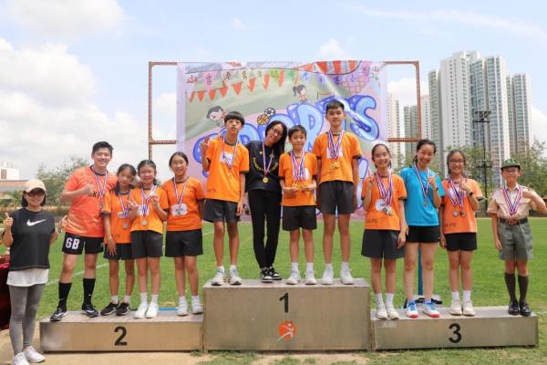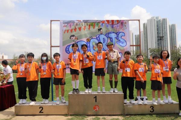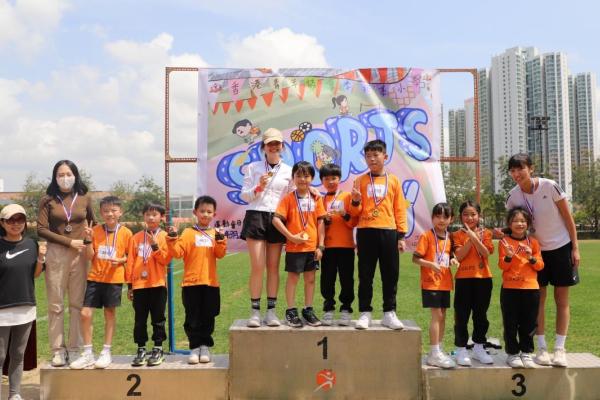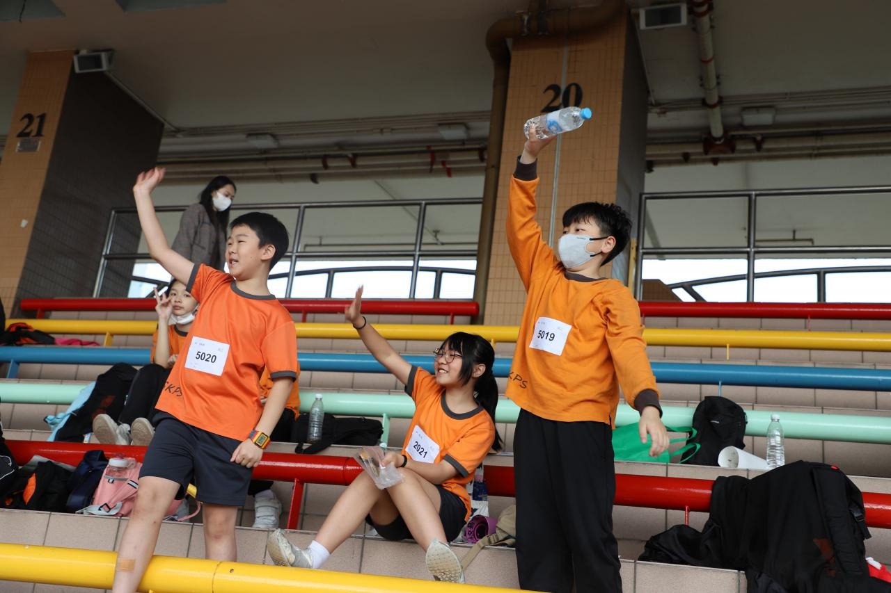 各班同學在看台上落力的打氣,令場外場內都充滿團結的氣氛﹗今次運動會的成功有賴不同單位的協助,包括本校的家長義工,