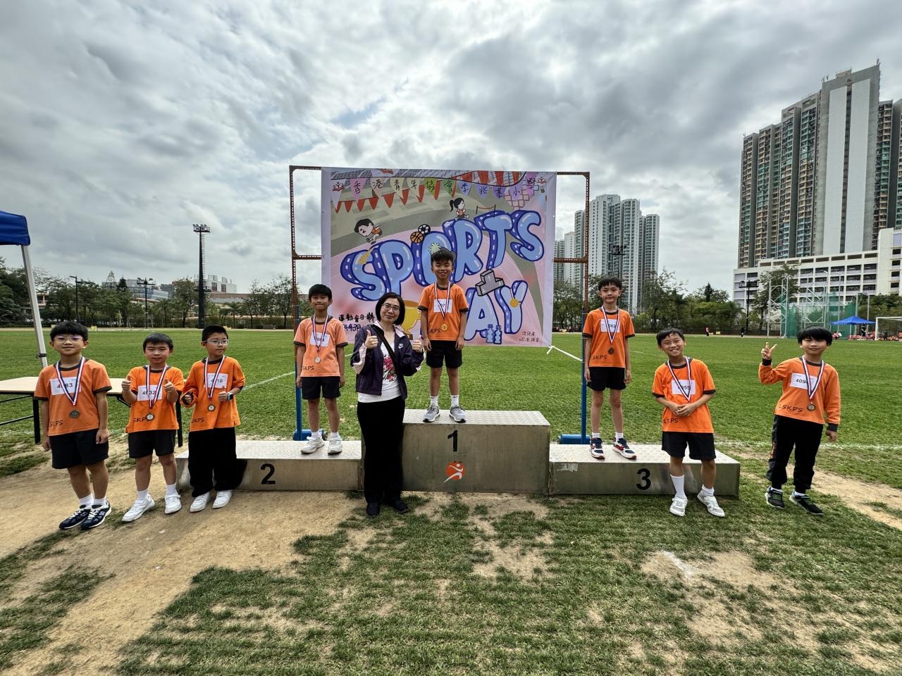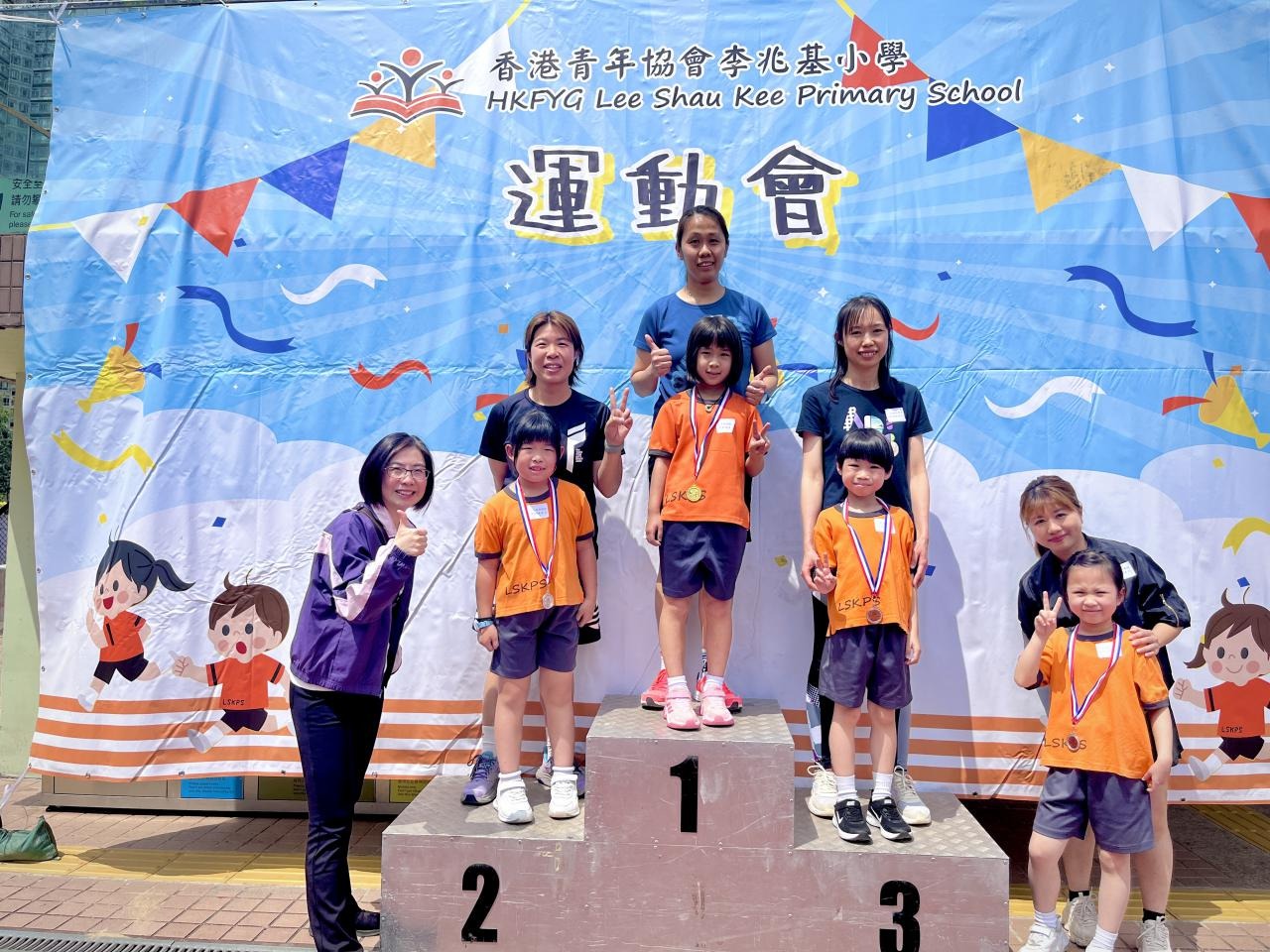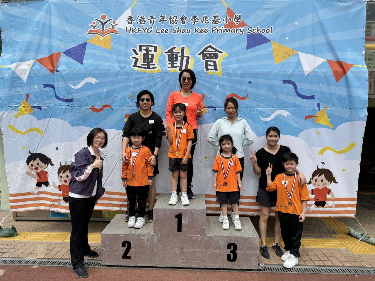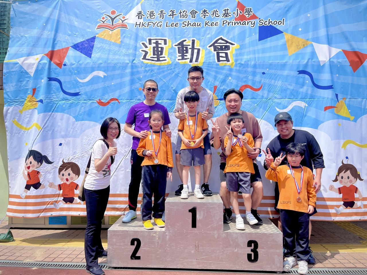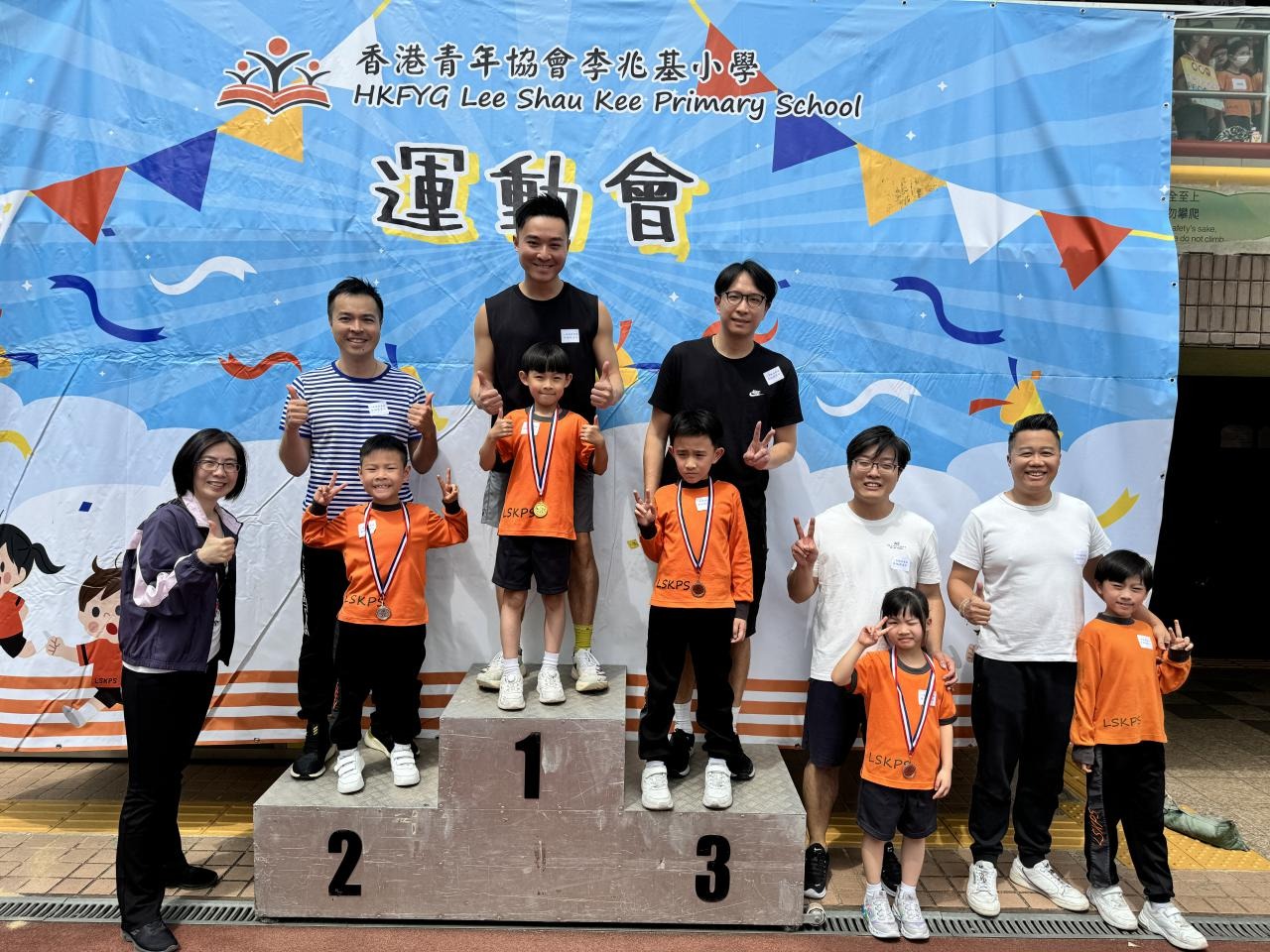 各班同學在看台上落力的打氣,令場外場內都充滿團結的氣氛﹗今次運動會的成功有賴不同單位的協助,包括本校的家長義工,