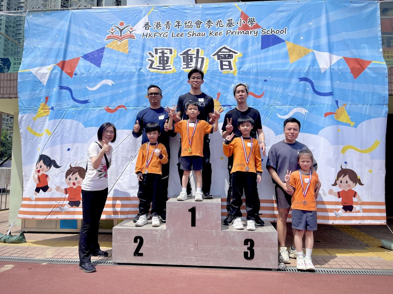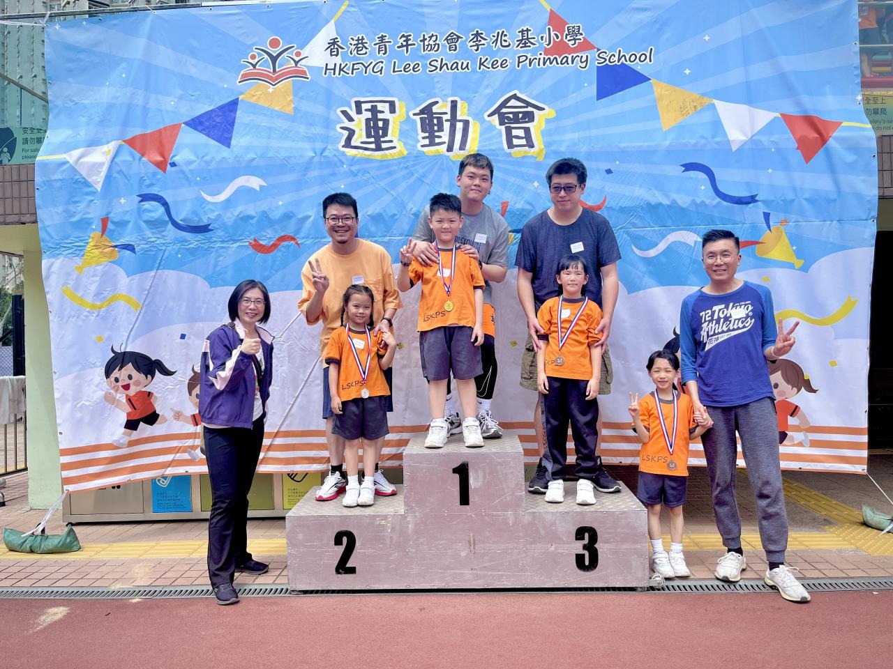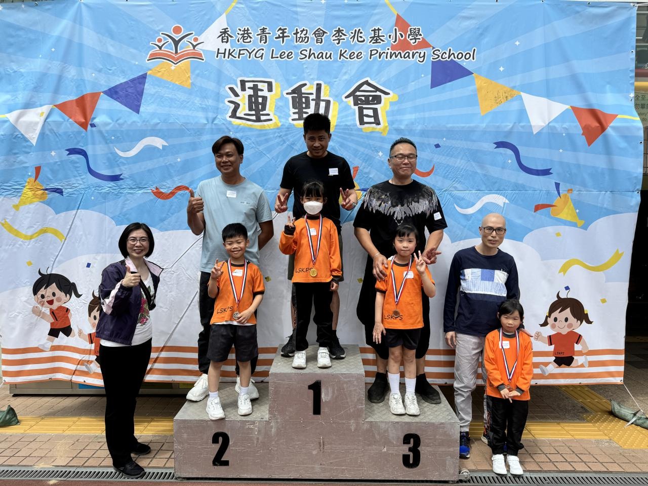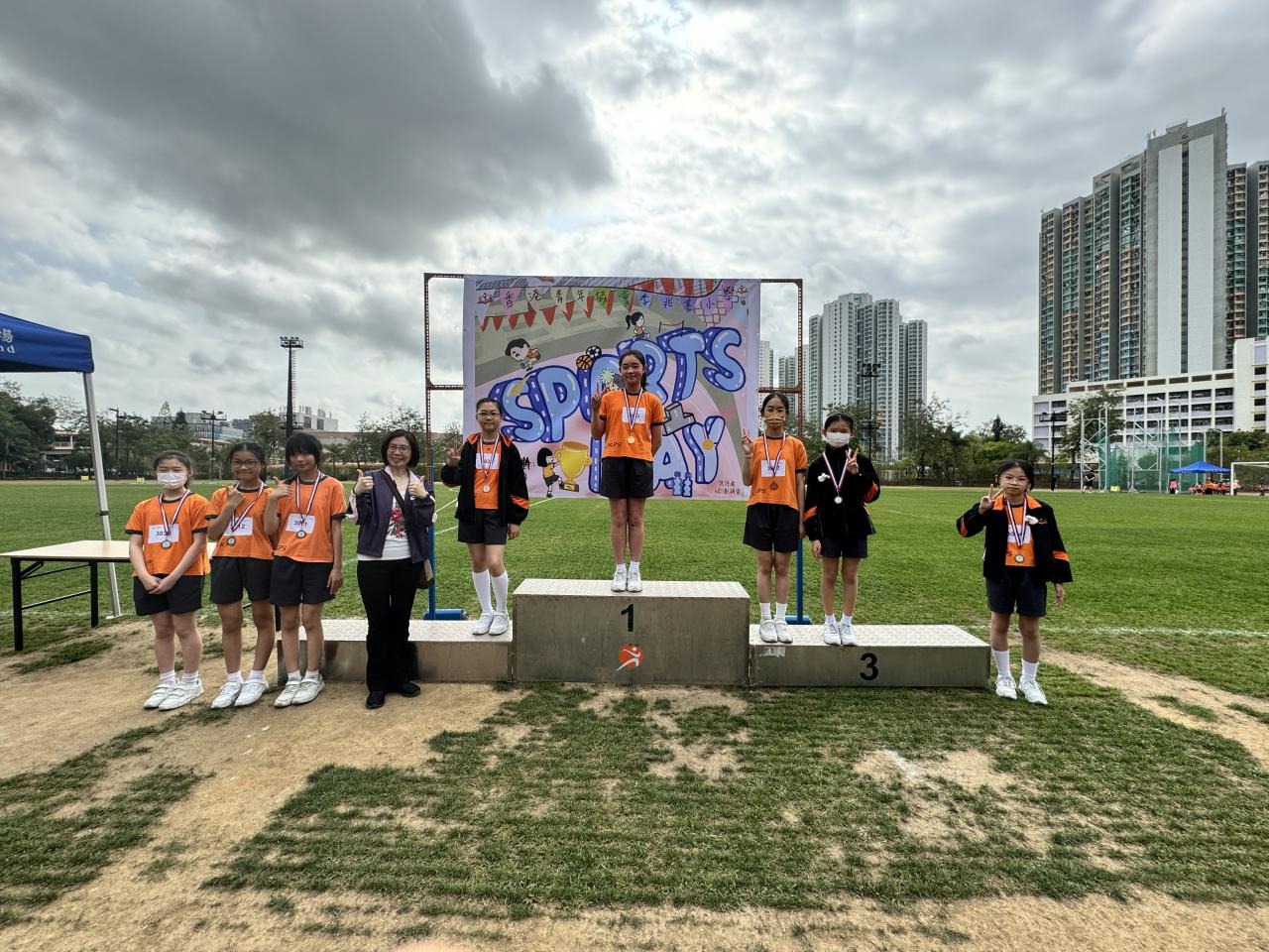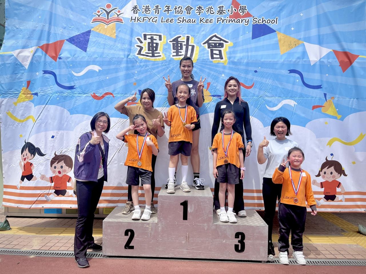 各班同學在看台上落力的打氣,令場外場內都充滿團結的氣氛﹗今次運動會的成功有賴不同單位的協助,包括本校的家長義工,