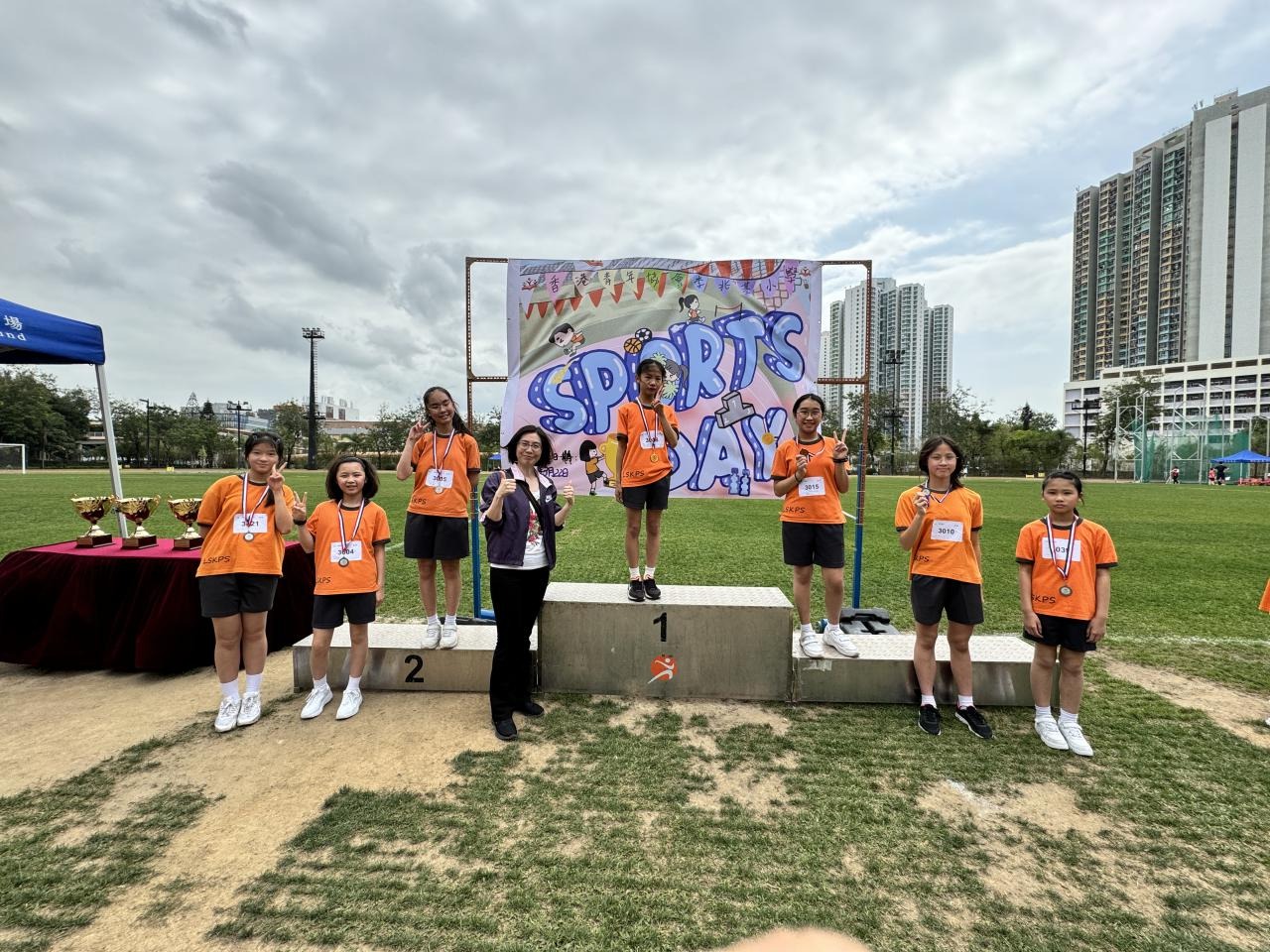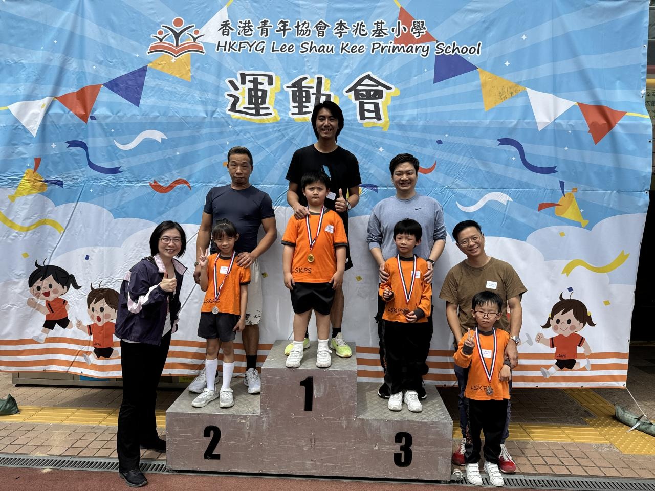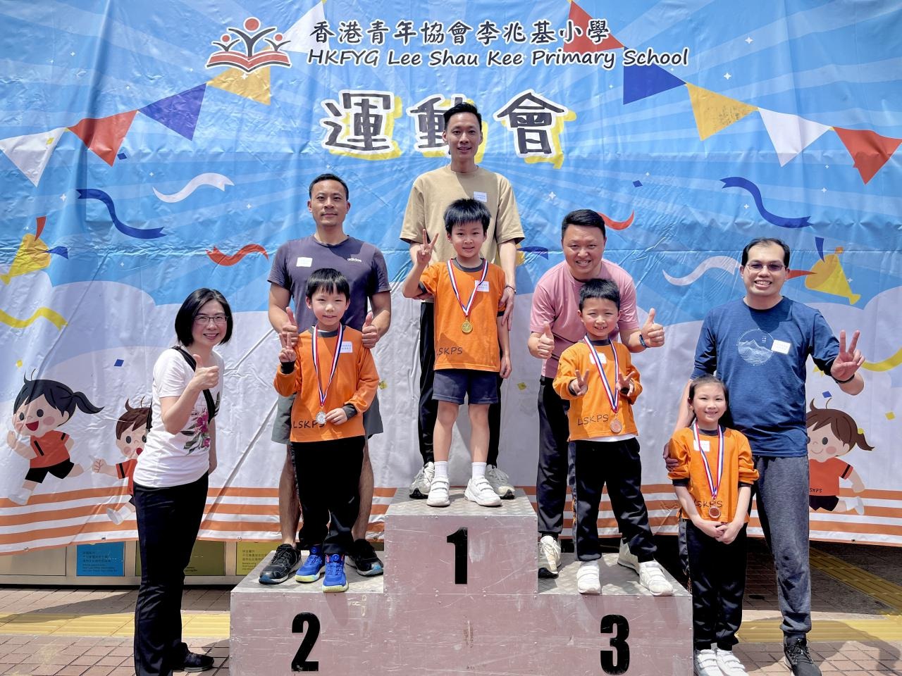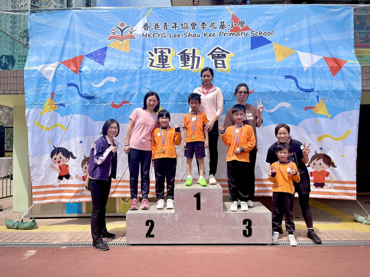各班同學在看台上落力的打氣,令場外場內都充滿團結的氣氛﹗今次運動會的成功有賴不同單位的協助,包括本校的家長義工,