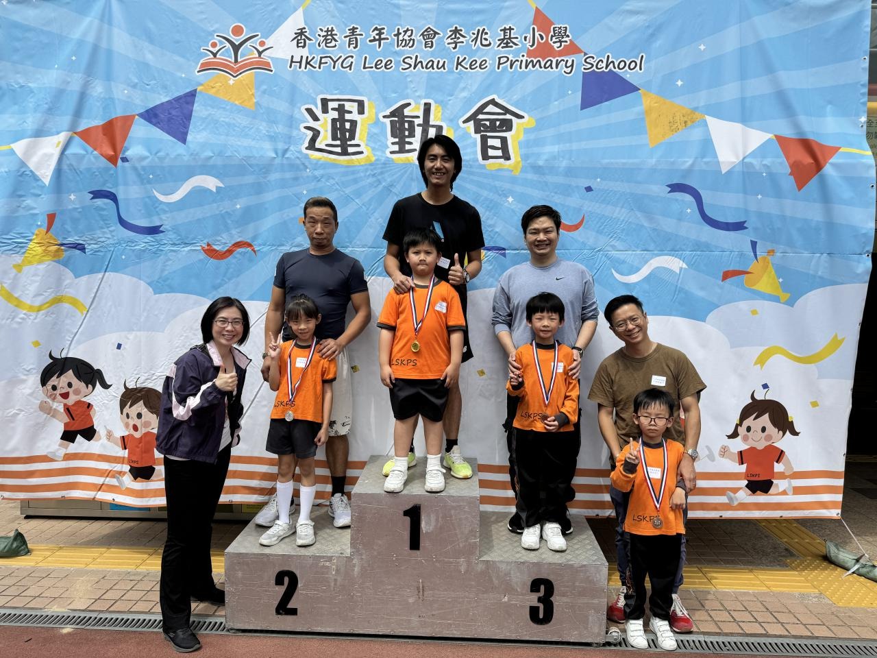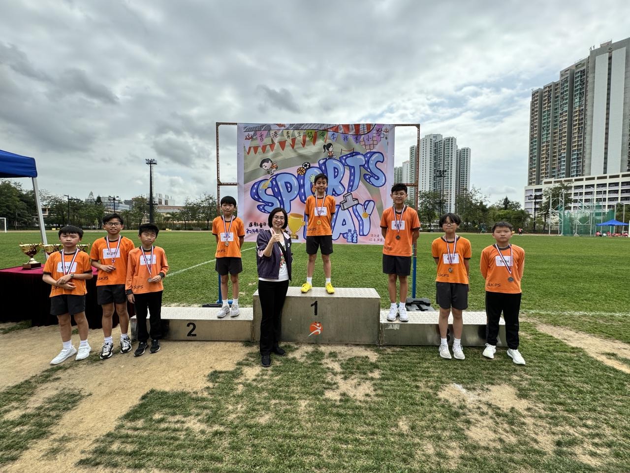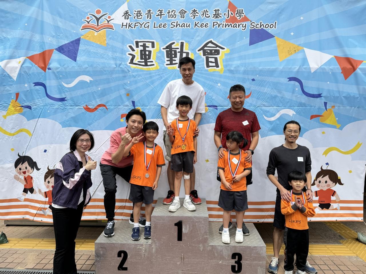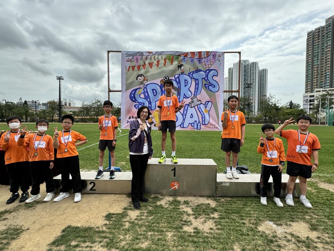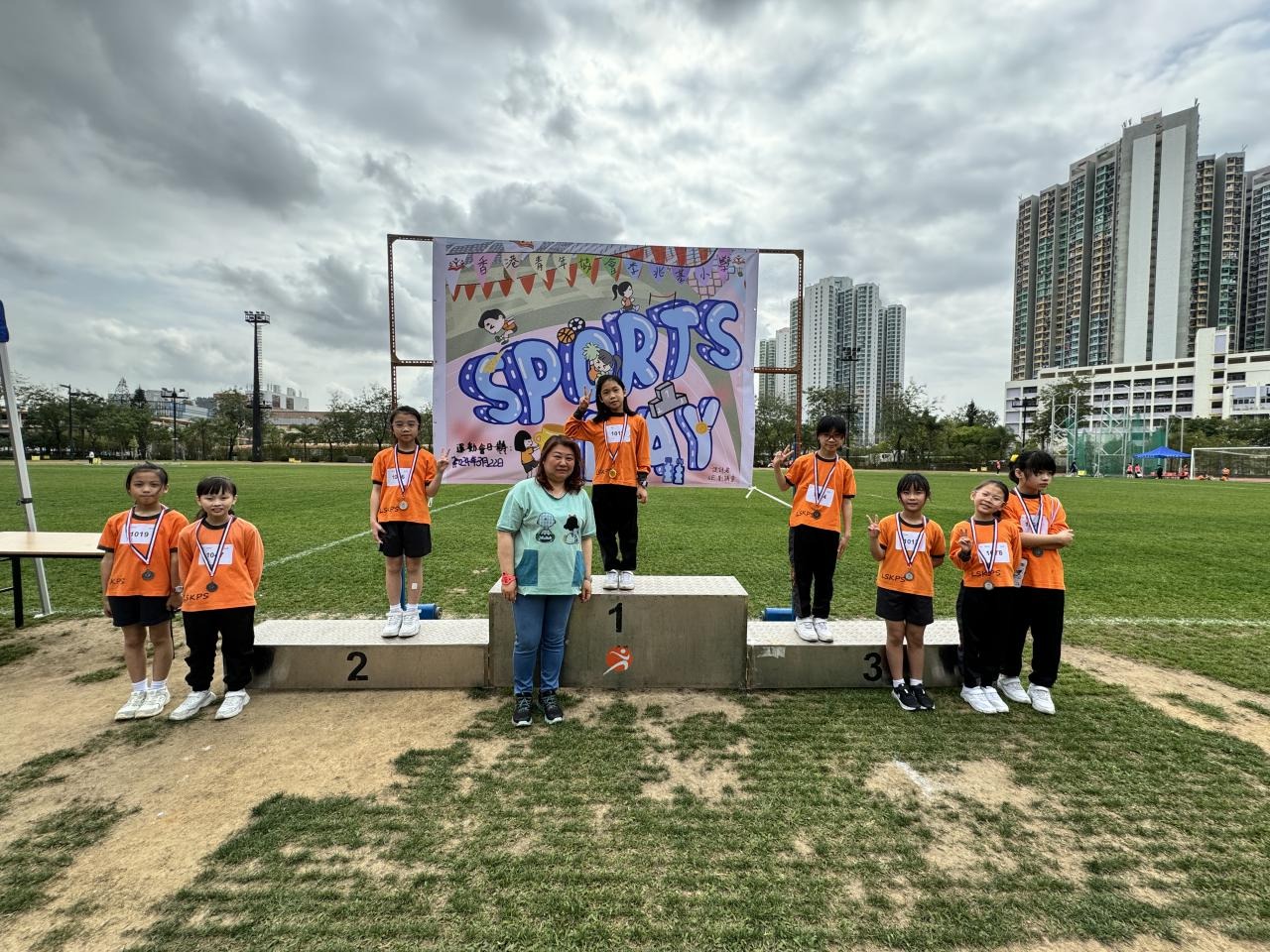 各班同學在看台上落力的打氣,令場外場內都充滿團結的氣氛﹗今次運動會的成功有賴不同單位的協助,包括本校的家長義工,