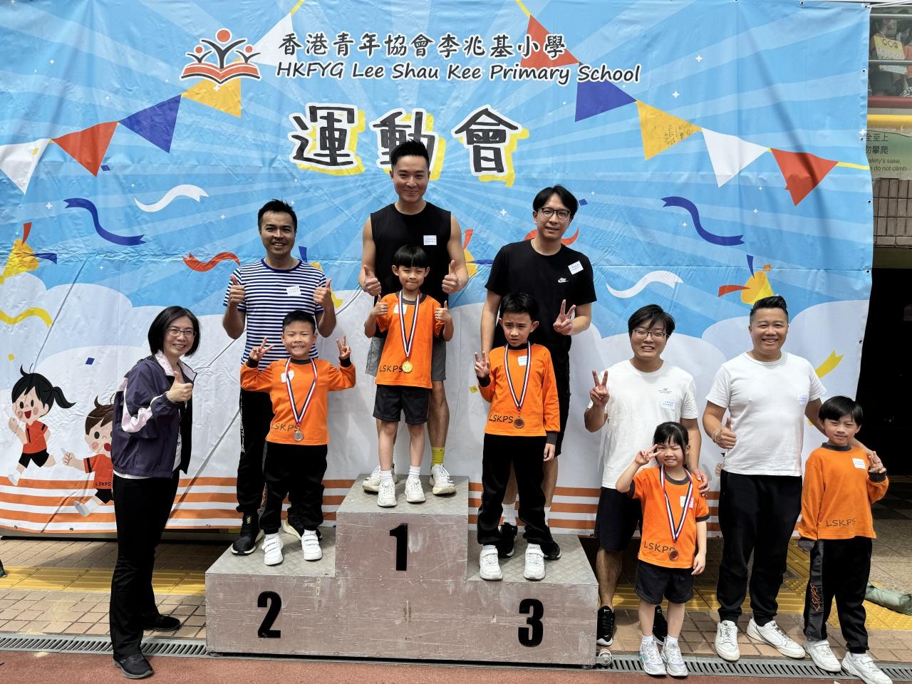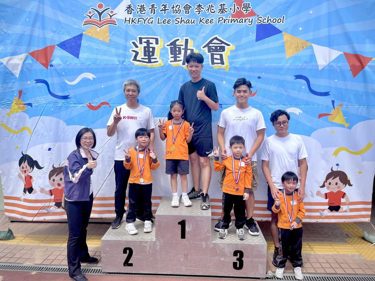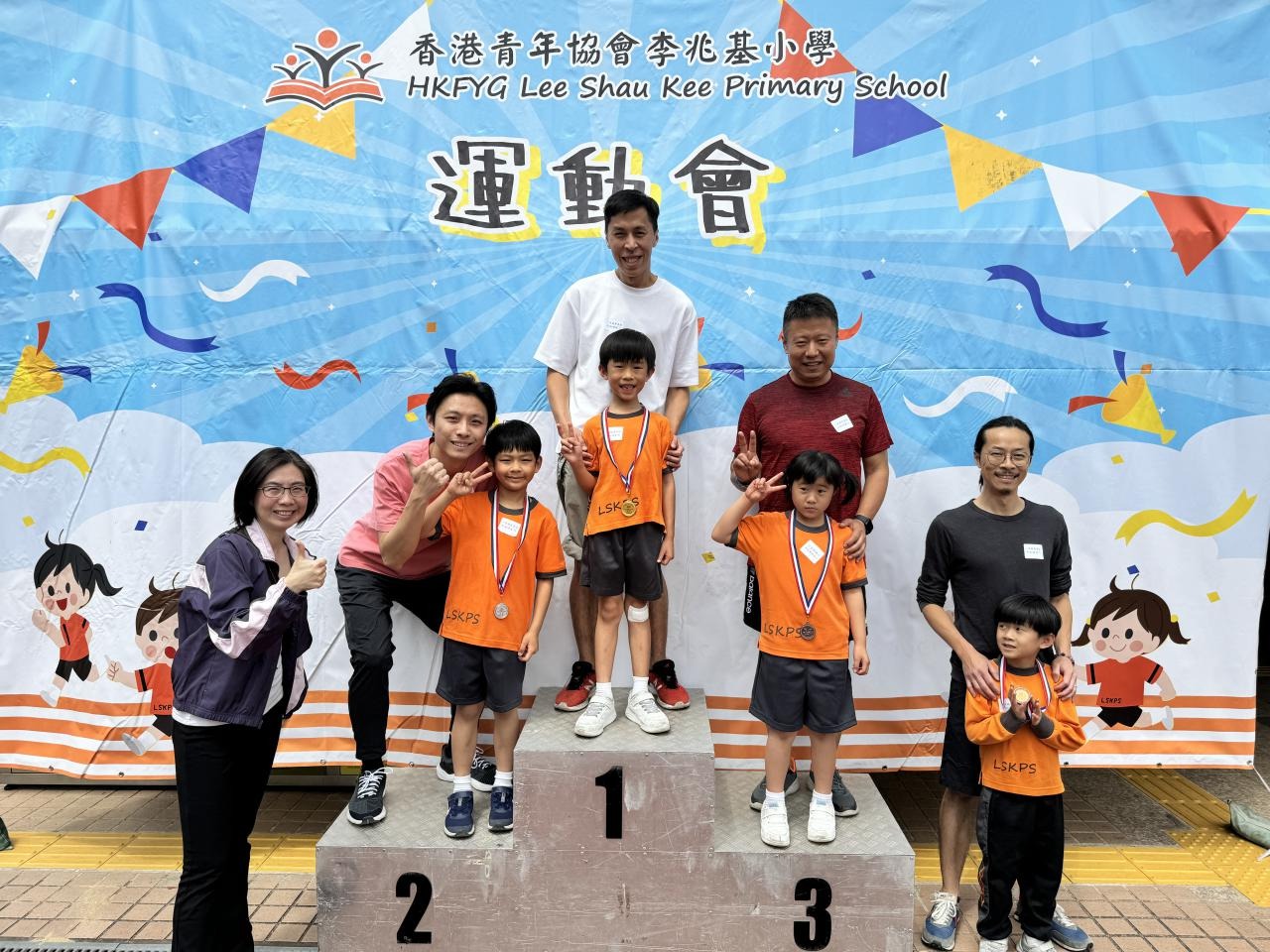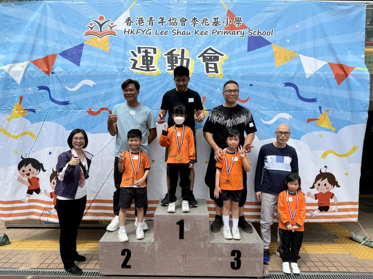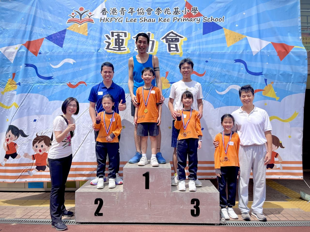 各班同學在看台上落力的打氣,令場外場內都充滿團結的氣氛﹗今次運動會的成功有賴不同單位的協助,包括本校的家長義工,