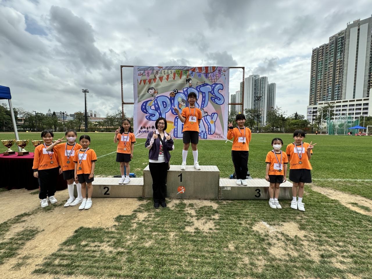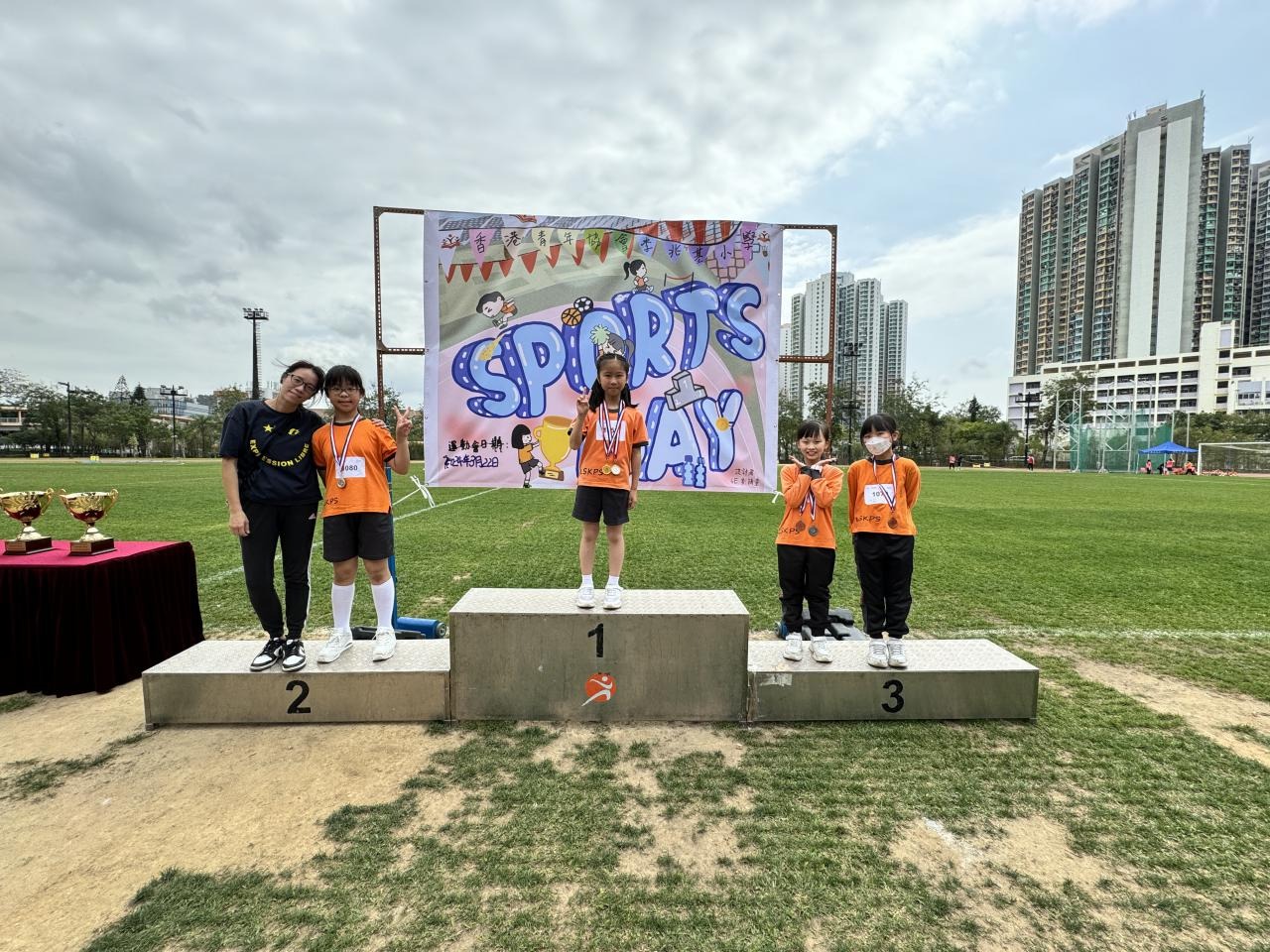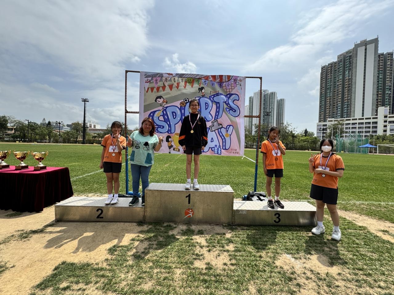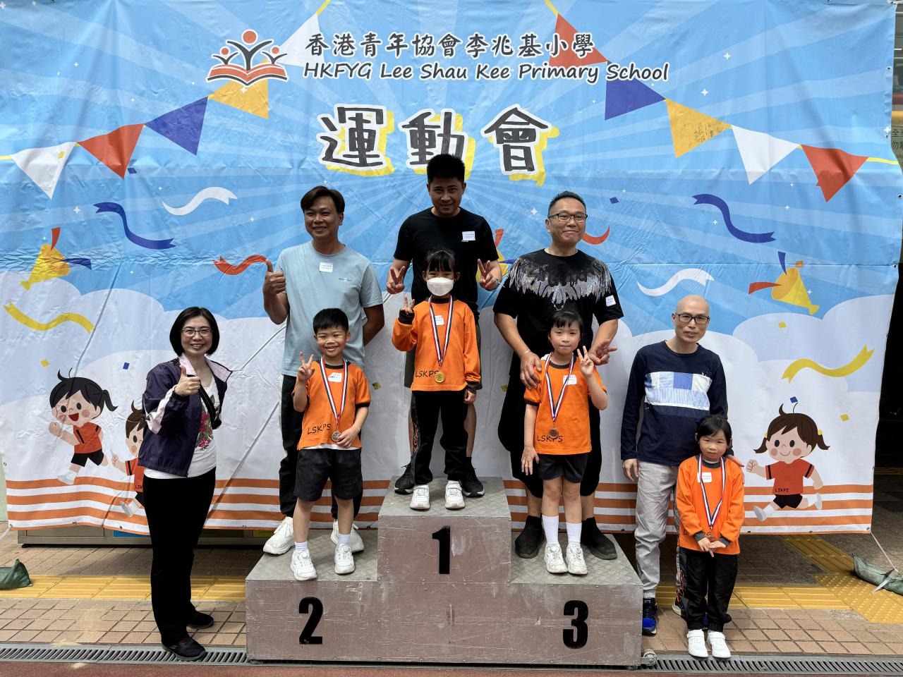 各班同學在看台上落力的打氣,令場外場內都充滿團結的氣氛﹗今次運動會的成功有賴不同單位的協助,包括本校的家長義工,