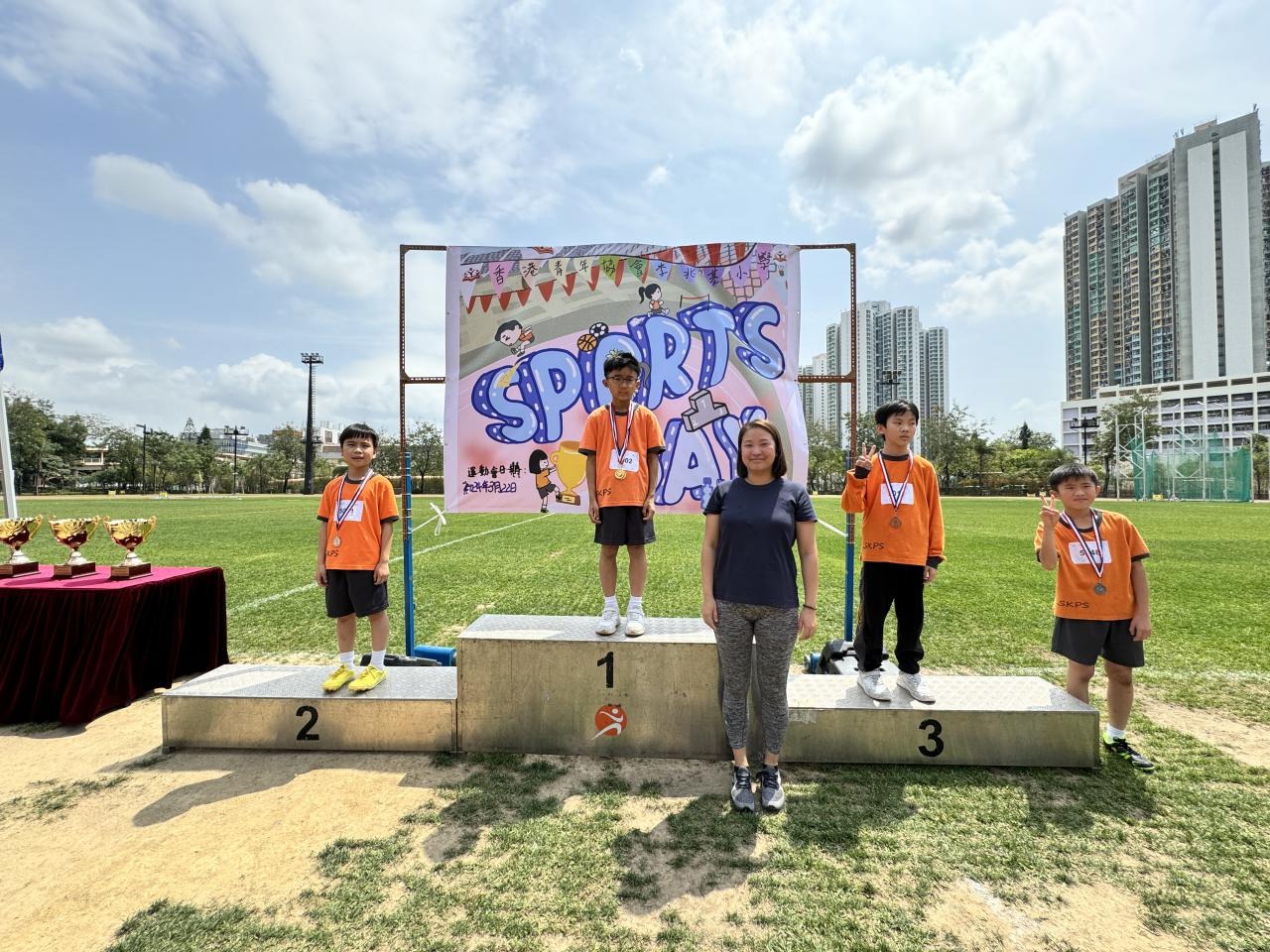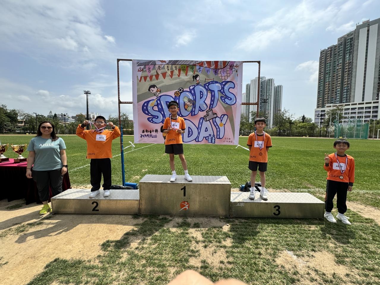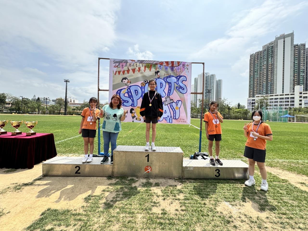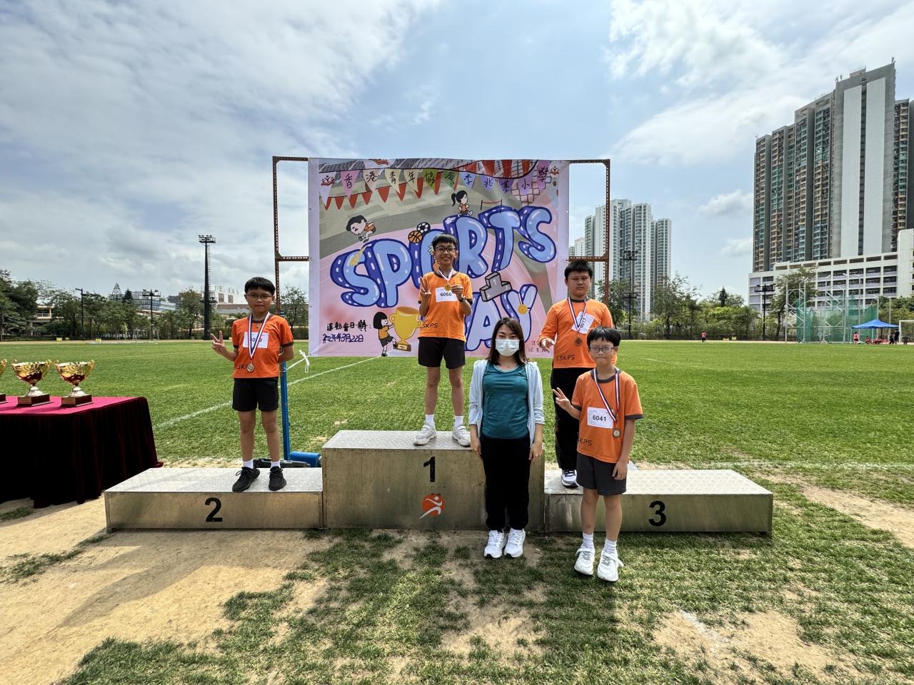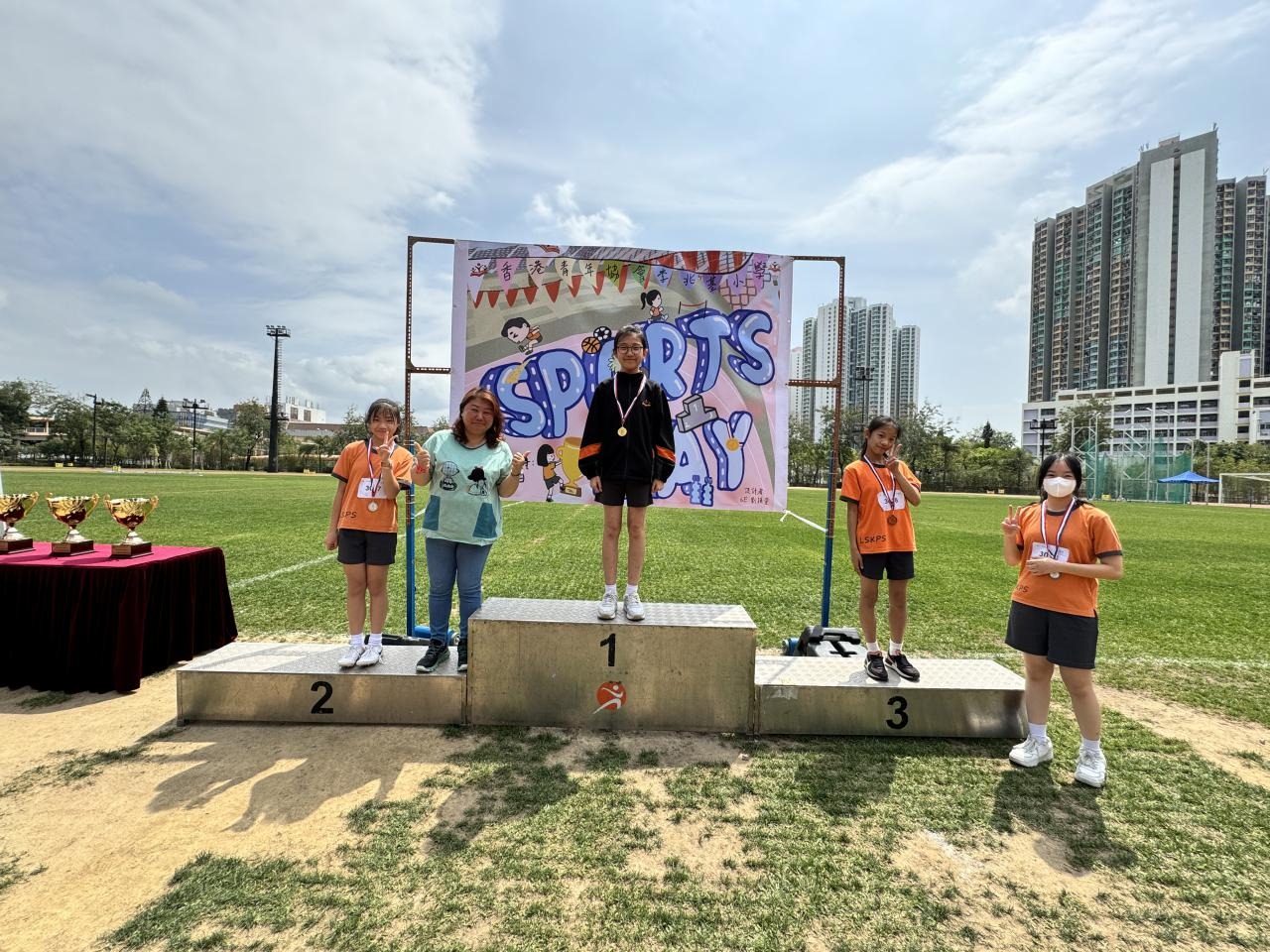 各班同學在看台上落力的打氣,令場外場內都充滿團結的氣氛﹗今次運動會的成功有賴不同單位的協助,包括本校的家長義工,