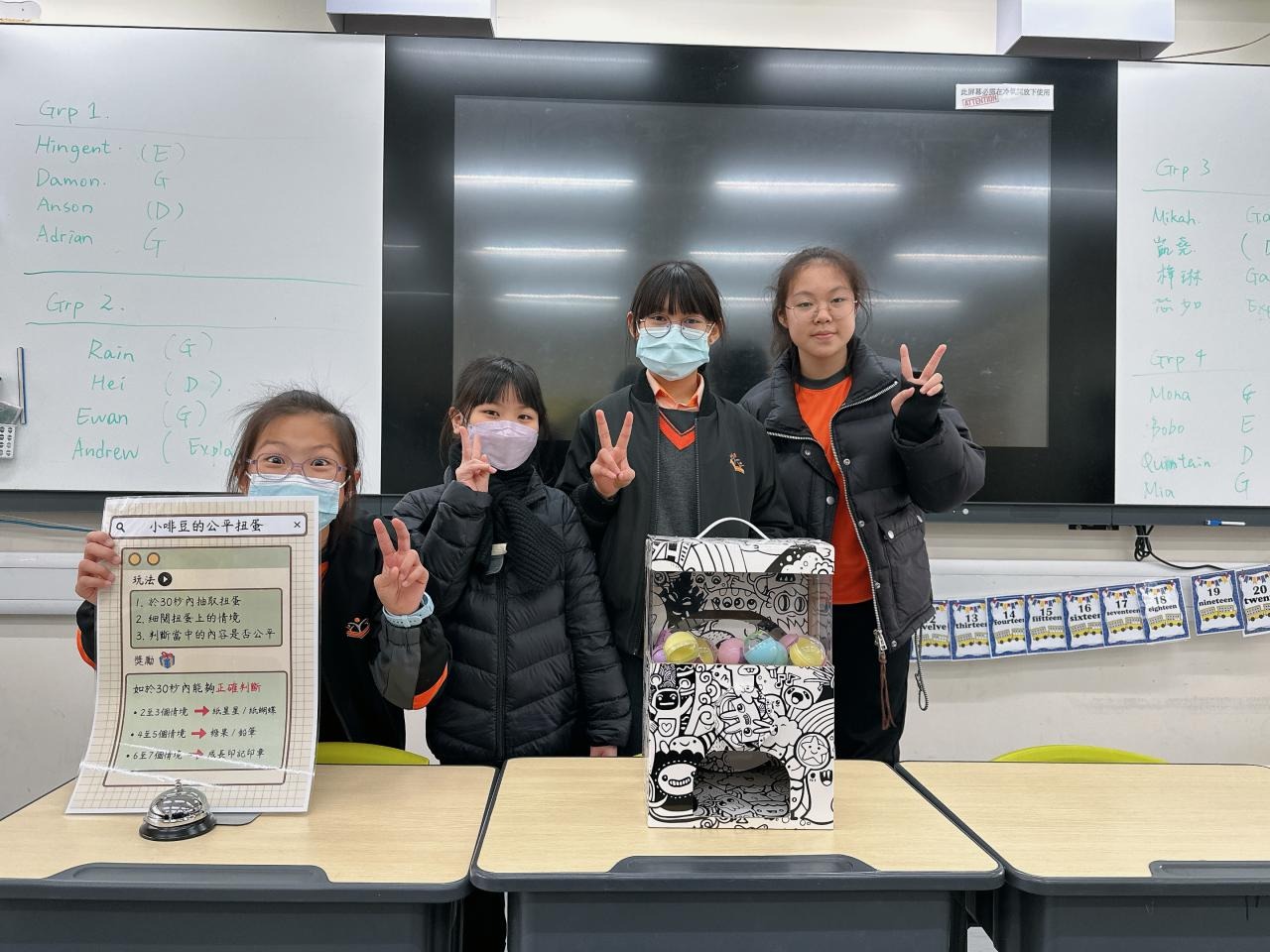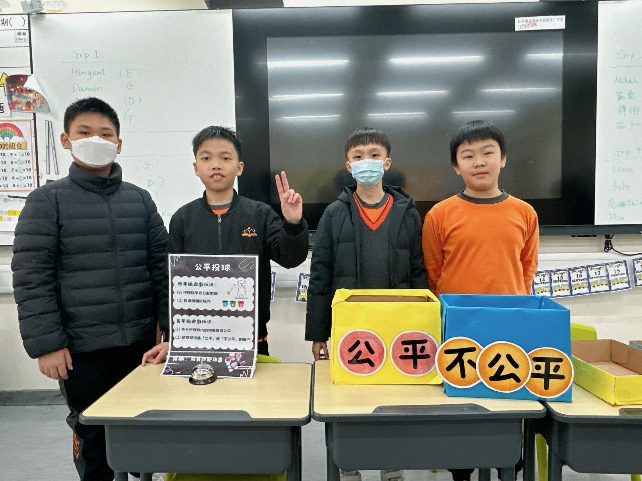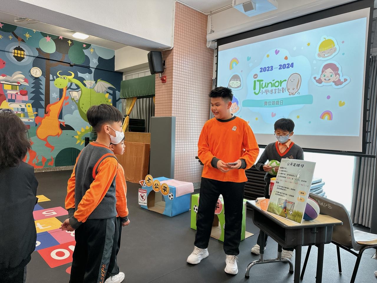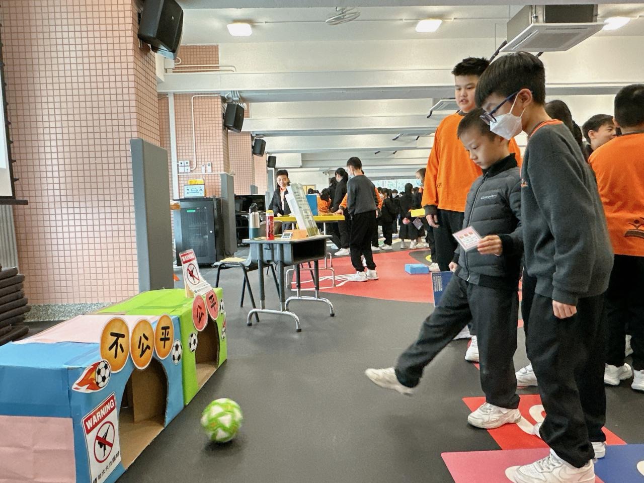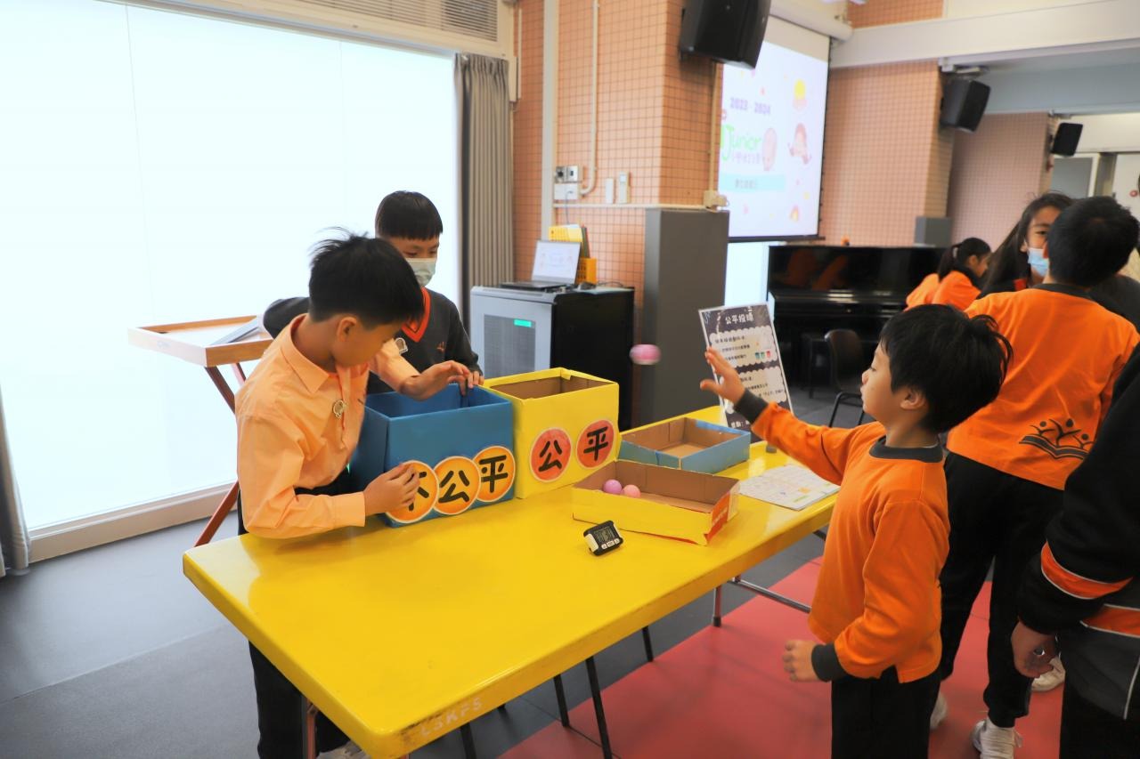 2024-01-26 本年度共招募了15位德育大使,協助於校內籌備攤位遊戲,讓校內其他同學一起透過富趣味性的方式認識不同的正向價值觀。 一眾德育大使除了於培訓中進行團隊訓練外,亦用心設計、測試及改良攤位遊戲,務求參與的同學在玩樂後亦有所得著。 攤位遊戲當日,廉政公署的「小啡豆」亦到校與同學見面和拍照。 而同學們都很投入參與由德育大使所設計的遊戲呢! 攤位一:公平投球 攤位二:齊來擊退不公平行為水瓶 攤位三:公平足球仔 攤位四:小啡豆的公平扭蛋 攤位五:公平釣魚 同學們都滿載而歸呢! 學校活動