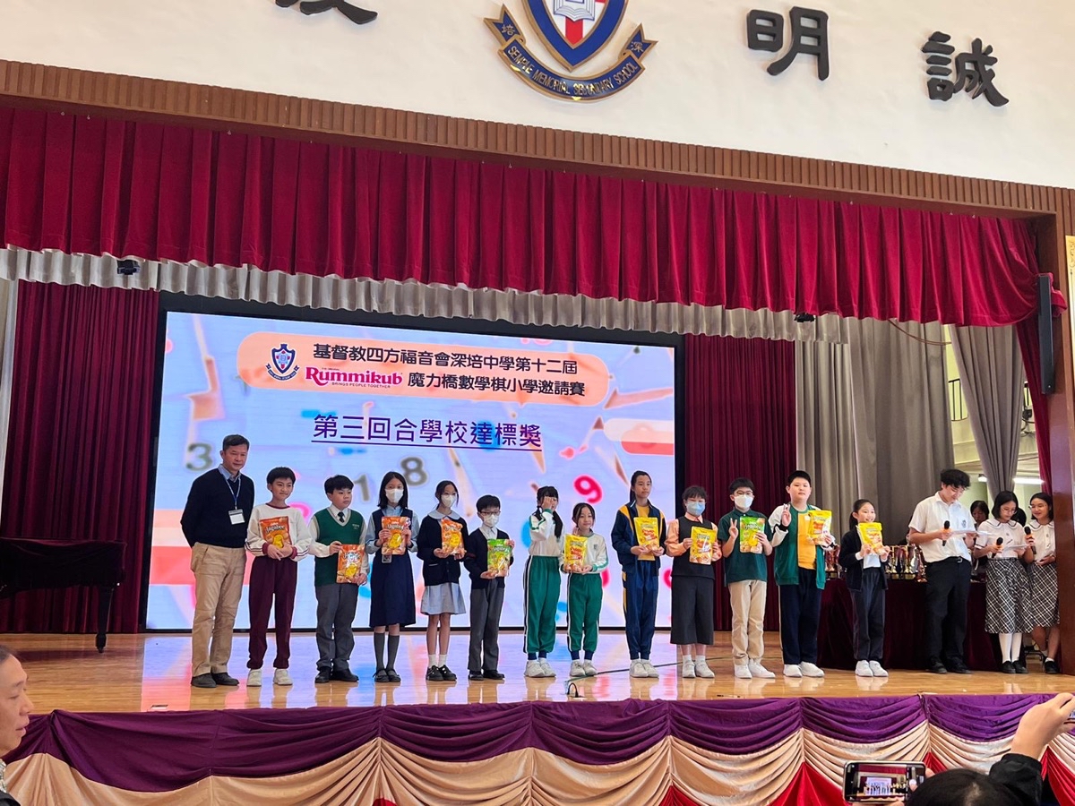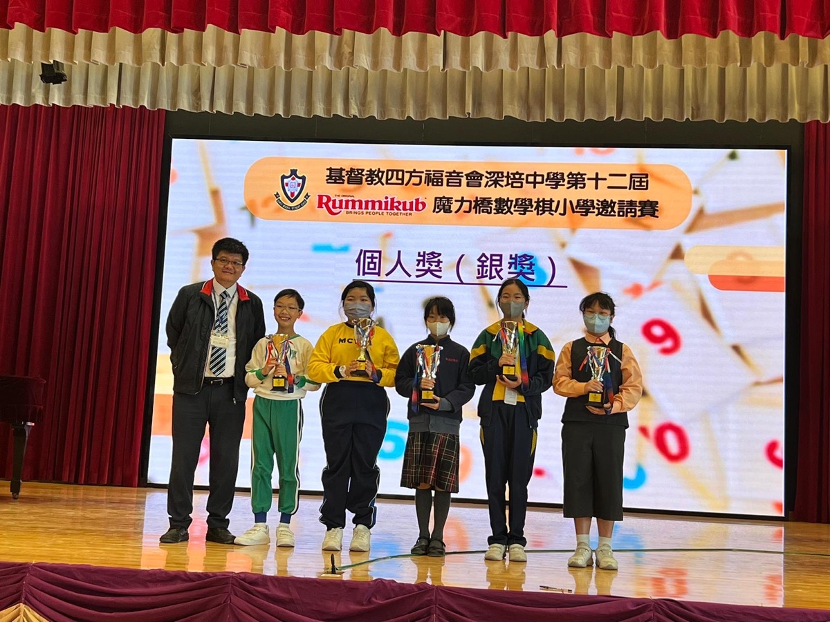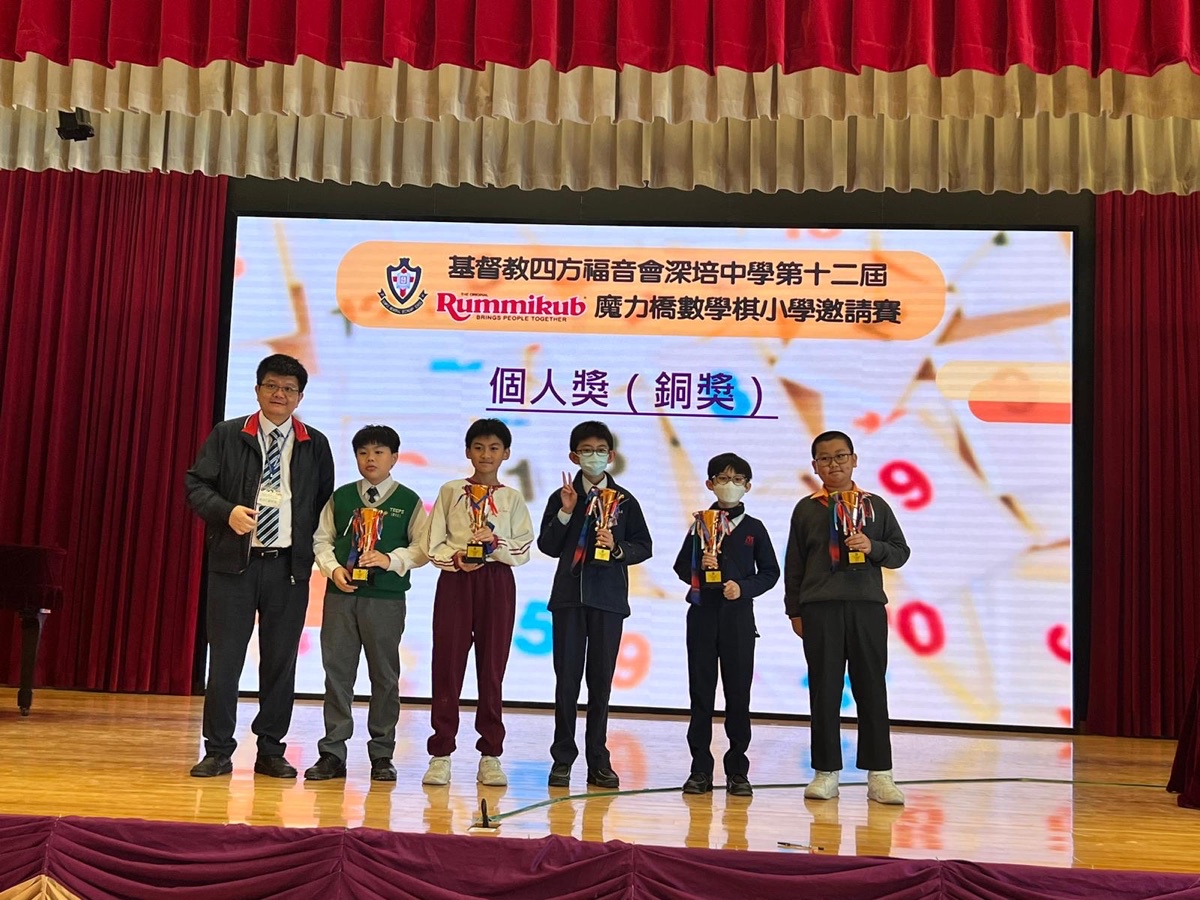2023-11-18 由基督教四方福音會深培中學主辦本校 5C 賴彥橦 分別 勇奪 銀獎 (個人獎) 及 優秀表現獎 6B 雷諾謙 獲 銅獎 (個人獎) 5C 賴彥橦 6B 雷諾謙 6C 楊達也 6E黃俊杰 獲 第三回合學校達標獎恭喜各位同學 ,繼續努力,再創佳績! 銀獎 (個人獎) 銅獎 (個人獎) 第三回合學校達標獎 獎項分享