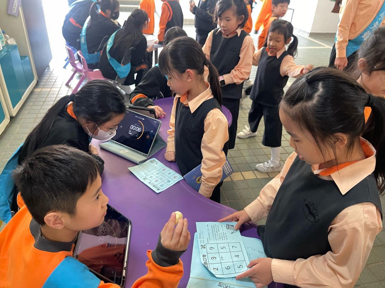 2025-04-02 為加強小二學生對乘法口訣的熟練度,數學小先鋒於小息時間進行了「乘法急口令」活動。活動中,每位參加者都積極挑戰自己,在限定時間內背誦乘法口訣,展現了他們的學習成果,現場氣氛熱烈且積極,更引來其他高年級的學生來挑戰自我! 學校活動