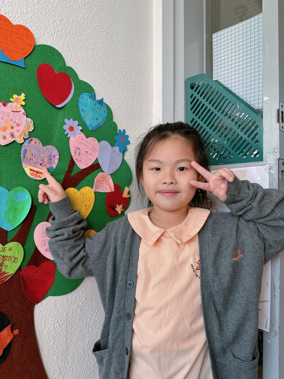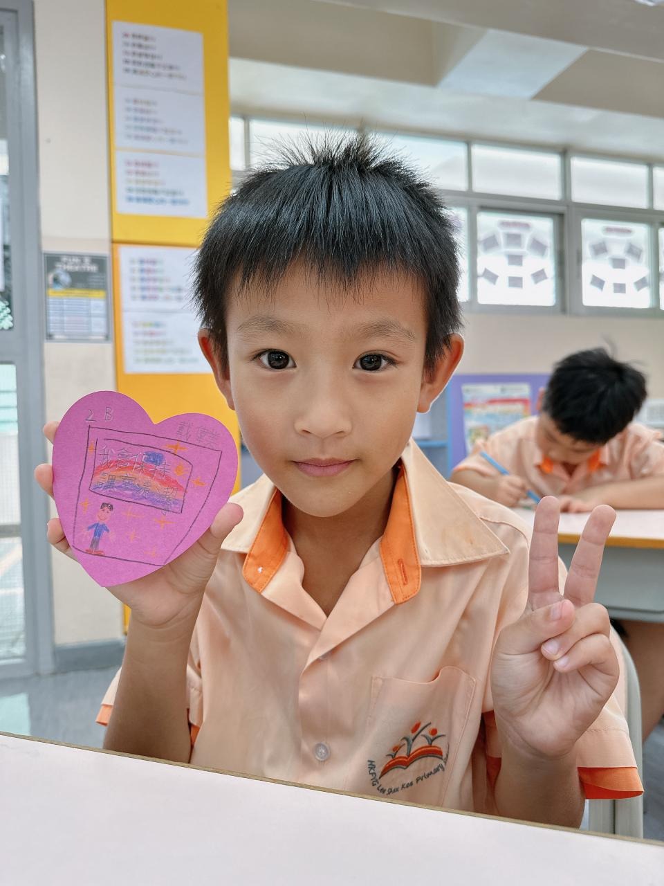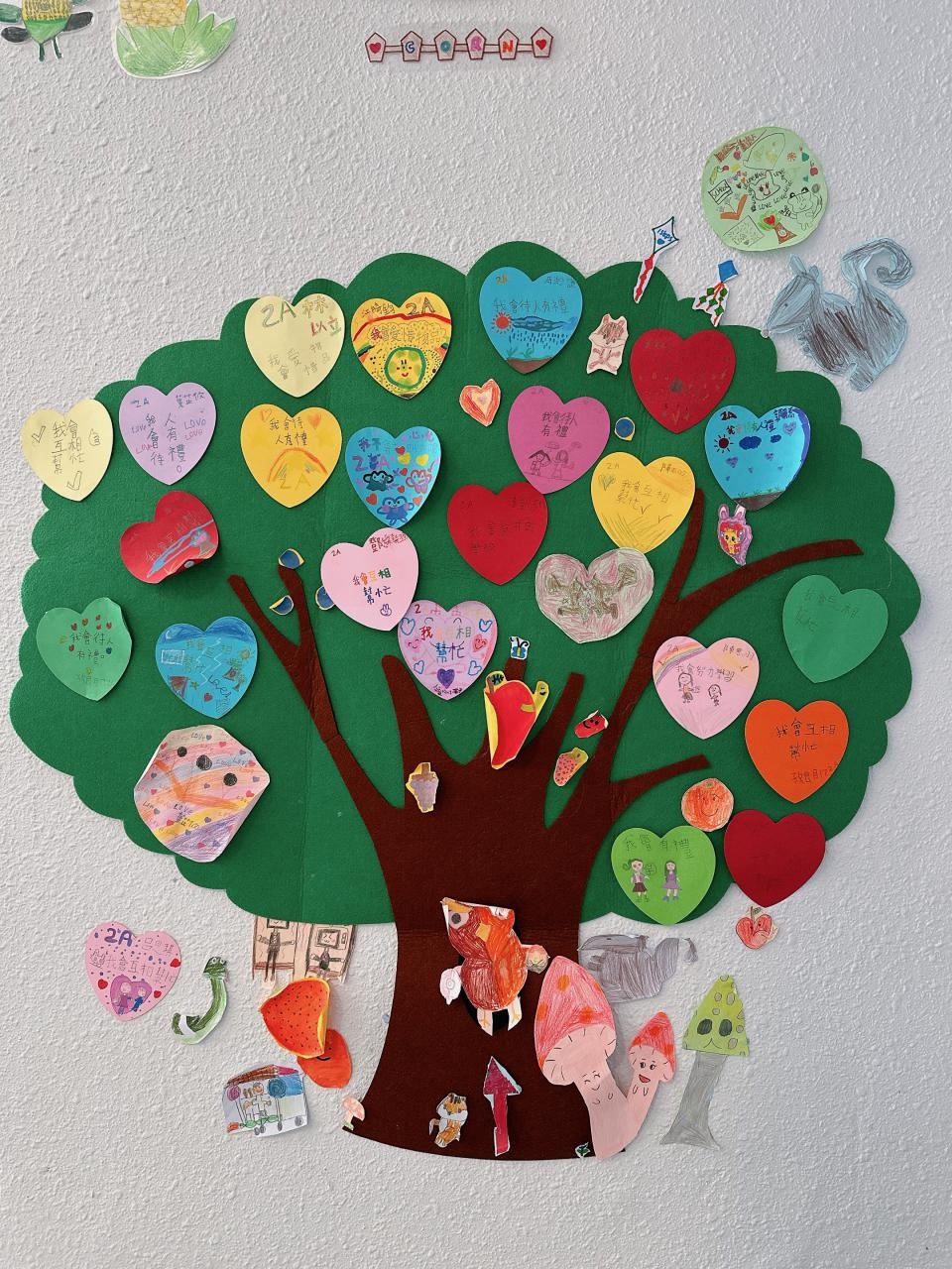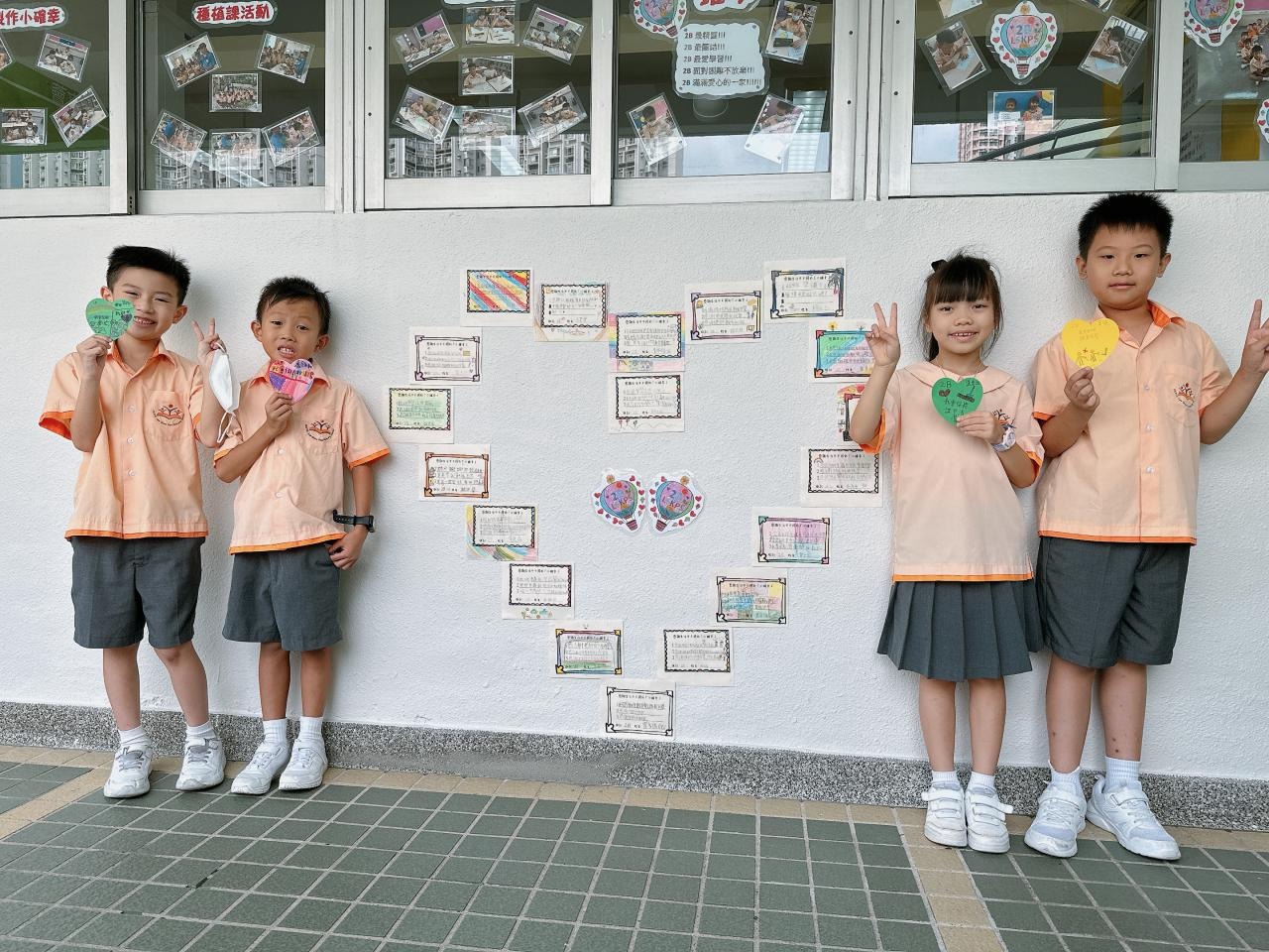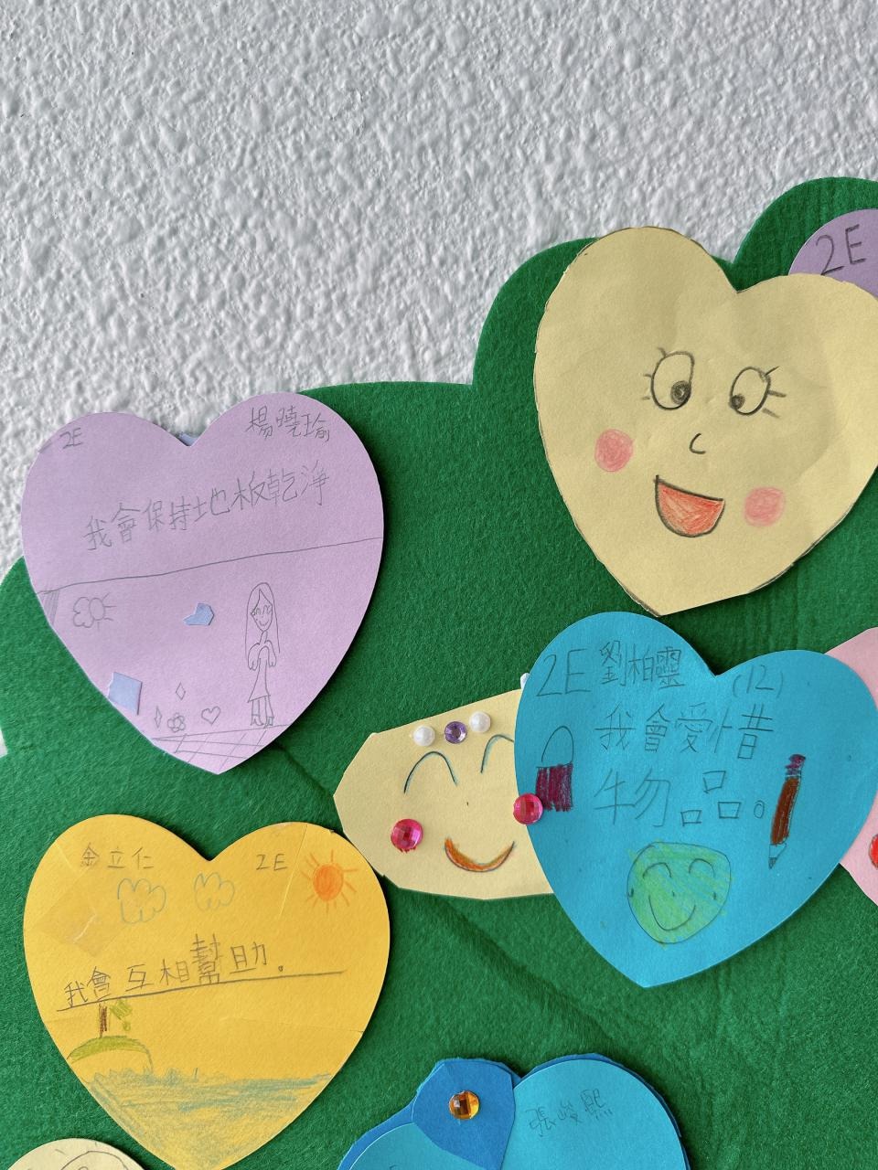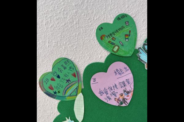 他們緊記著「要做一件令世界更美好的事」,於是便決定為自己班、學校付出一點點,一同製作「愛心樹」,記下自己將會如何令這個「家」變得更美好。