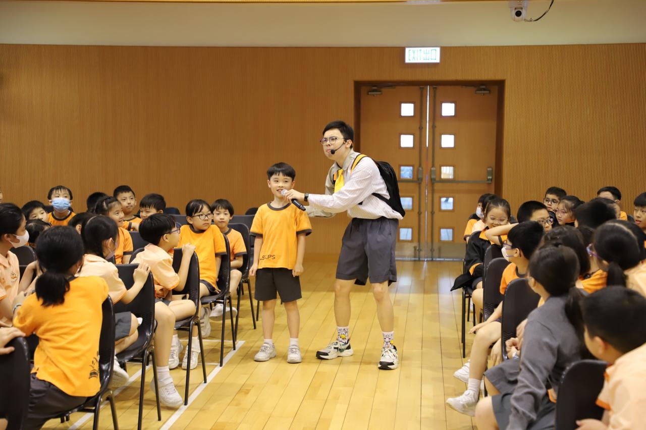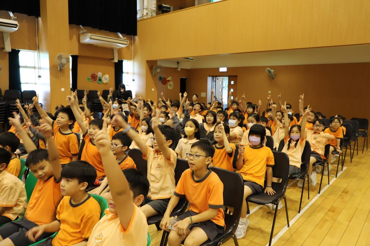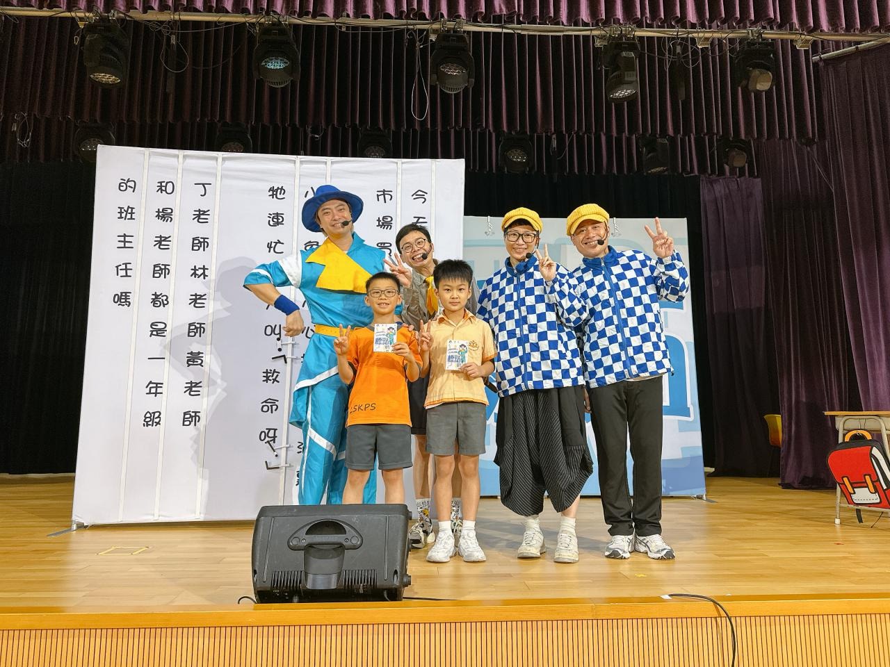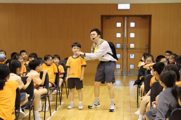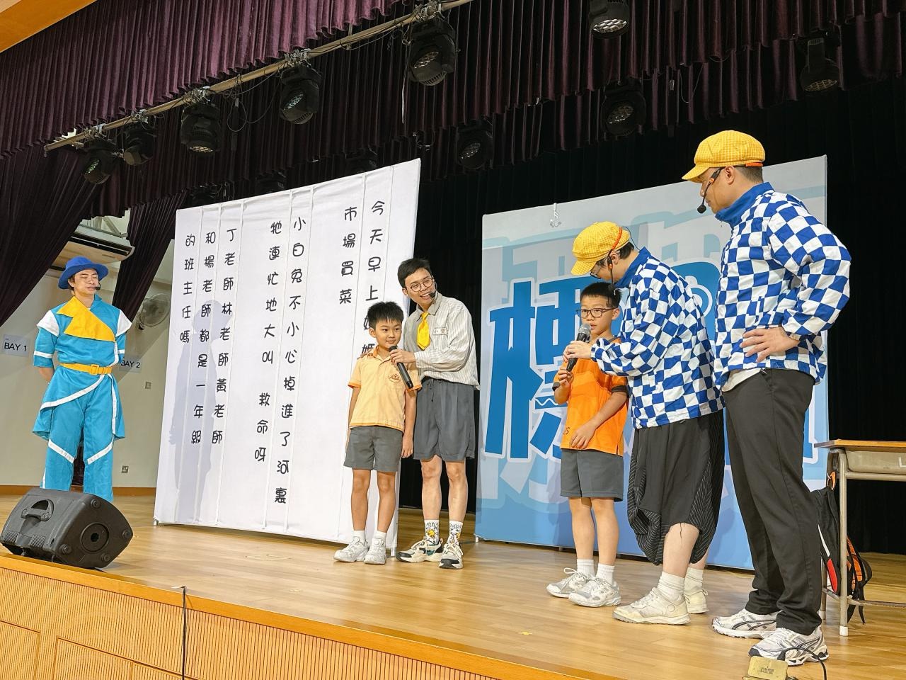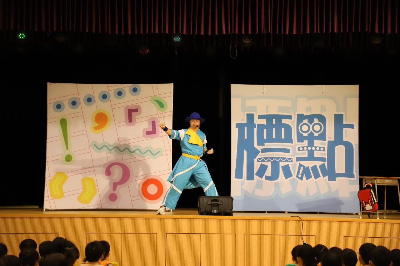 2025-05-16 一至三年級同學早前跟著「標點戰士」展開了一場超乎想像的語文冒險!夢飛行合家歡劇團以有趣的故事情節和生動的表演方式,向學生展示如何正確使用標點符號。 當中更設有即席互動環節,演員們邀請同學們化身「標點戰士」,一同拆解語文難題,在文章中適當的位置加上標點——原來學標點可以這麼好玩! 學校活動