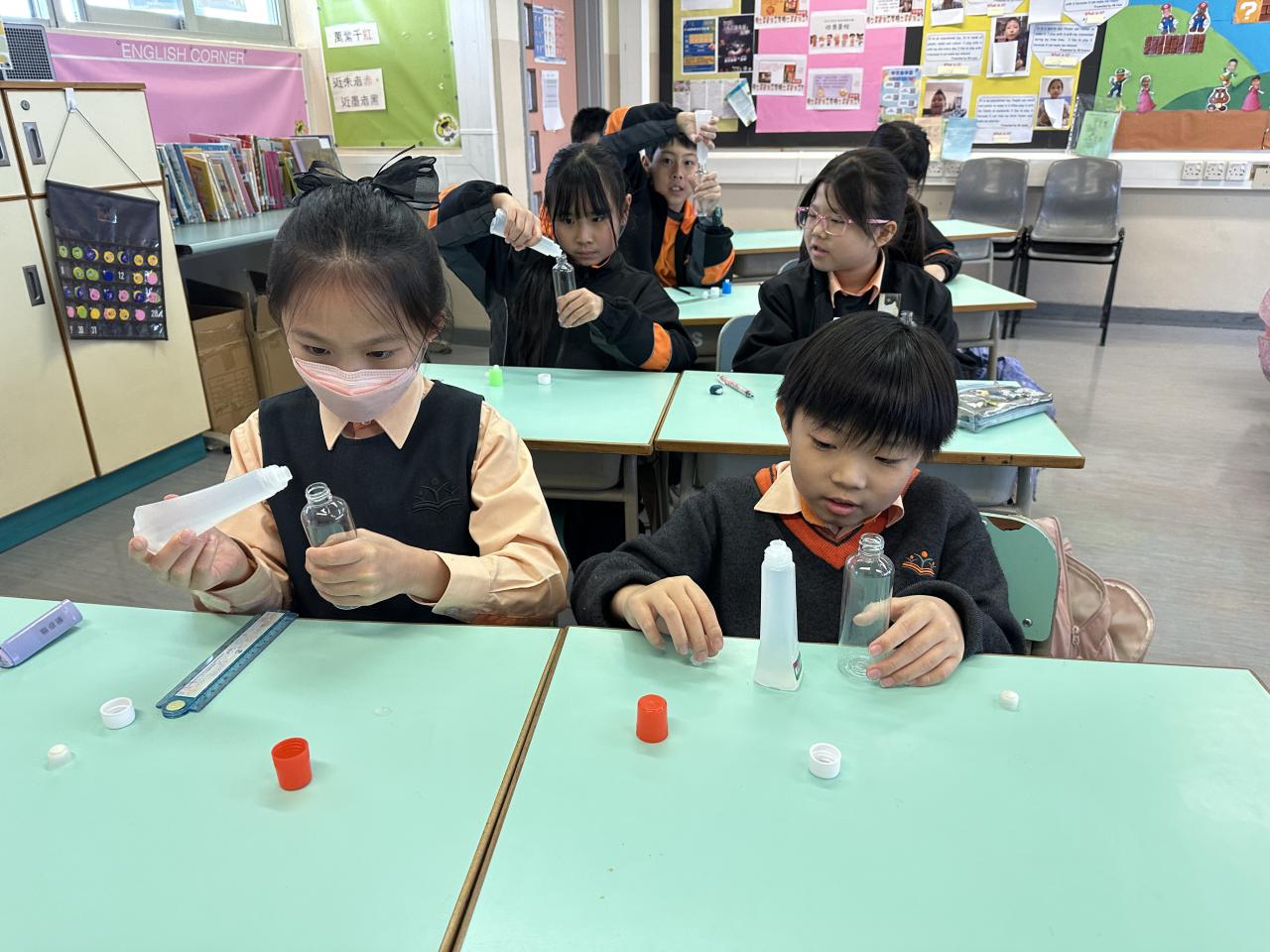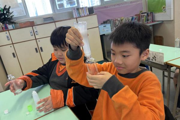2025-03-28 「搖一搖,煩惱全消散!」四年級的同學們在班主任的帶領下,化身小小情緒魔法師,動手製作獨一無二的舒壓瓶!從選擇繽紛的亮片、彩色砂粒,到調配黏稠度剛好的液體,大家專注地一步步完成自己的「心情穩定劑」,學習在壓力來臨時,用親手做的舒壓瓶找回平靜。 學校活動
