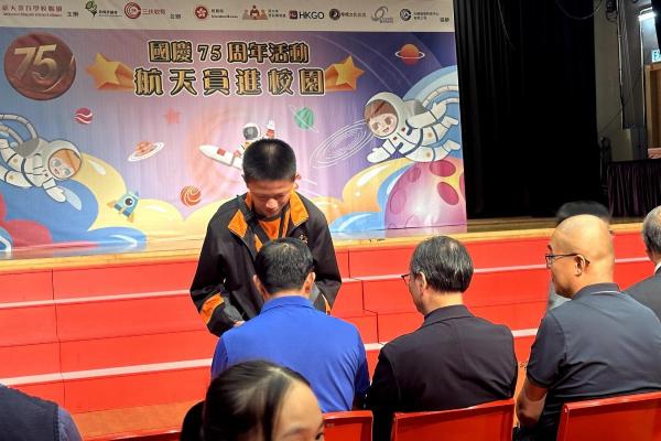 本校共4名學生參加了十月廿二日舉行的「國慶75周年- 航天園進校園」活動,同學們除了能親身向航天員陳全提問有關航天科技的知識,更能與他合照,確是一次很難能可貴的學習經歷。