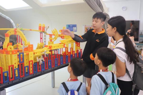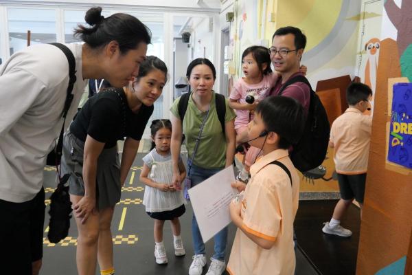 活動中,我校學生擔任小導遊及服務生,以自信的姿態向來賓介紹校園設施及分享學習點滴,充分展現學生的領導才能與活力。家長與孩子們透過「親子體驗課」、「校園遊蹤」、「互動展覽」、「小一模擬課」等活動,親身感受學校獨特的學習氛圍。禮堂的入學講座更是座無虛席,校長分享的辦學理念與課程特色更獲熱烈迴響。