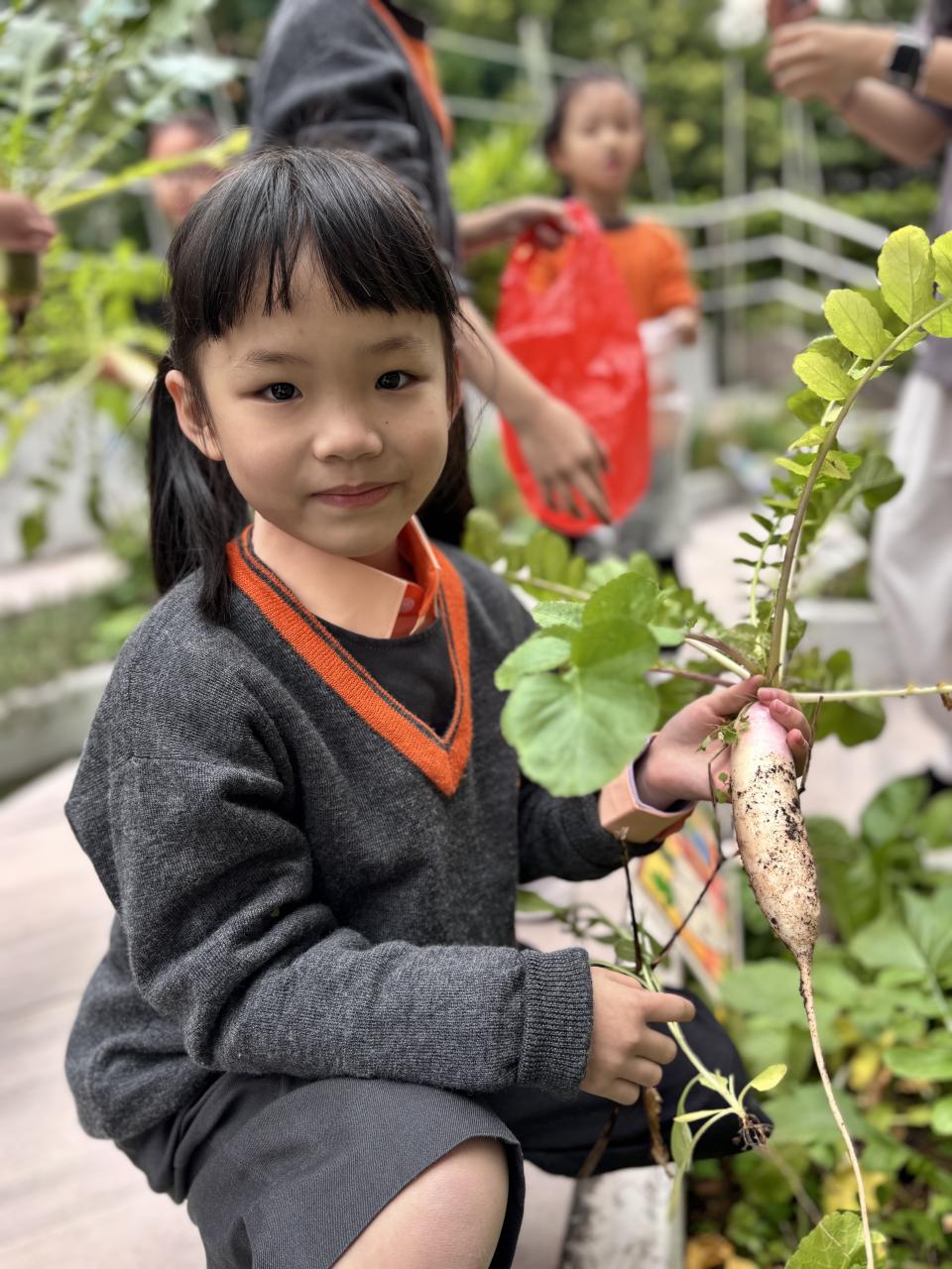 我們於學期年初在「生命之園」播下的希望種子,終於迎來豐碩的成果!同學們一起捲起衣袖,親手採摘一顆顆飽滿紅潤的番茄、拔起雪白紮實的白蘿蔔,指尖沾滿泥土的芬芳,臉上洋溢收穫的喜悅。從播種、澆灌到守護成長,這片園地不僅孕育出鮮甜的蔬果,更見證了我們對生命的用心與耐心。採下的每一份成果,都是大自然最樸實的禮物,也蘊藏著勞動的甘甜呢!