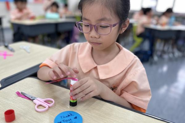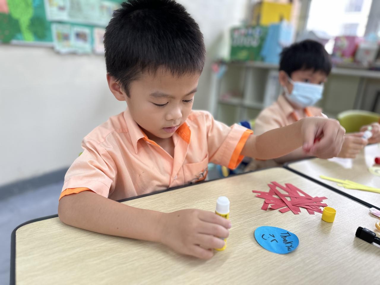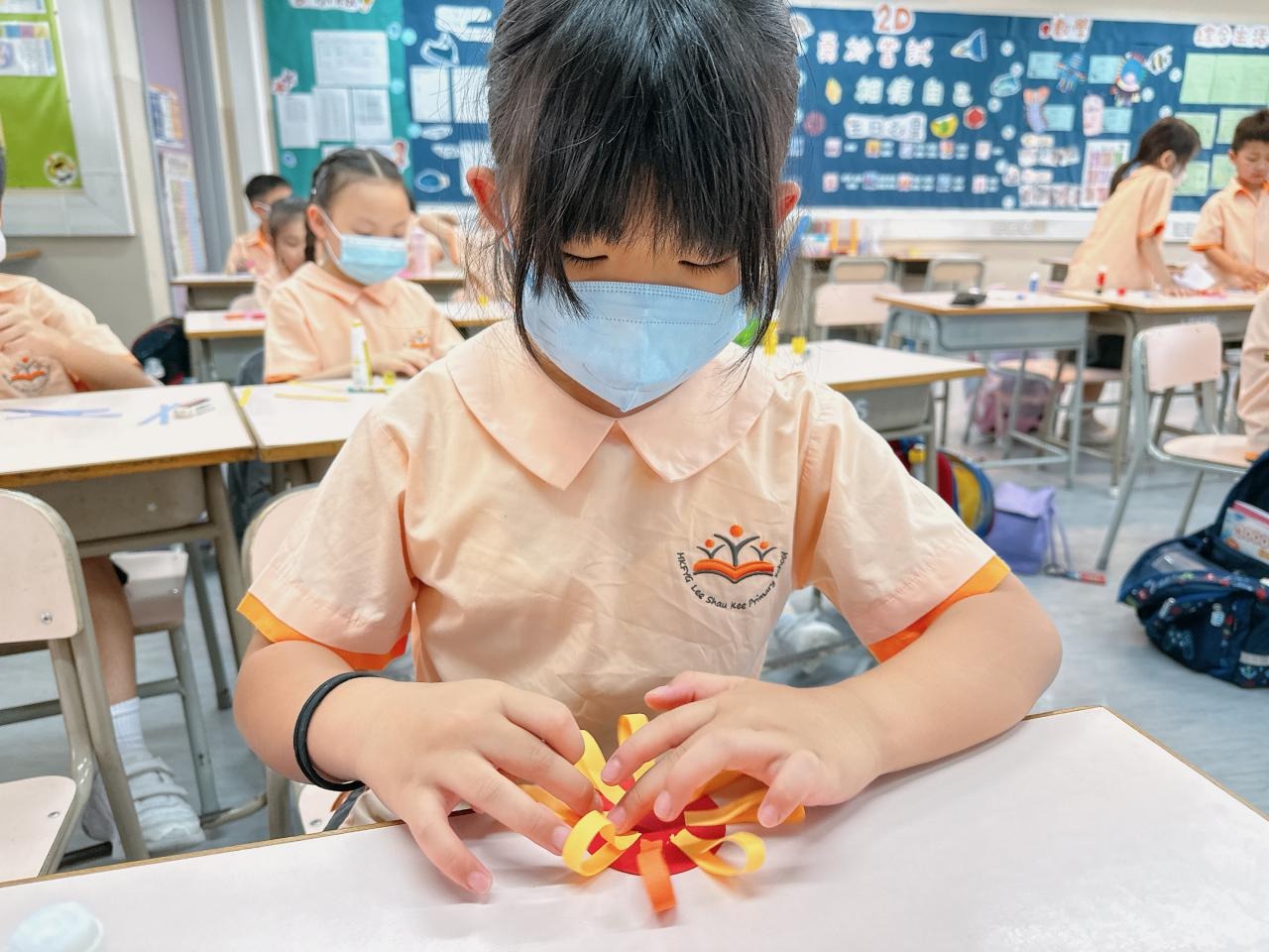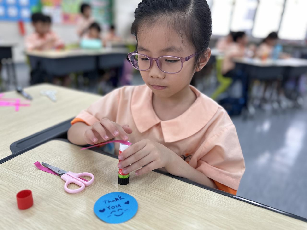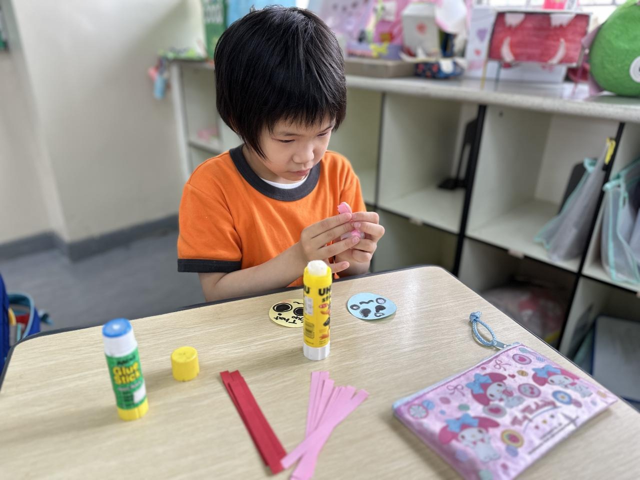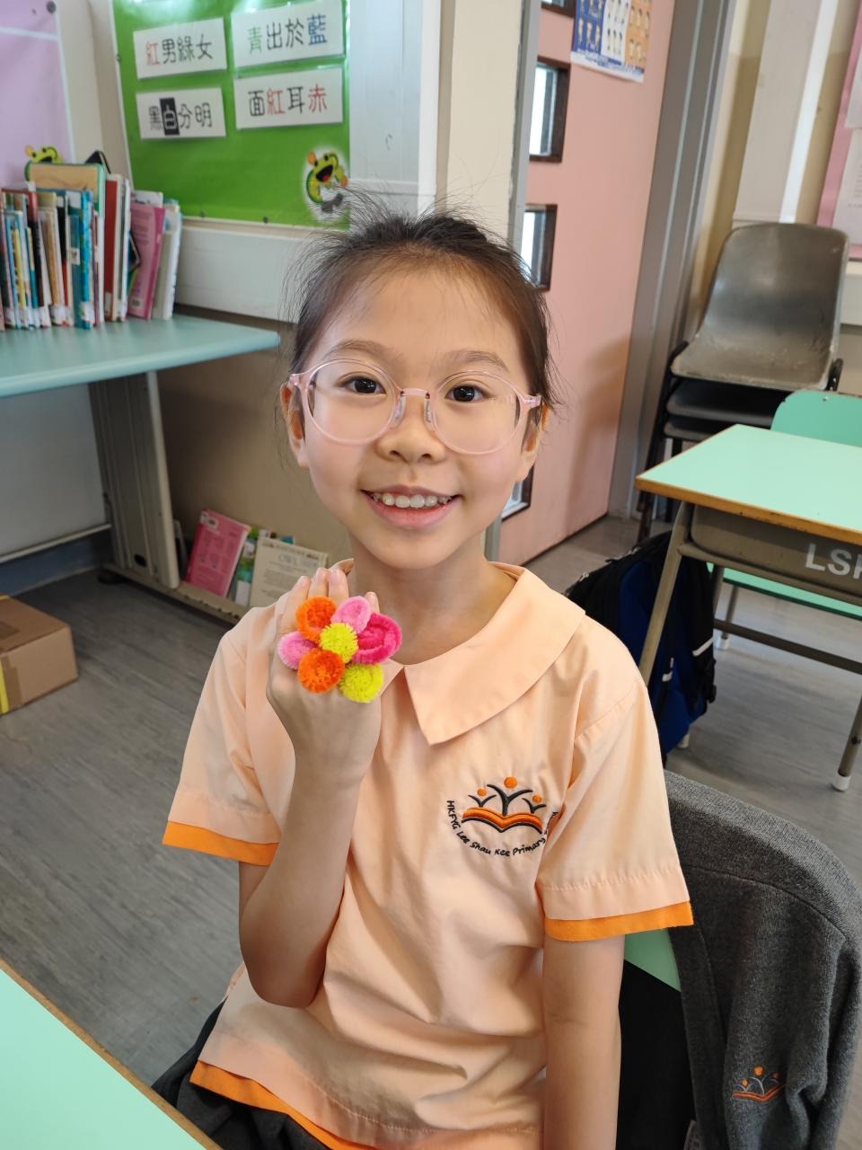 在班主任的指導下,同學們一起製作手工花及絨毛花戒指。看看我們多認真,多仔細!