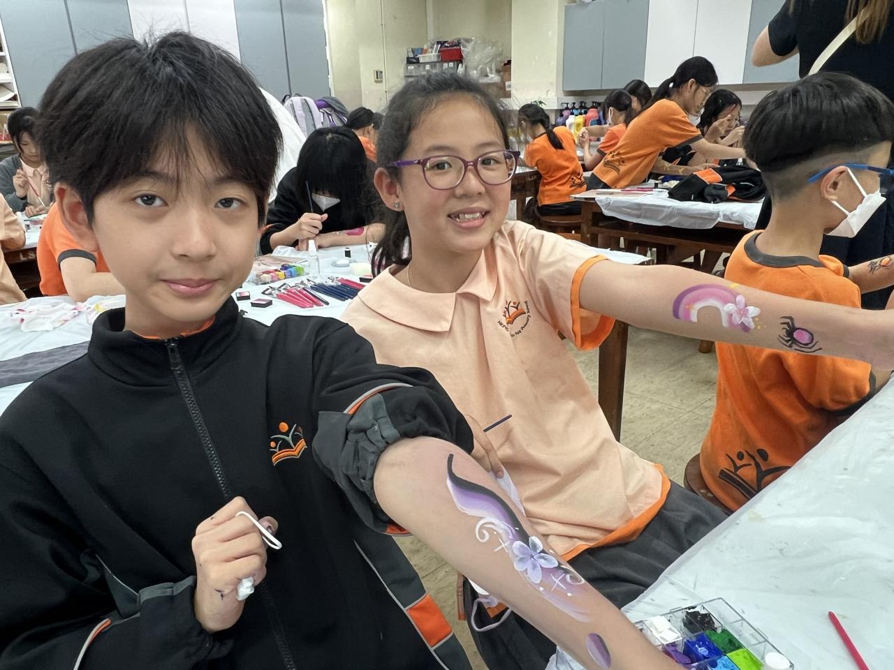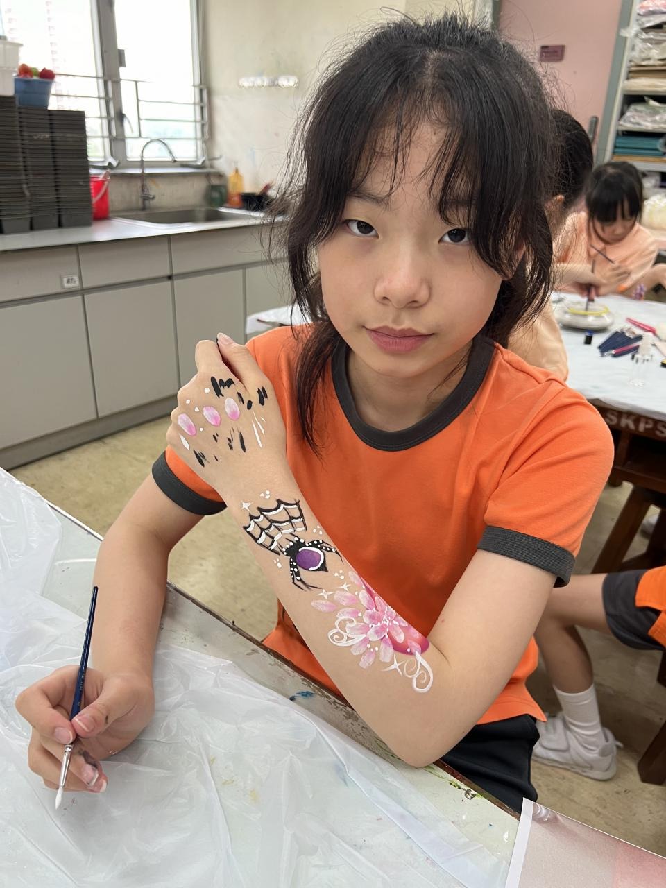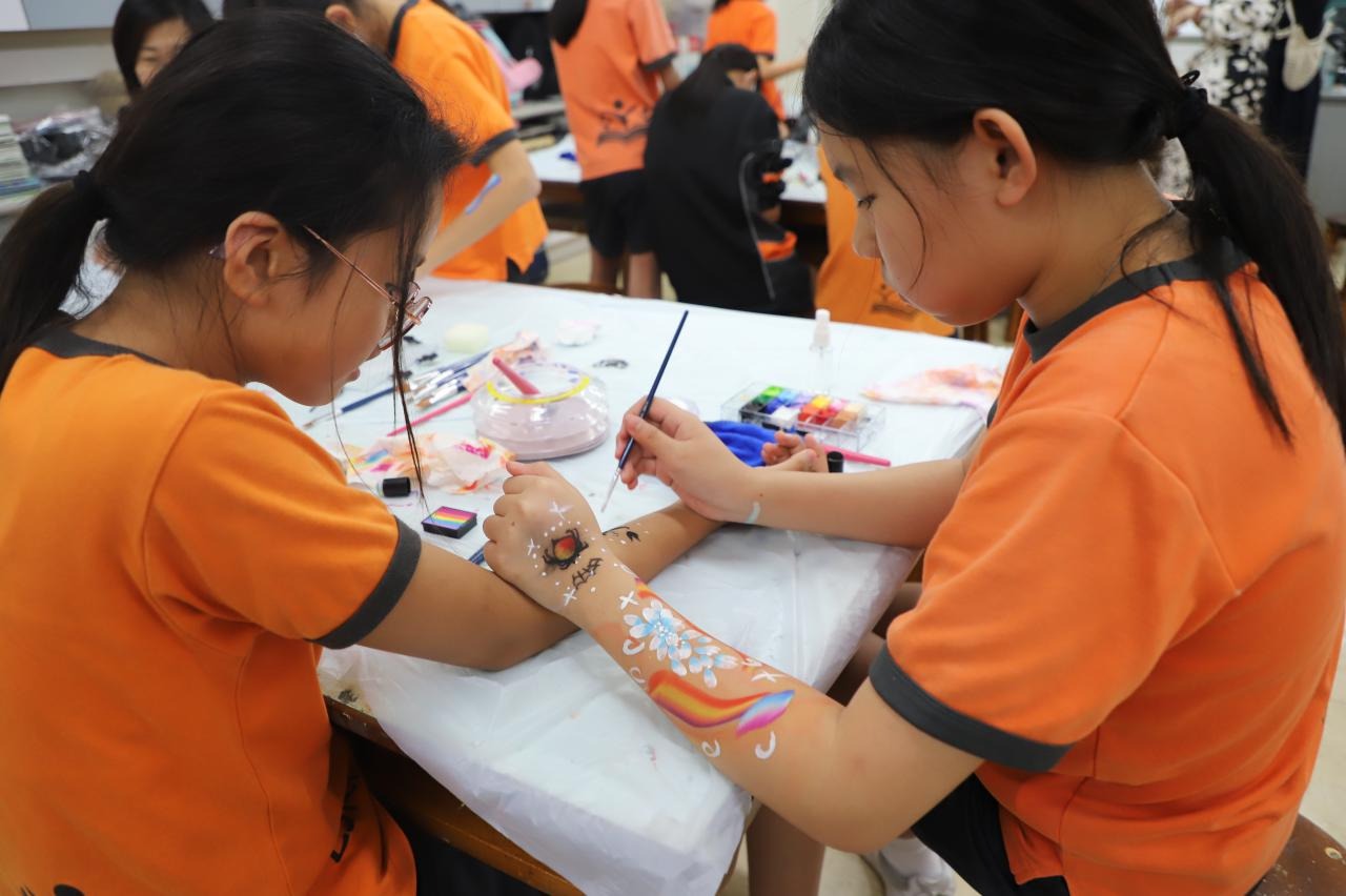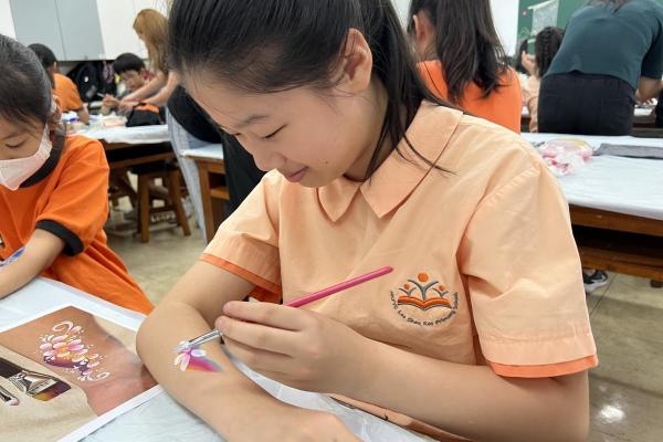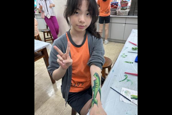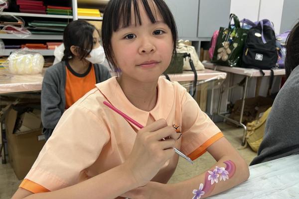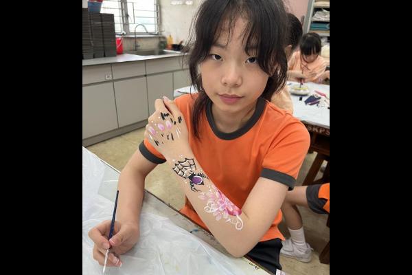 2024-05-20 本校專才班學生在5月20日及5月27日參加了「臉部彩繪工作坊」,導師介紹了彩繪的工具和講解彩繪的技巧,之後同學們在自己的手上進行彩繪練習,畫了一朵朵美麗的花朵、蜘蛛及鯊魚等等的花紋,他們生對這活動深感興趣,十分投入課堂活動,體驗了彩繪的樂趣。 學校活動