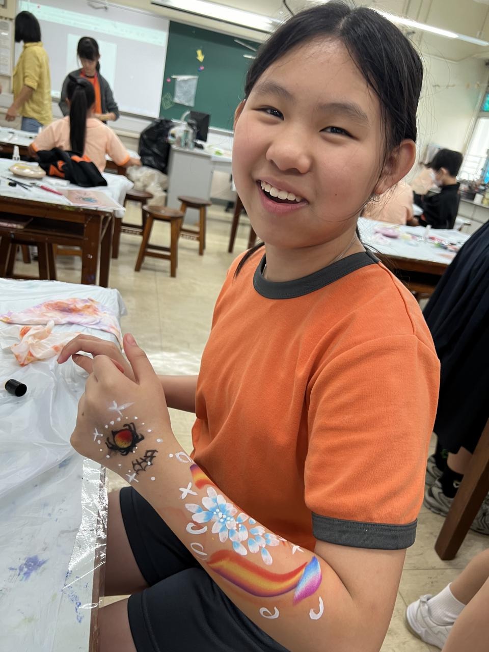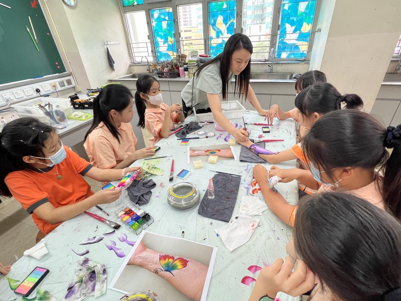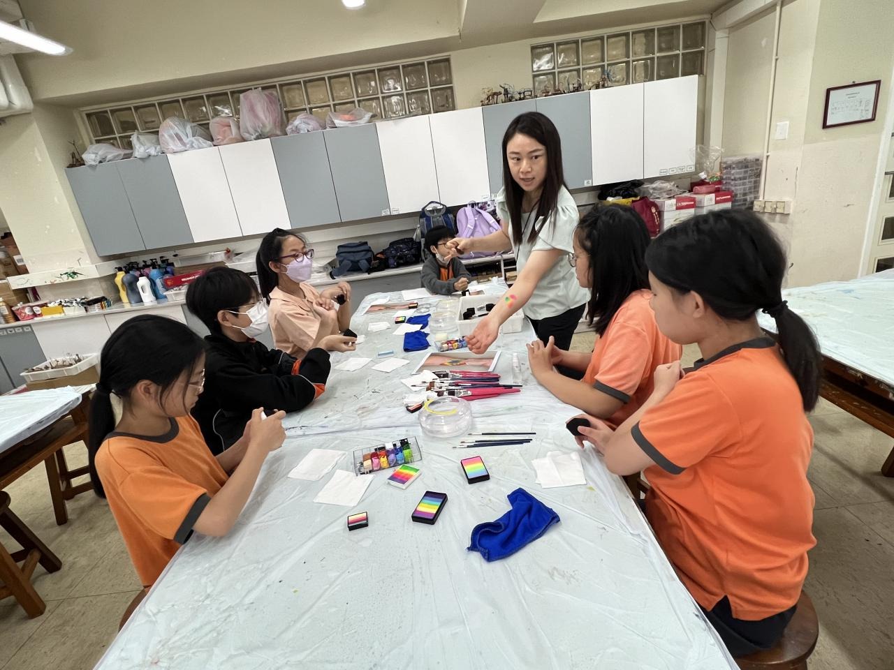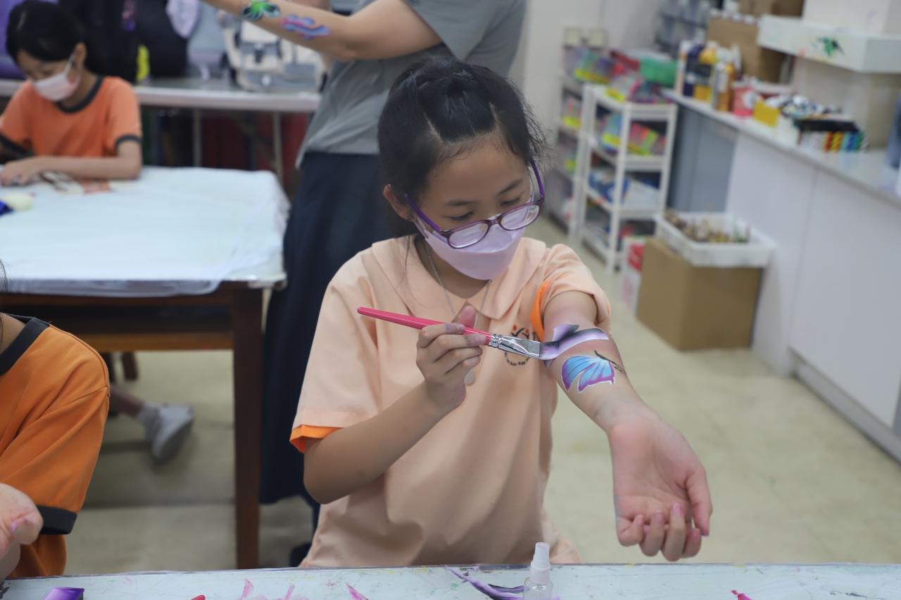 2024-05-20 本校專才班學生在5月20日及5月27日參加了「臉部彩繪工作坊」,導師介紹了彩繪的工具和講解彩繪的技巧,之後同學們在自己的手上進行彩繪練習,畫了一朵朵美麗的花朵、蜘蛛及鯊魚等等的花紋,他們生對這活動深感興趣,十分投入課堂活動,體驗了彩繪的樂趣。 學校活動
