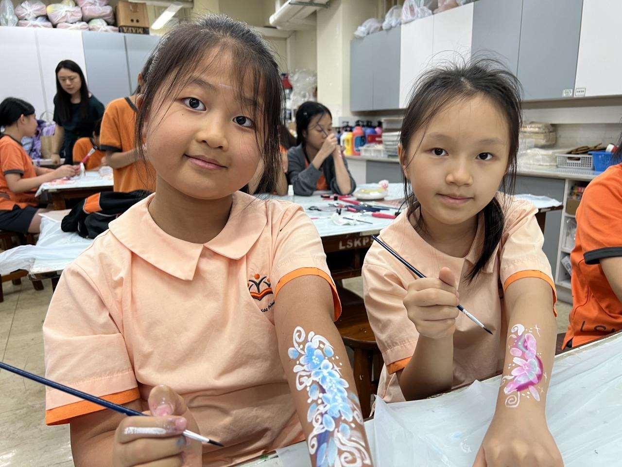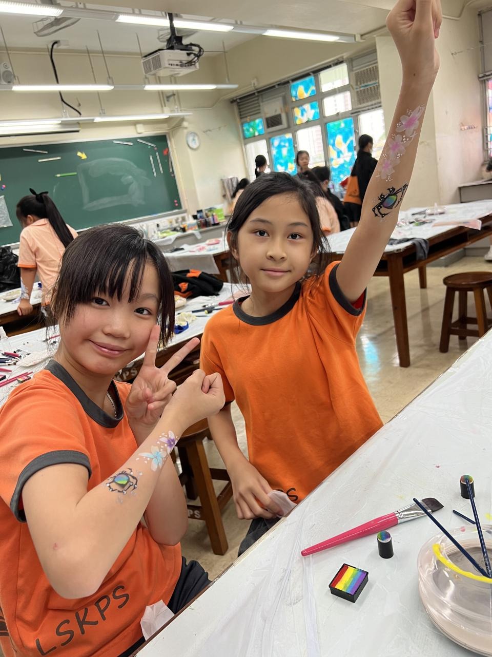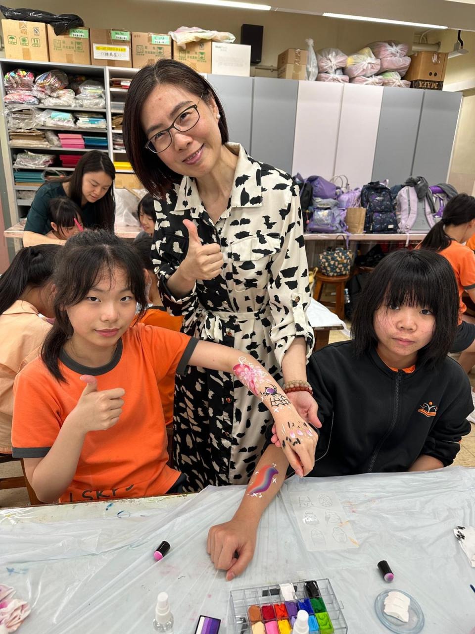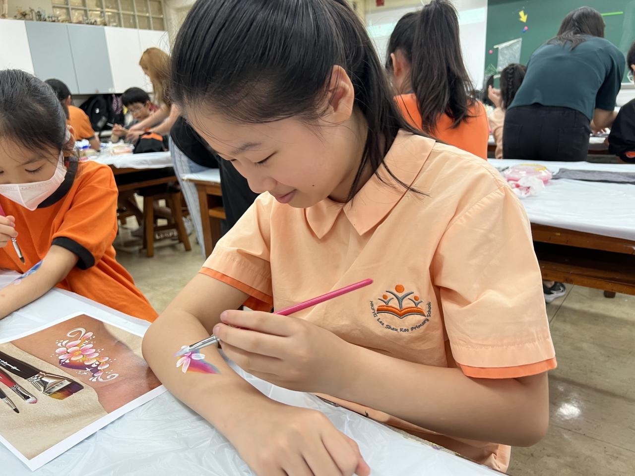 2024-05-20 本校專才班學生在5月20日及5月27日參加了「臉部彩繪工作坊」,導師介紹了彩繪的工具和講解彩繪的技巧,之後同學們在自己的手上進行彩繪練習,畫了一朵朵美麗的花朵、蜘蛛及鯊魚等等的花紋,他們生對這活動深感興趣,十分投入課堂活動,體驗了彩繪的樂趣。 學校活動