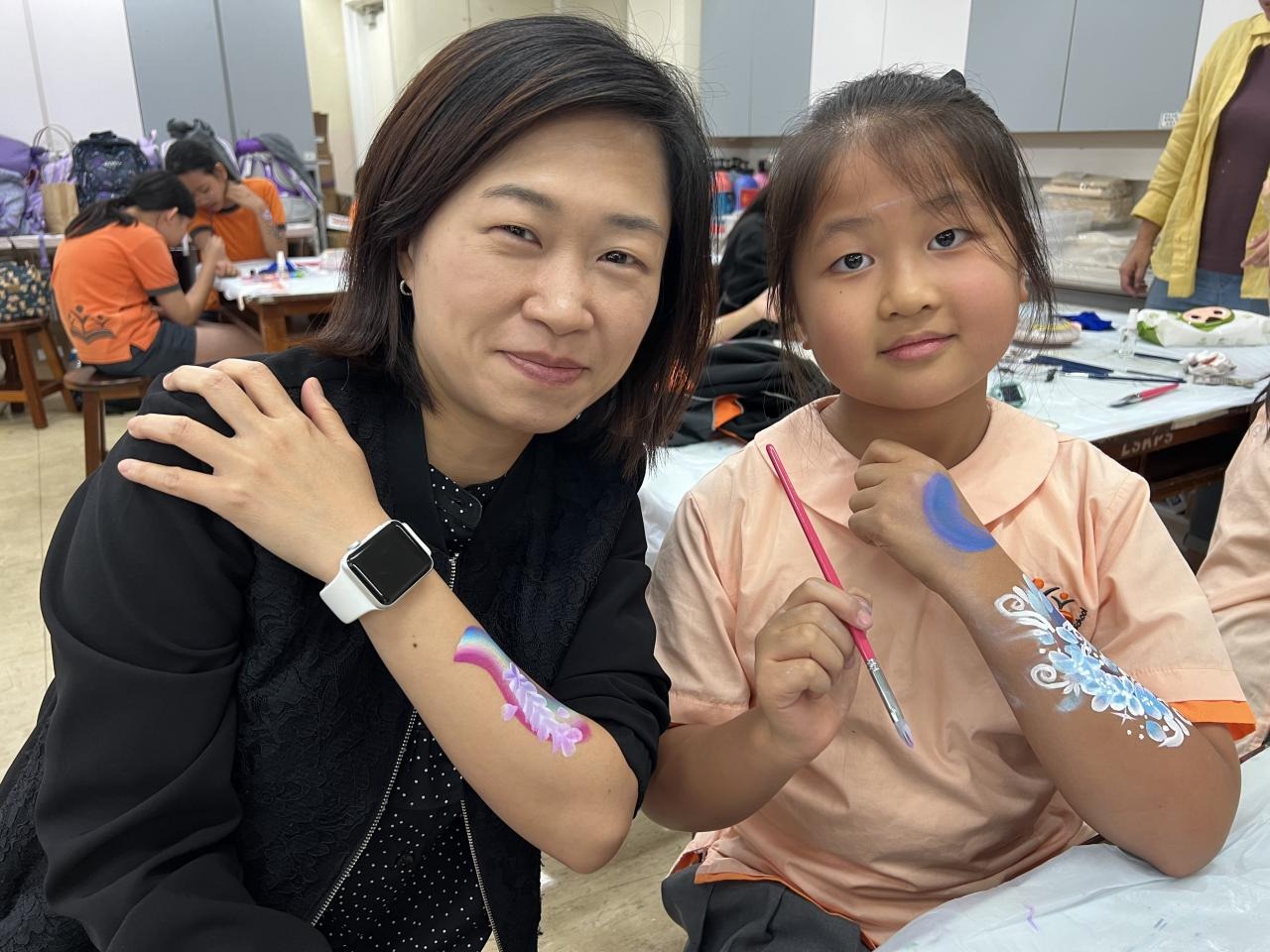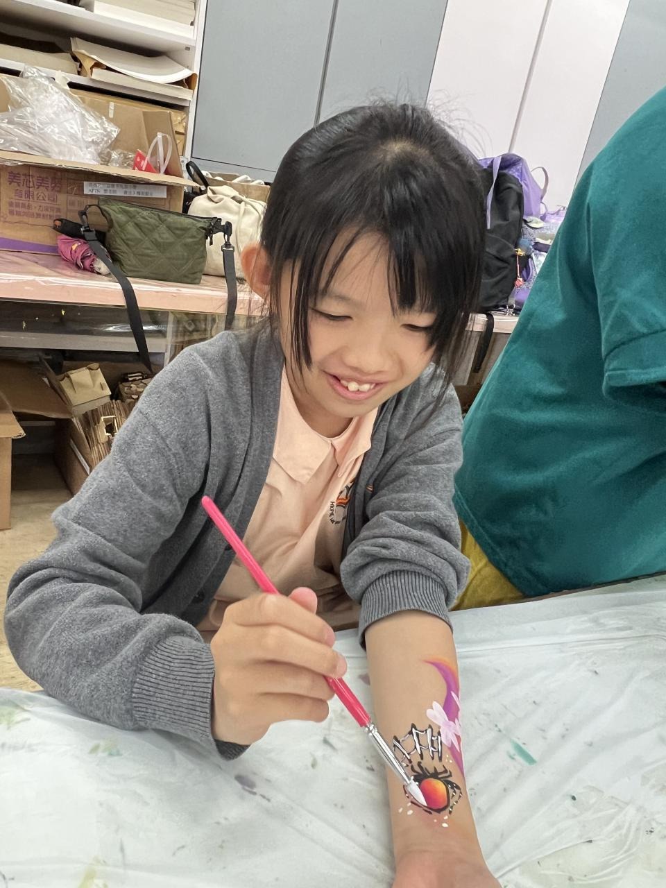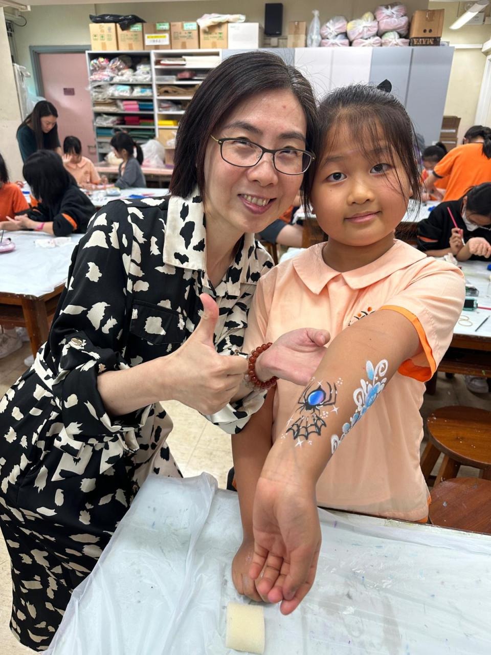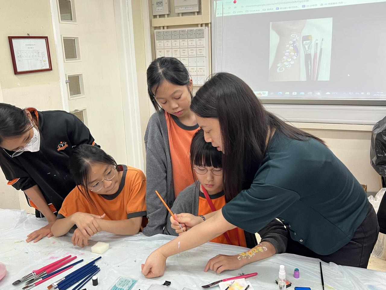 2024-05-20 本校專才班學生在5月20日及5月27日參加了「臉部彩繪工作坊」,導師介紹了彩繪的工具和講解彩繪的技巧,之後同學們在自己的手上進行彩繪練習,畫了一朵朵美麗的花朵、蜘蛛及鯊魚等等的花紋,他們生對這活動深感興趣,十分投入課堂活動,體驗了彩繪的樂趣。 學校活動