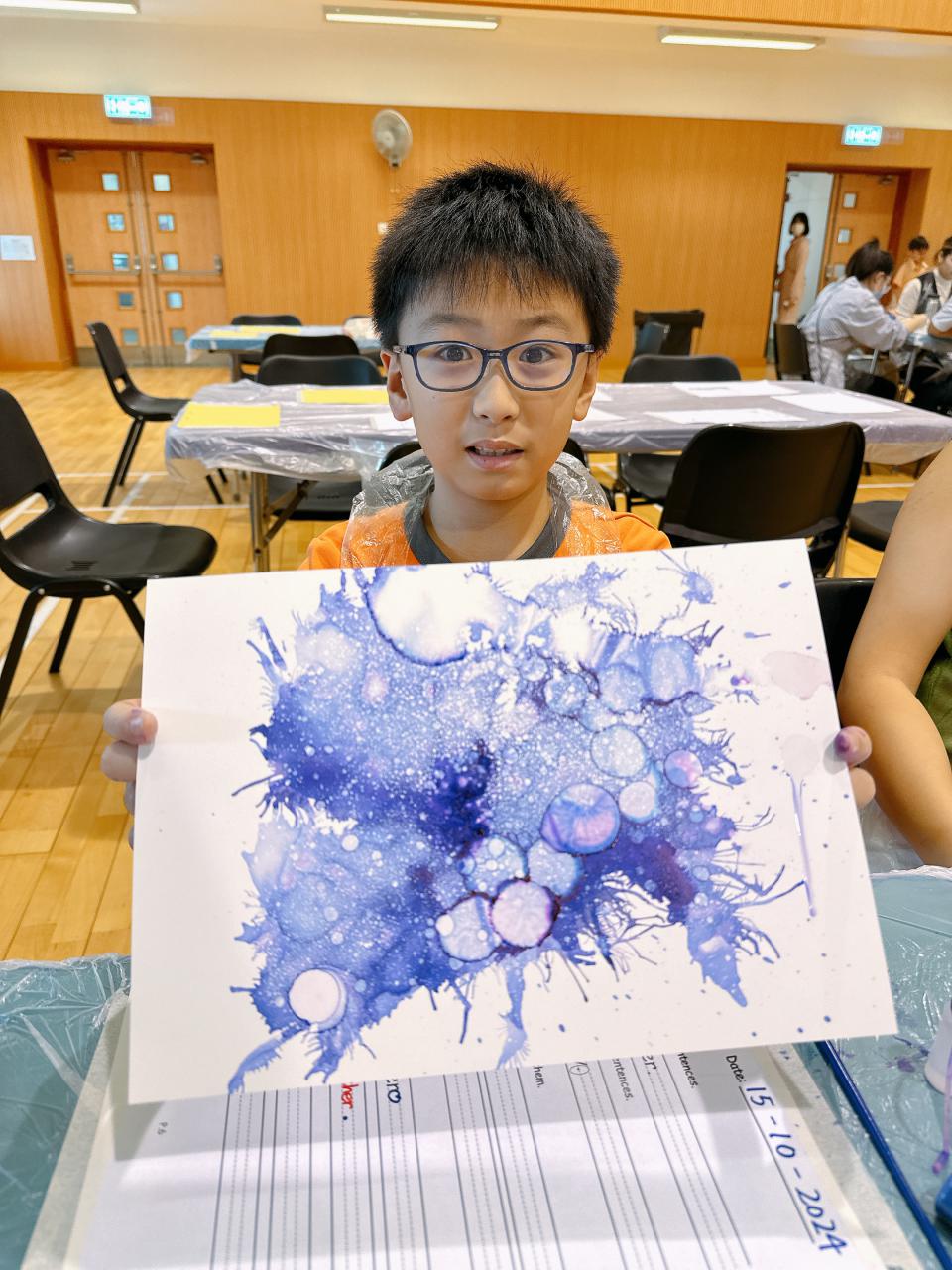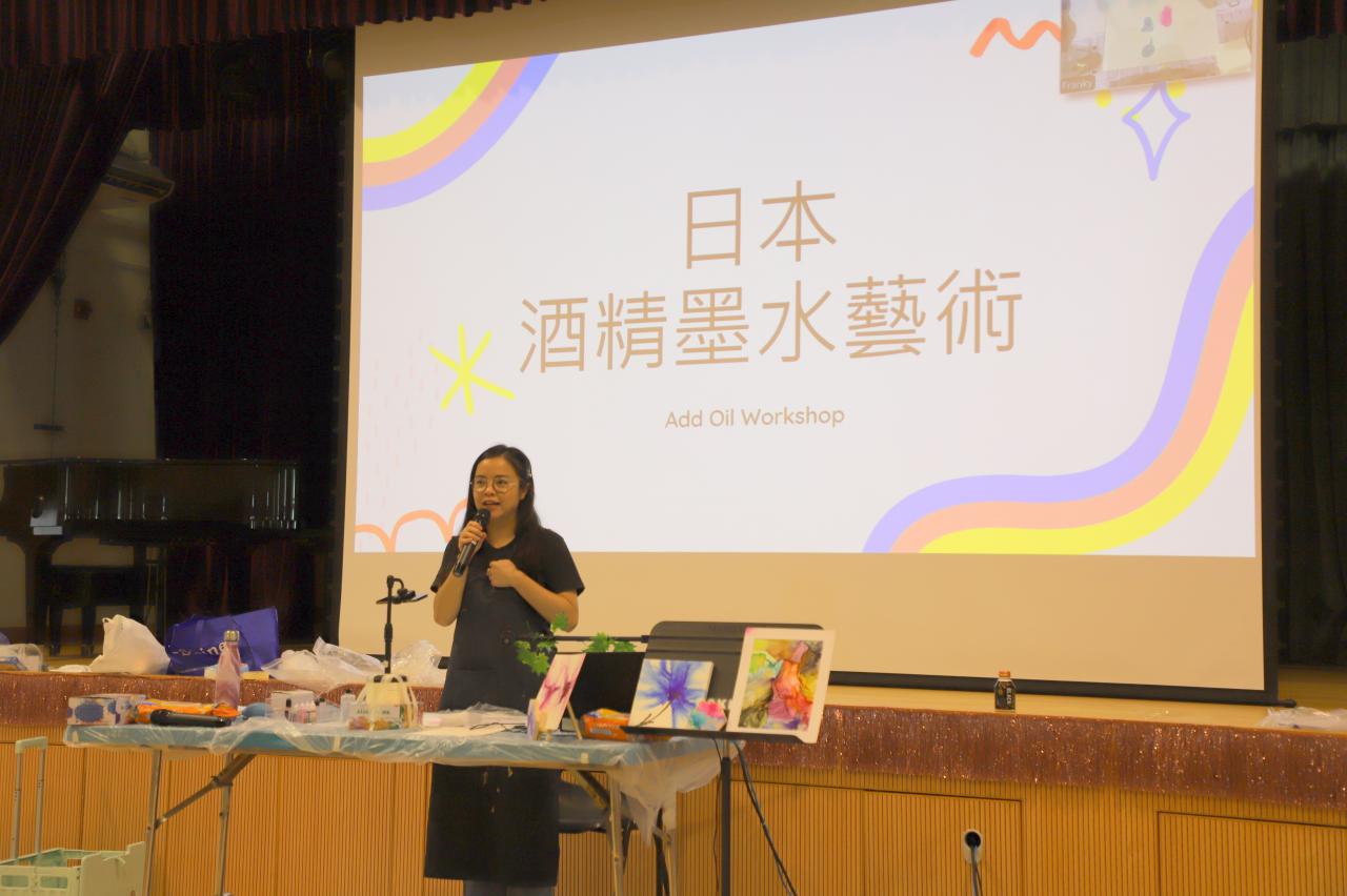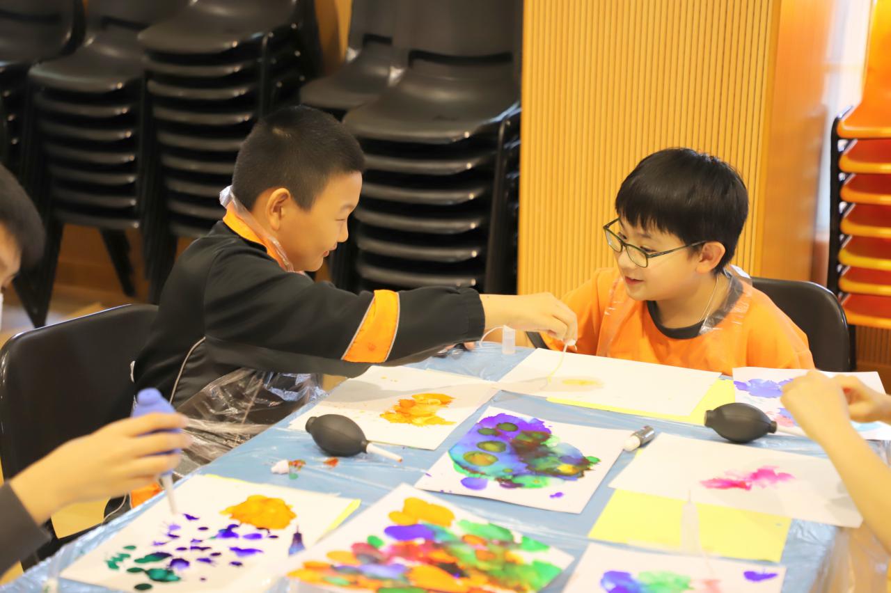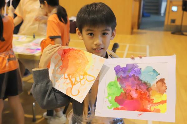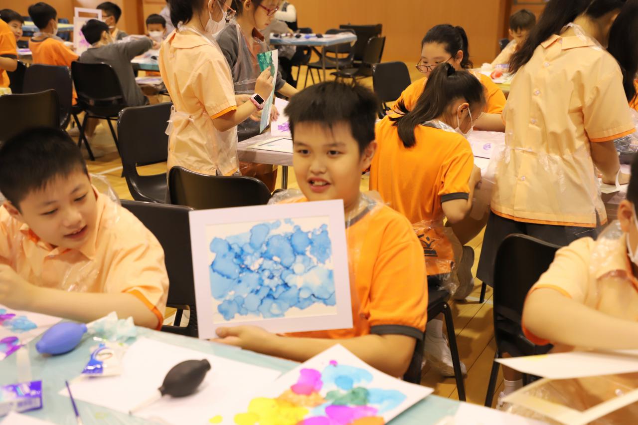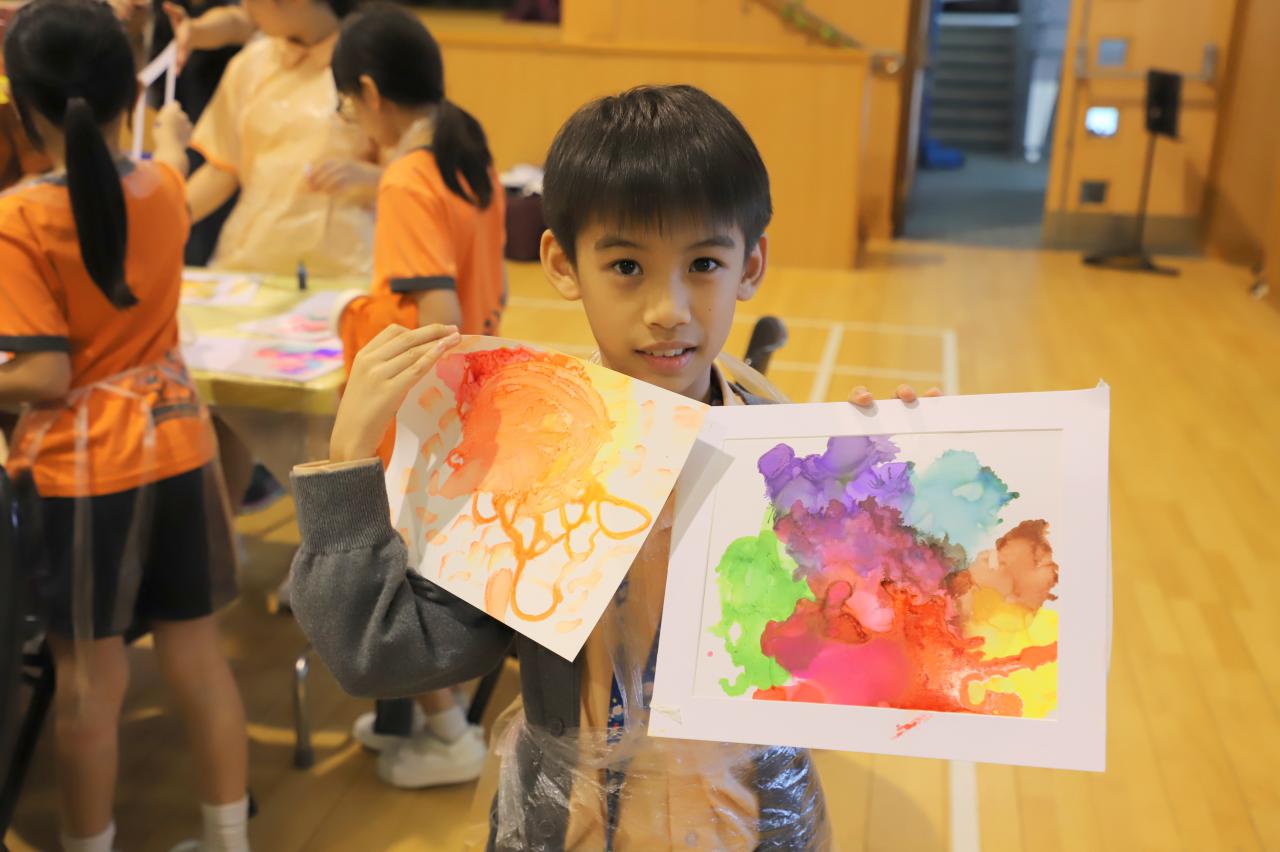2024-11-15 早前我們邀請了加戲工作室到校為五年級學生及一眾老師舉辦藝術治療工作坊——酒精墨水畫體驗。 先聽從導師詳細的講解,並謹記整個作畫過程中並無分對與錯。 不論是學生或老師在滴落、噴灑或混合墨水和酒精的過程中,都能夠暫且忘卻工作、學業或生活上的壓力和煩惱,並透過觀察墨水在畫紙上的流動和相互作用,從中獲得一份平靜感和色彩上的視覺享受。 學校活動