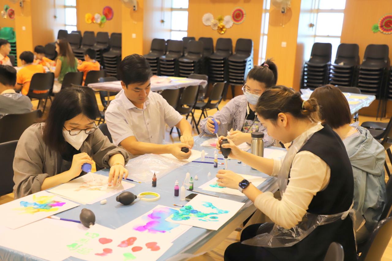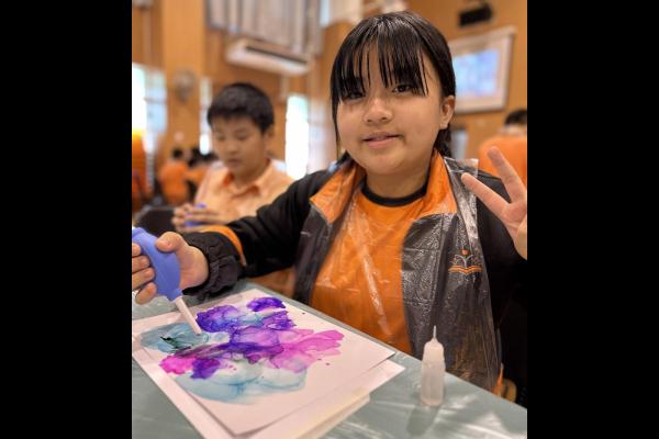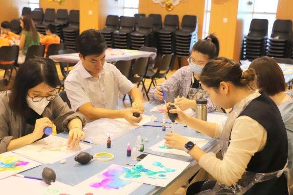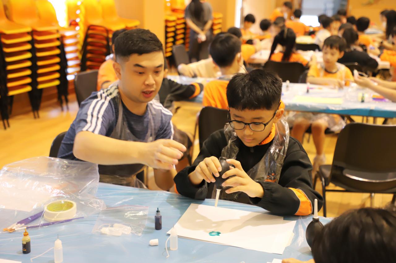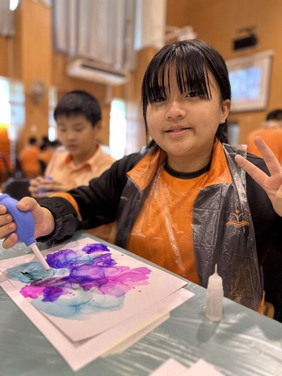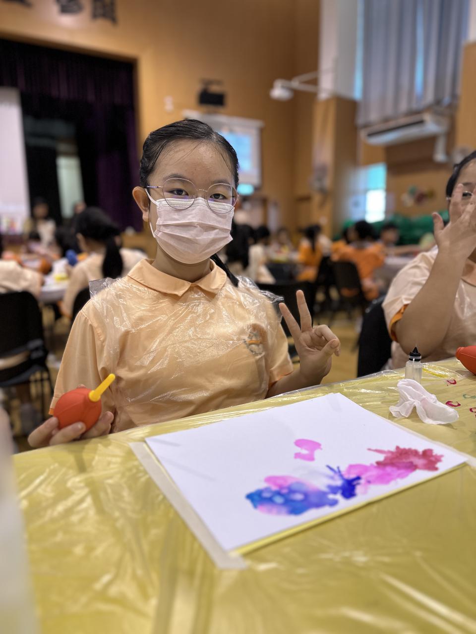 2024-11-15 早前我們邀請了加戲工作室到校為五年級學生及一眾老師舉辦藝術治療工作坊——酒精墨水畫體驗。 先聽從導師詳細的講解,並謹記整個作畫過程中並無分對與錯。 不論是學生或老師在滴落、噴灑或混合墨水和酒精的過程中,都能夠暫且忘卻工作、學業或生活上的壓力和煩惱,並透過觀察墨水在畫紙上的流動和相互作用,從中獲得一份平靜感和色彩上的視覺享受。 學校活動