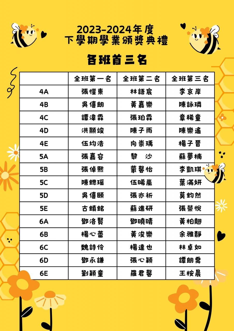 2024年7月11日,舉辦了本學年的結業禮暨頒獎典禮。本學年,學生除在學業方面,也參加了許許多多不同種類的活動,包括有海外的、全港性的、區際的;學術性的、運動類別的。在上述活動中,本校學生都獲得了理想的成績。在學業或其他活動方面得到優異成果的學生可以在禮堂,接受全校老師及學生的掌聲恭賀。除此,學生也會在課室,由班主任帶領,一起為下學期的各方面表現作出檢討及反思,並一起分享努力的成果。同學們在互相學習,互相激勵的氛圍下,共同許下在新學年裏,共同進步的願望。祝大家有一個充實而愉快的暑假。