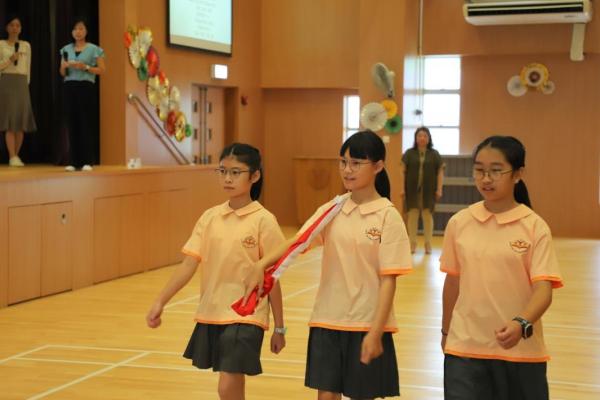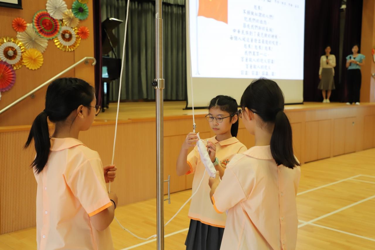 腎肝新學年開學日因9月1日掛起颱風而延至9月4日,而新學年的開學禮亦因此而順延至9月5日才舉行。在開學禮中,本校升旗隊隊員首次在典禮中登場。開學禮以升旗儀式打開序幕,三位持旗手英姿颯颯地步入禮堂,全場師生向其行注目禮。當隊員展開國旗,全場師生熟練地唱起國歌,國旗在國歌奏唱中冉冉升起。