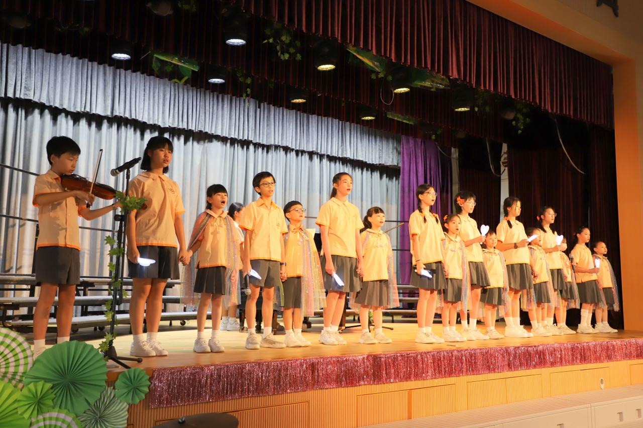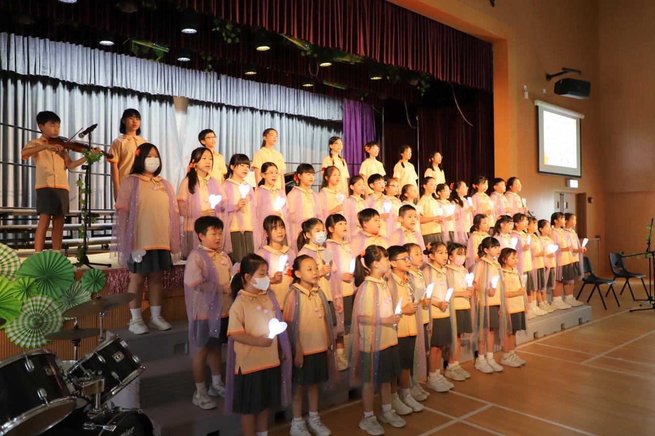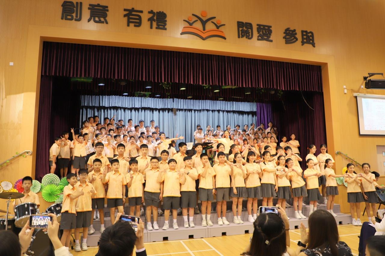 五班畢業生於精彩的表演中展現了他們的自信及活力;師長及嘉賓們接過畢業生親自創作的獨一無二的畢業帽及具本校創客科特色的紀念品後,都驚喜不已;典禮最後一項表演是全體畢業生大合唱,畢業生用美妙的歌聲、動人的歌詞表達對家人、對師長的感謝。最後,大會更邀請了主禮團各位嘉賓、各位老師與全體畢業生大合照留念,這張難得的合照為應屆畢業生留下了極具意義的回憶。
