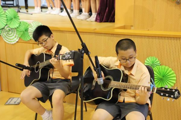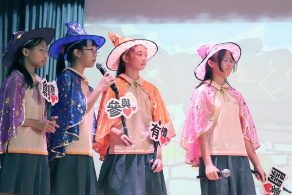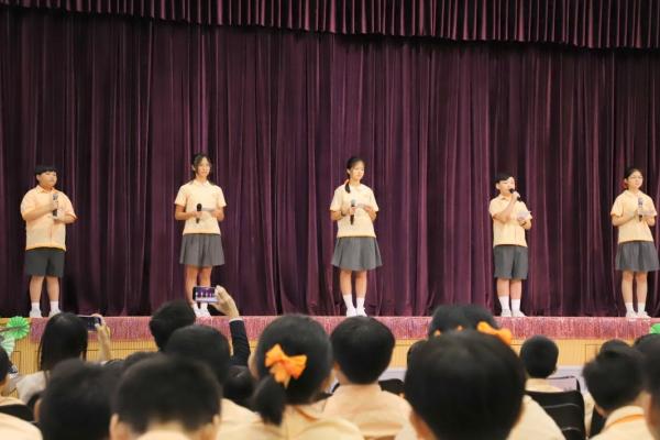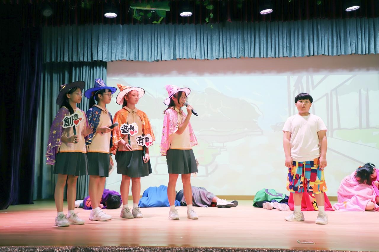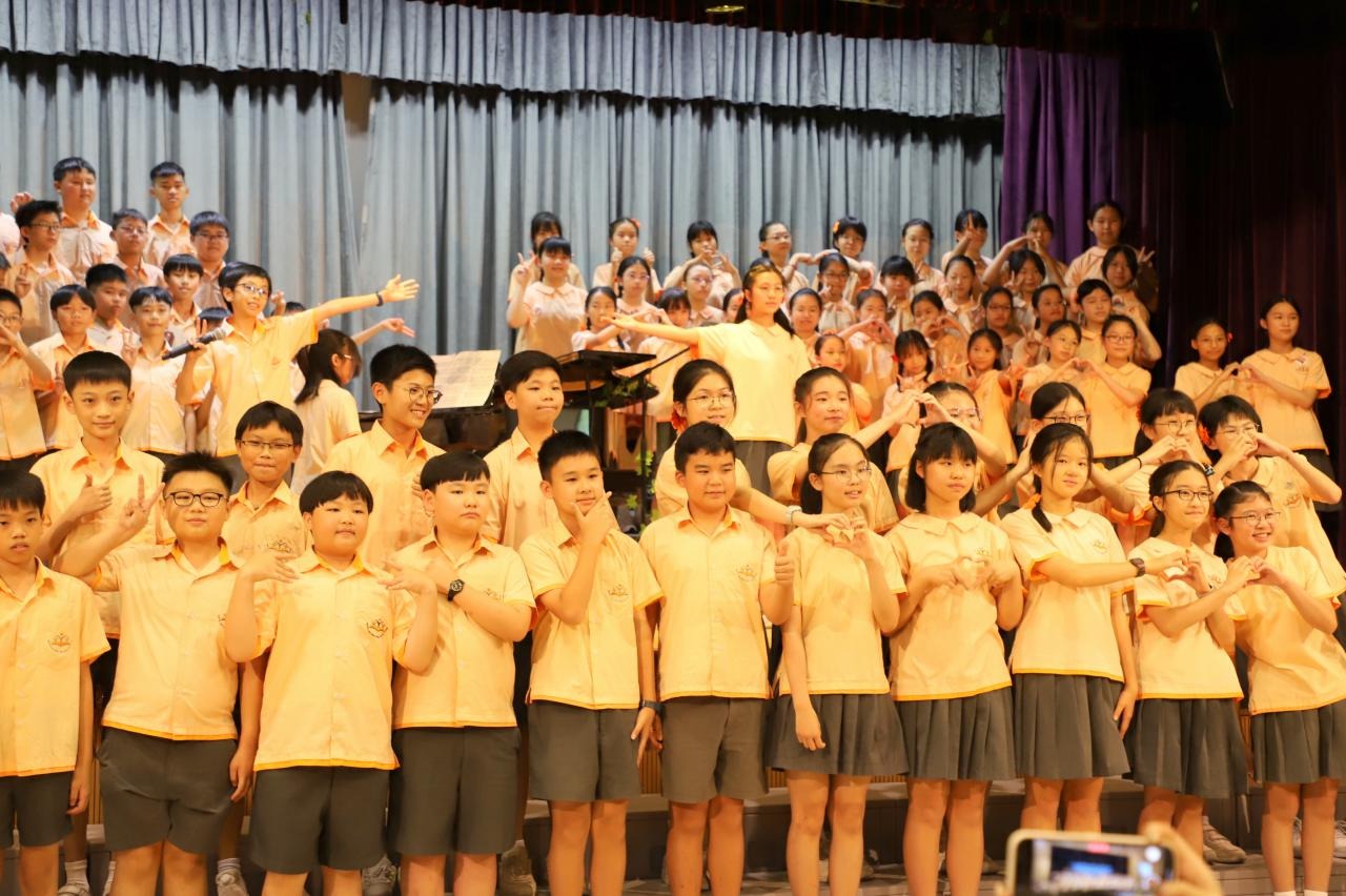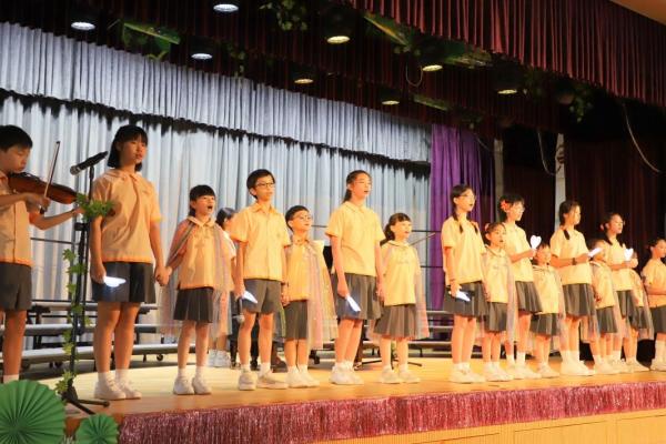五班畢業生於精彩的表演中展現了他們的自信及活力;師長及嘉賓們接過畢業生親自創作的獨一無二的畢業帽及具本校創客科特色的紀念品後,都驚喜不已;典禮最後一項表演是全體畢業生大合唱,畢業生用美妙的歌聲、動人的歌詞表達對家人、對師長的感謝。最後,大會更邀請了主禮團各位嘉賓、各位老師與全體畢業生大合照留念,這張難得的合照為應屆畢業生留下了極具意義的回憶。